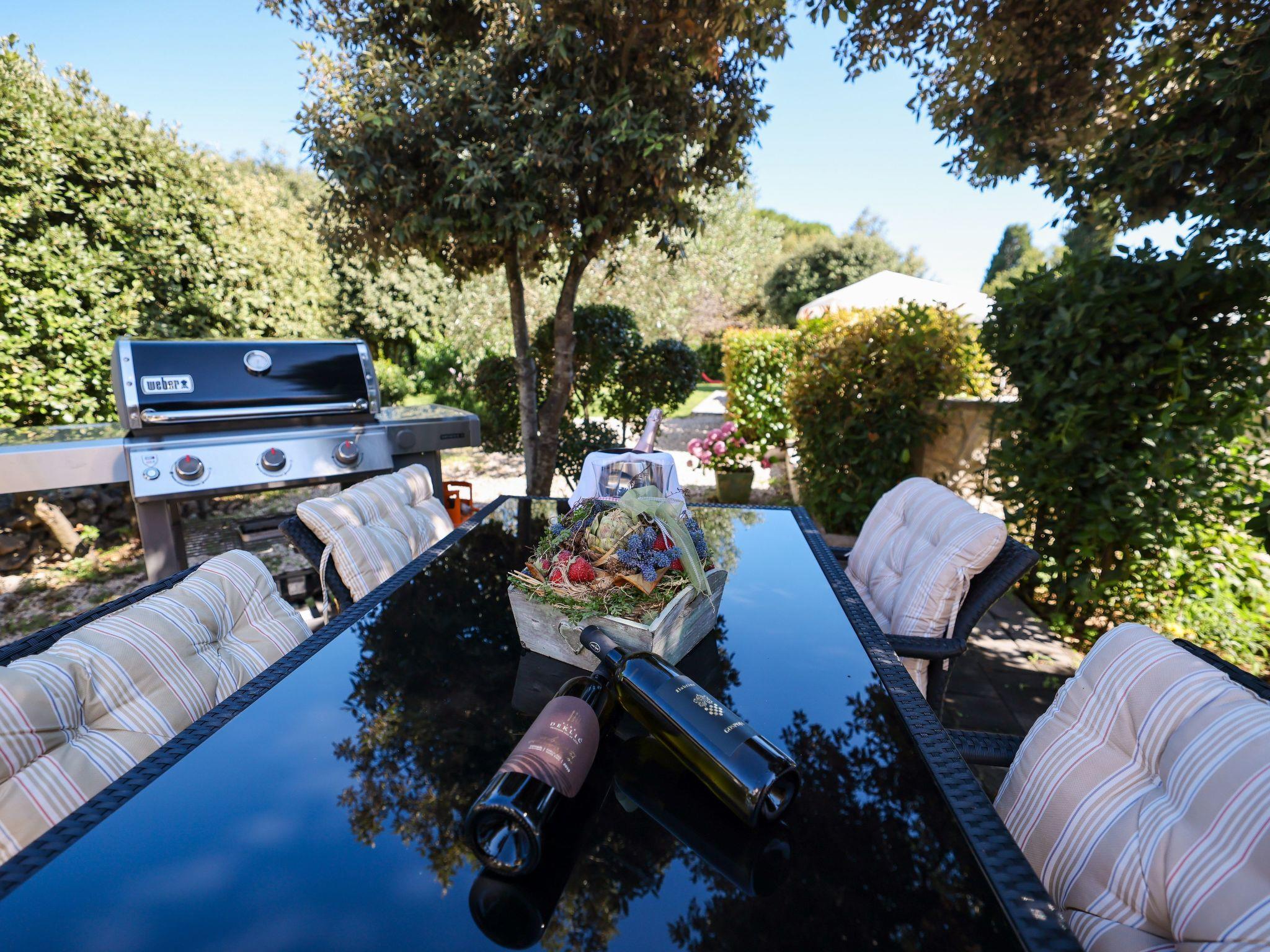 The house was built on a 2000 m² plot (surrounded by pool, olive, cherry and mandarine trees, figs, pomegranates ...), lovingly furnished and about 900 m from the sea, in the quiet upper part of the village. The apartment has 65 m², with two bedrooms, a bathroom, and a living room. The apartment is comfortable, air-conditioned and completely equipped (wifi, satellite TV, washing machine and a dishwasher). There is large sunny terrace, sunny pool, private entrance with a driveway, parking is ensured in front of the house.