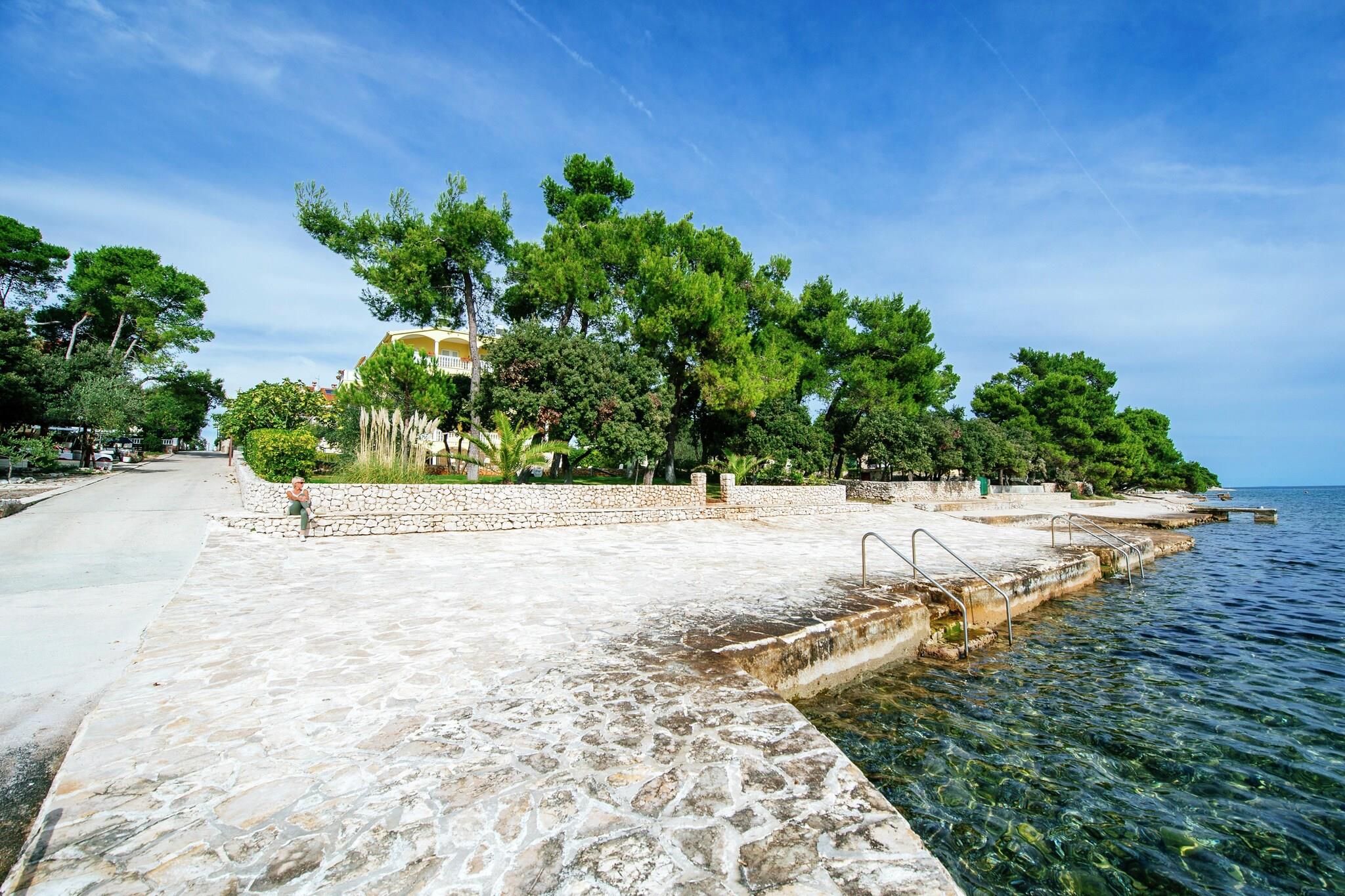 Kystkomfort og førsteklasses beliggenhed Denne lejlighed til seks gæster tilbyder et afslappende tilflugtssted kun 100 meter fra havet i Petrcane. Med restauranter og almindelige forsyninger inden for 300 meter kan gæsterne nyde både bekvemmelighed og ro. Hjemmet ligger også 15 km fra Zadar Lufthavn, hvilket sikrer problemfri rejseadgang. Moderne faciliteter og afslapning Indenfor har lejligheden en lys opholds- og spisestue, et fuldt udstyret køkken med moderne apparater og to hyggelige soveværelser, hver med en dobbeltseng, en enkeltseng og en balkon med smuk udsigt. Gæsterne kan slappe af i de airconditionerede områder, nyde udendørs spisning eller drage fordel af praktiske faciliteter som en vaskemaskine og privat parkering. Nærliggende attraktioner og spisesteder Udforsk Zadars Havorgel, et arkitektonisk vidunder, der forvandler bølger til musik, eller besøg Hilsen til Solen, en fascinerende soldrevet installation. Til spisning tilbyder Konoba Pjero frisk fisk og skaldyr, mens BeachHouse Bar Fratelli giver en afslappet atmosfære ved havet. Uanset om du søger eventyr eller afslapning, er dette kystnære tilflugtssted det perfekte tilflugtssted.