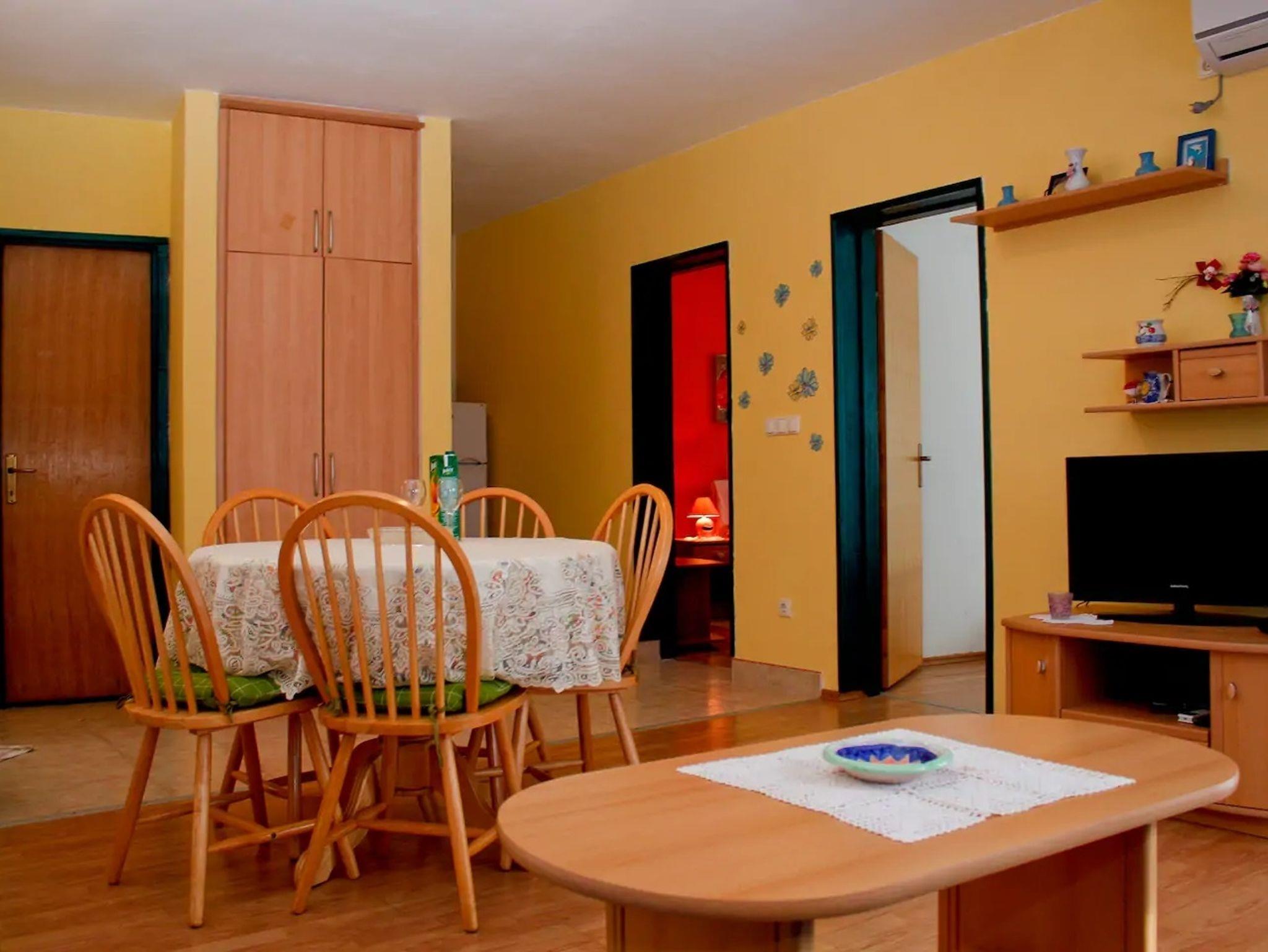 Ferienwohnung bietet Platz für 5 Gäste. Die Betten sind in Schlafzimmern, die es 2 gibt, und in Wohnzimmer, innerhalb einer Gesamtfläche von 45m2, angeordnet. Die Gäste haben einen eigenen Balkon zur Verfügung, auf der sie in warmen Sommernächten genießen können. Es ist erlaubt, Speisen auf dem Gemeinschafts-Grill vorzubereiten. IM PREIS INBEGRIFFEN: Kurtaxe, Endreinigung, Klimatisierung, Parkplatz, Internet, Kinderbett, Bügeleisen, Bügelbrett, Föhn. VERBINDLICHE ZUSÄTZLICHE KOSTEN: Aufzahlung für Kurzaufenthalte (prozentualer Zuschlag pro Nächtigungsanzahl: 30% - 1, 20% - 2, 10% - 3). Die Verfügbarkeit zusätzlicher Dienstleistungen in Ihrem reservierten Termin und die Preise derselben (falls nicht aufgeführt) müssen im Voraus überprüft werden. Zusätzliche Dienstleistungen die in der Zahlungsaufforderung nicht aufgeführt sind werden direkt beim Vermieter bezahlt, angenommen der Gast nutzt auch diese.