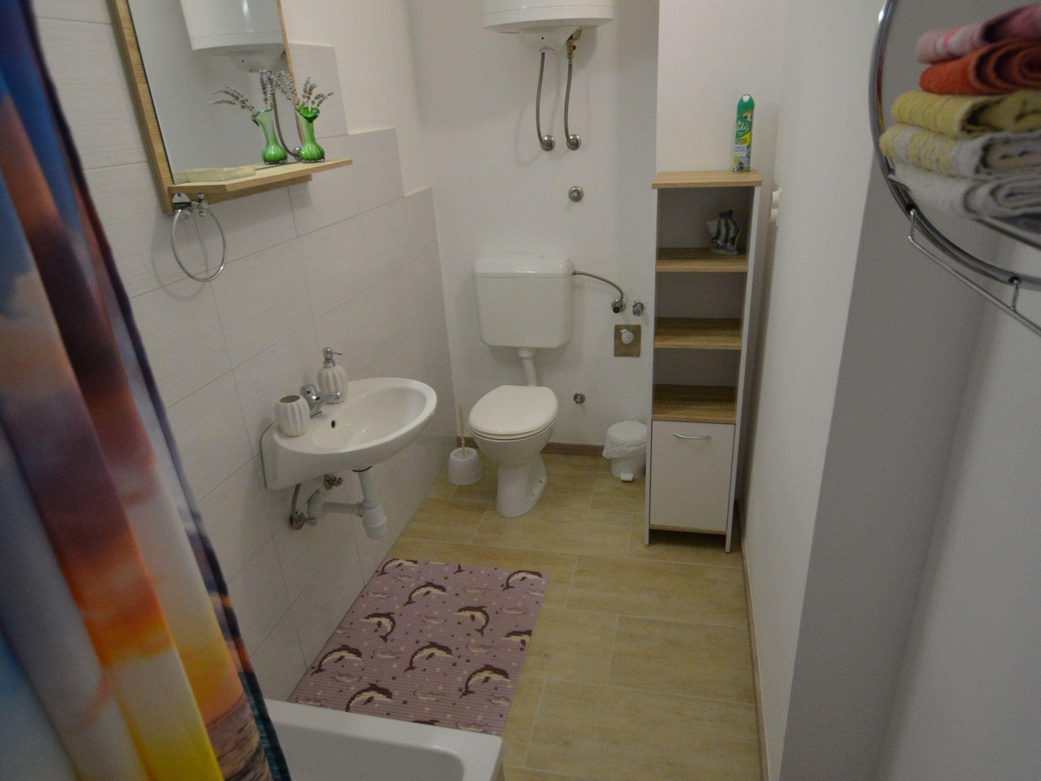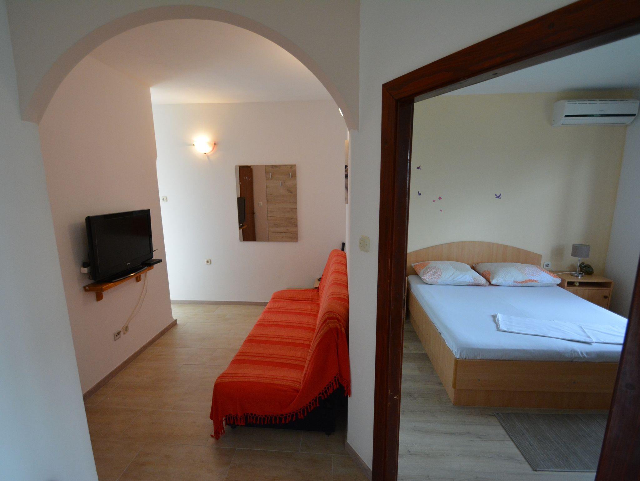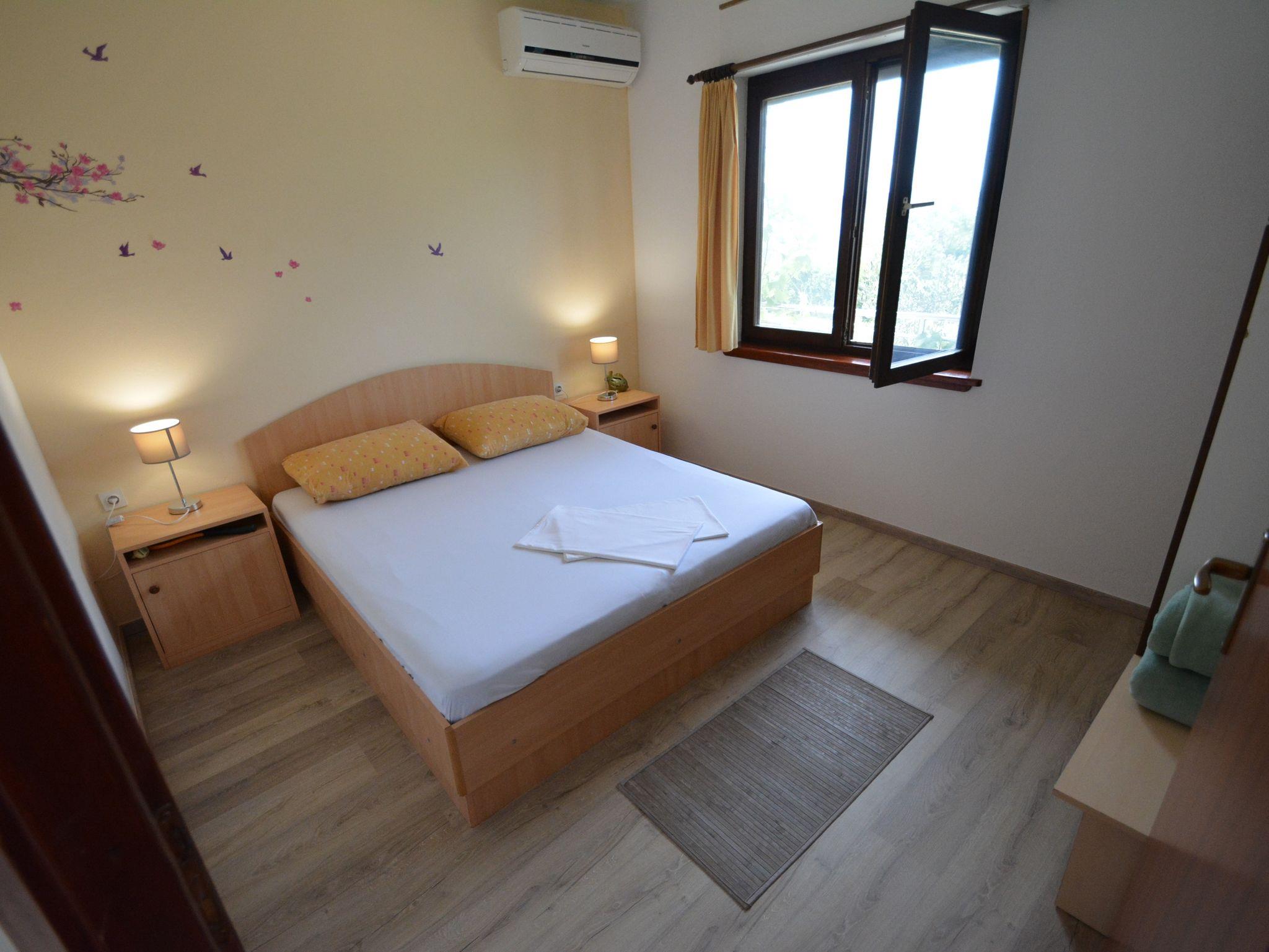 Ferienwohnung bietet Platz für 2 Gäste. Die Betten sind in Schlafzimmern, die es 1 gibt, innerhalb einer Gesamtfläche von 33m2, angeordnet. Die Gäste haben eine eigene Terrasse zur Verfügung, auf der sie in warmen Sommernächten genießen können. Das Apartment bietet Meerblick. Es ist erlaubt, Speisen auf dem Gemeinschafts-Grill vorzubereiten. IM PREIS INBEGRIFFEN: Kurtaxe, Endreinigung, Parkplatz, Internet, Bootsanlegeplatz. VERBINDLICHE ZUSÄTZLICHE KOSTEN: Aufzahlung für Kurzaufenthalte (prozentualer Zuschlag pro Nächtigungsanzahl: 30% - 1, 20% - 2, 10% - 3). UNVERBINDLICHE ZUSÄTZLICHE KOSTEN: Klimatisierung (5,00 € pro Nacht), Wäschewaschen (10,00 € Waschen), Fahrrad (10,00 € täglich (pro Stück)). Die Verfügbarkeit zusätzlicher Dienstleistungen in Ihrem reservierten Termin und die Preise derselben (falls nicht aufgeführt) müssen im Voraus überprüft werden. Zusätzliche Dienstleistungen die in der Zahlungsaufforderung nicht aufgeführt sind werden direkt beim Vermieter bezahlt, angenommen der Gast nutzt auch diese. Ermäßigung auf den Grundpreis: Gratistag 14=13 (bei einem Aufenthalt von 14 Tagen oder mehr erhalten Sie einen Gratistag für den Aufenthalt bis 31.12.26).