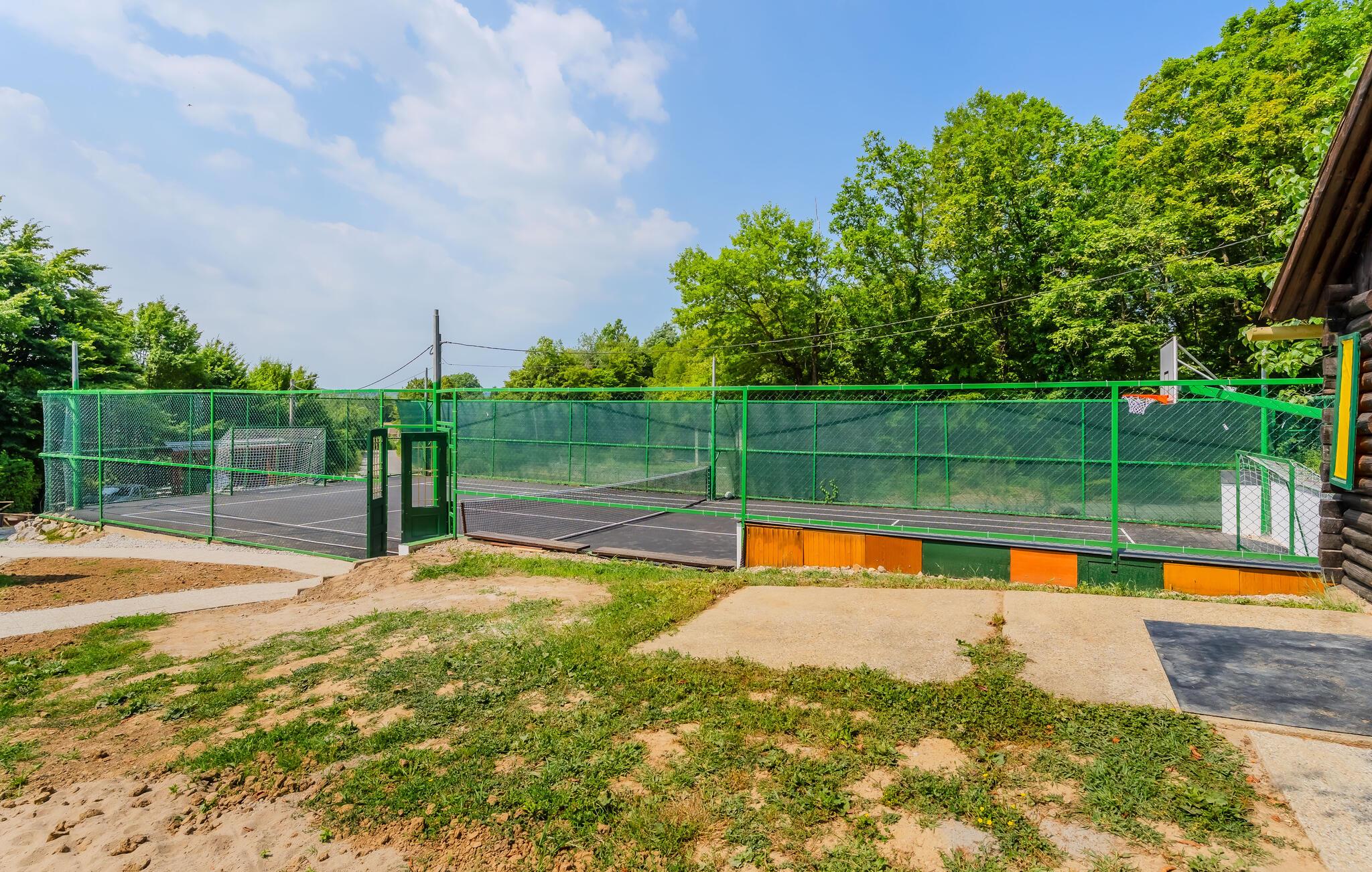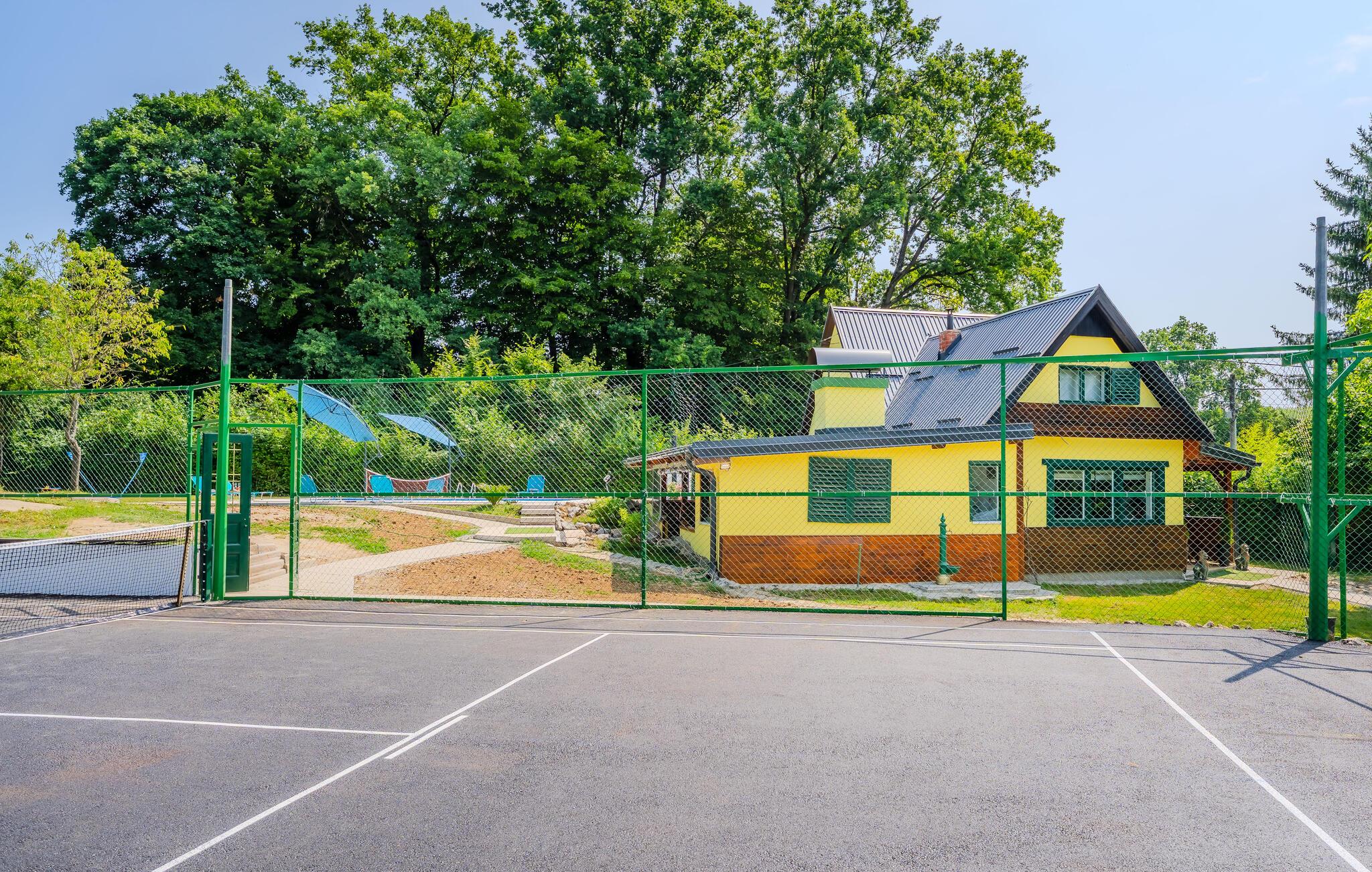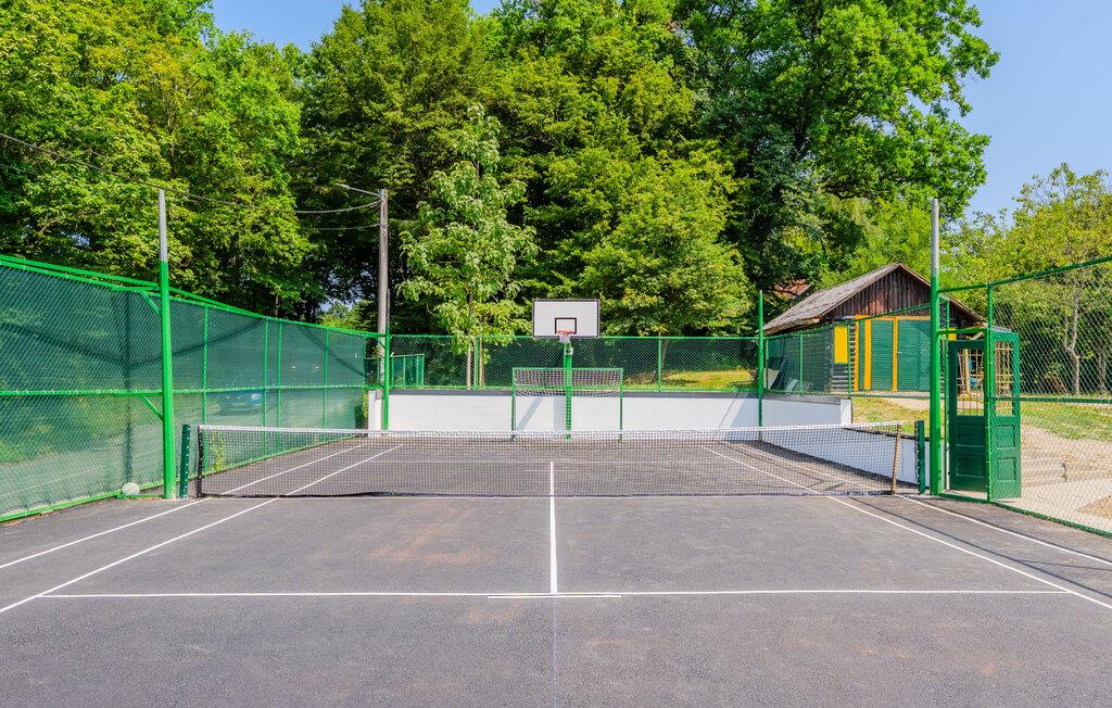 Den store, beskyttede grund lokker jeres børn til at nyde den friske luft med en række lege- og fritidsaktiviteter. På varme dage kan I forfriske jer i den smukke pool, solbade på liggestolen, spille basketball, tennis, badminton eller volleyball, og tænde op i grillen efter en aktiv dag.