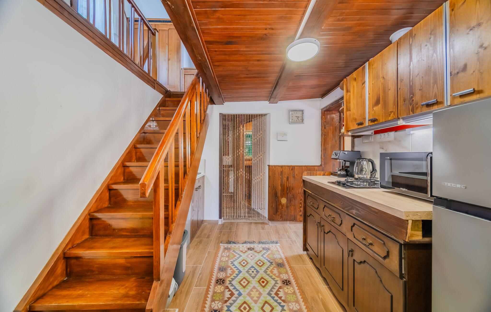 Dette smukke feriehus tilbyder charmerende faciliteter for hele familien, hvilket gør jeres ferie til en afslappende oplevelse langt fra hverdagen. Glæd jer til harmoniske måltider, hold jer i form på træningsudstyret, eller forkæl jer selv med nogle forkælende øjeblikke i saunaen, mens andre arrangerer en spilleaften eller vælger en film til en hyggelig aften foran fjernsynet.