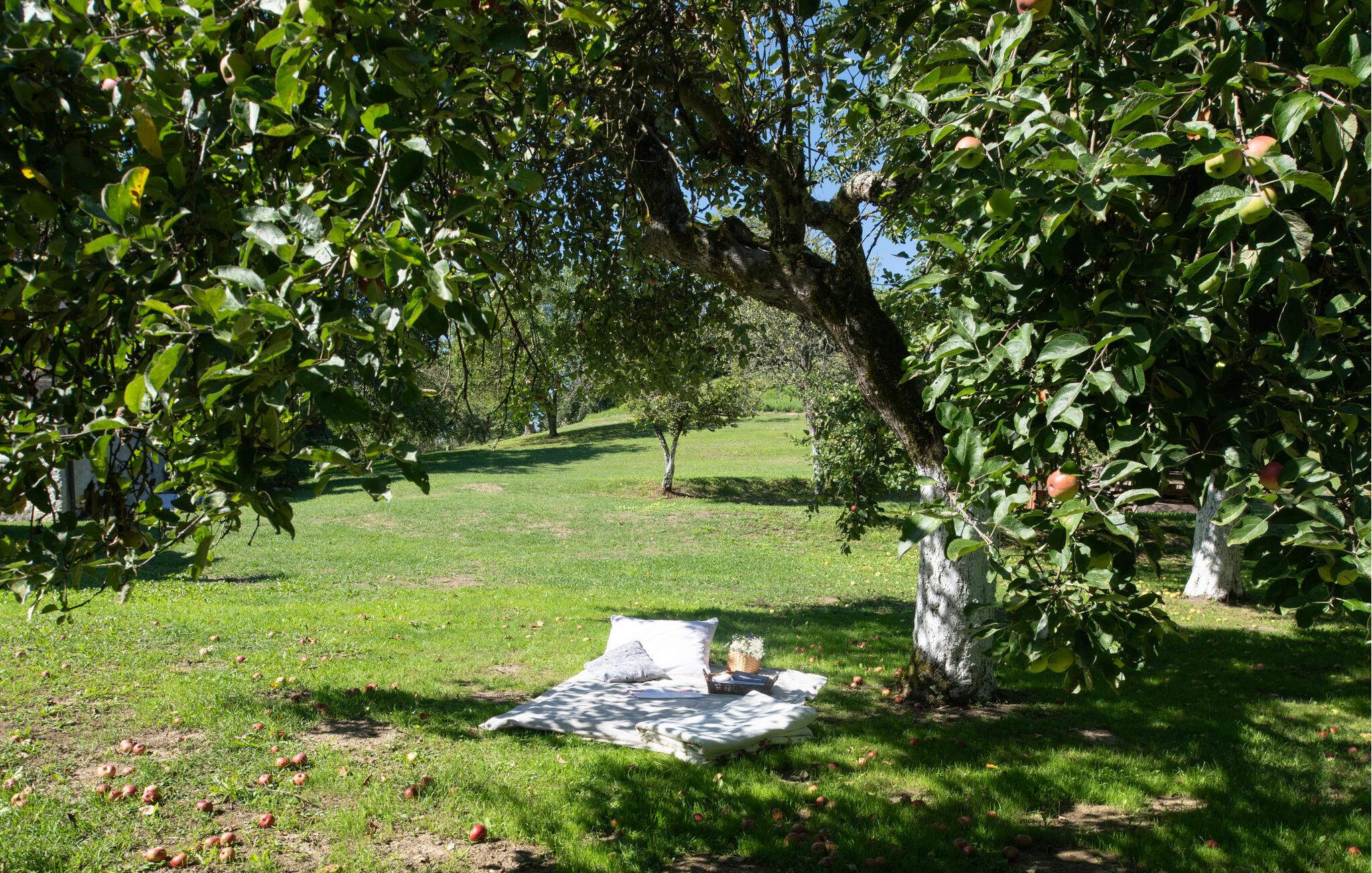 Fra den store, komfortabelt møblerede veranda har I en vidunderlig udsigt over den frodige have, som lokker jeres børn til at nyde den friske luft med sine dejlige legemuligheder. Server en lækker morgenmad her, slap af i skyggen af æbletræet, spil badminton med bare fødder, og snak over et glas vin indtil aftenen.