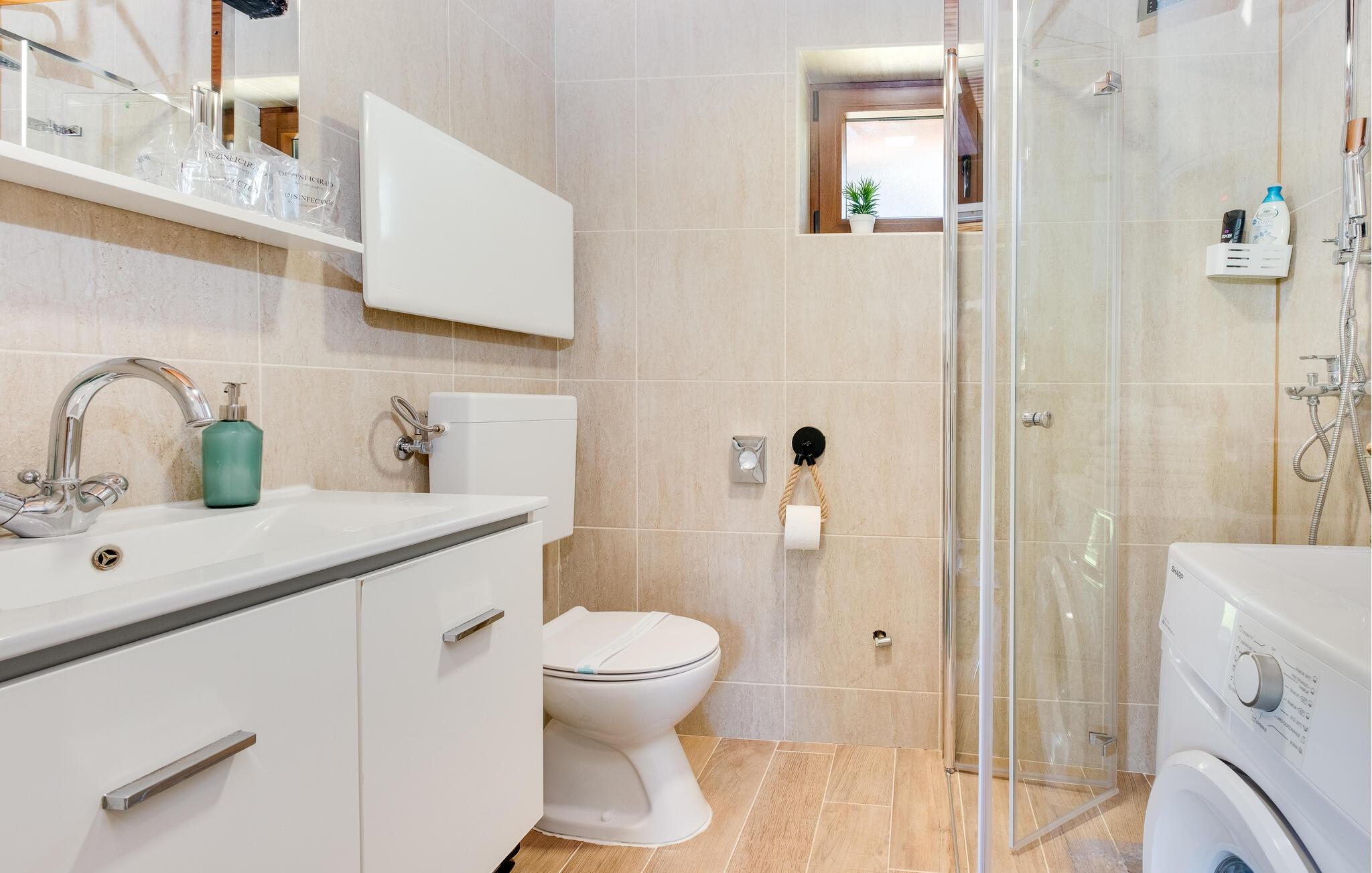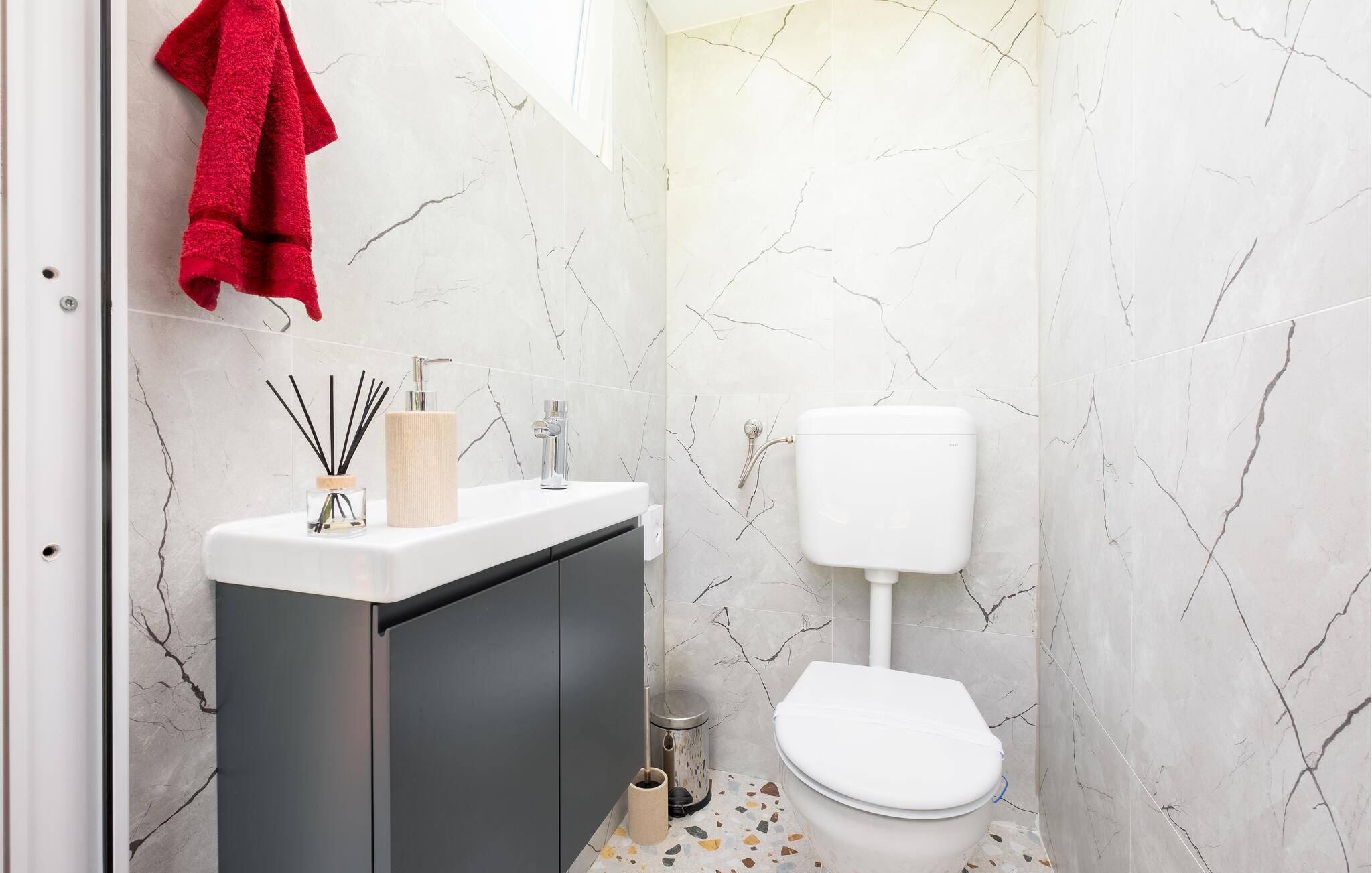Badeværelse (nr. 1) - WC. Varmt og koldt vand. Bruser