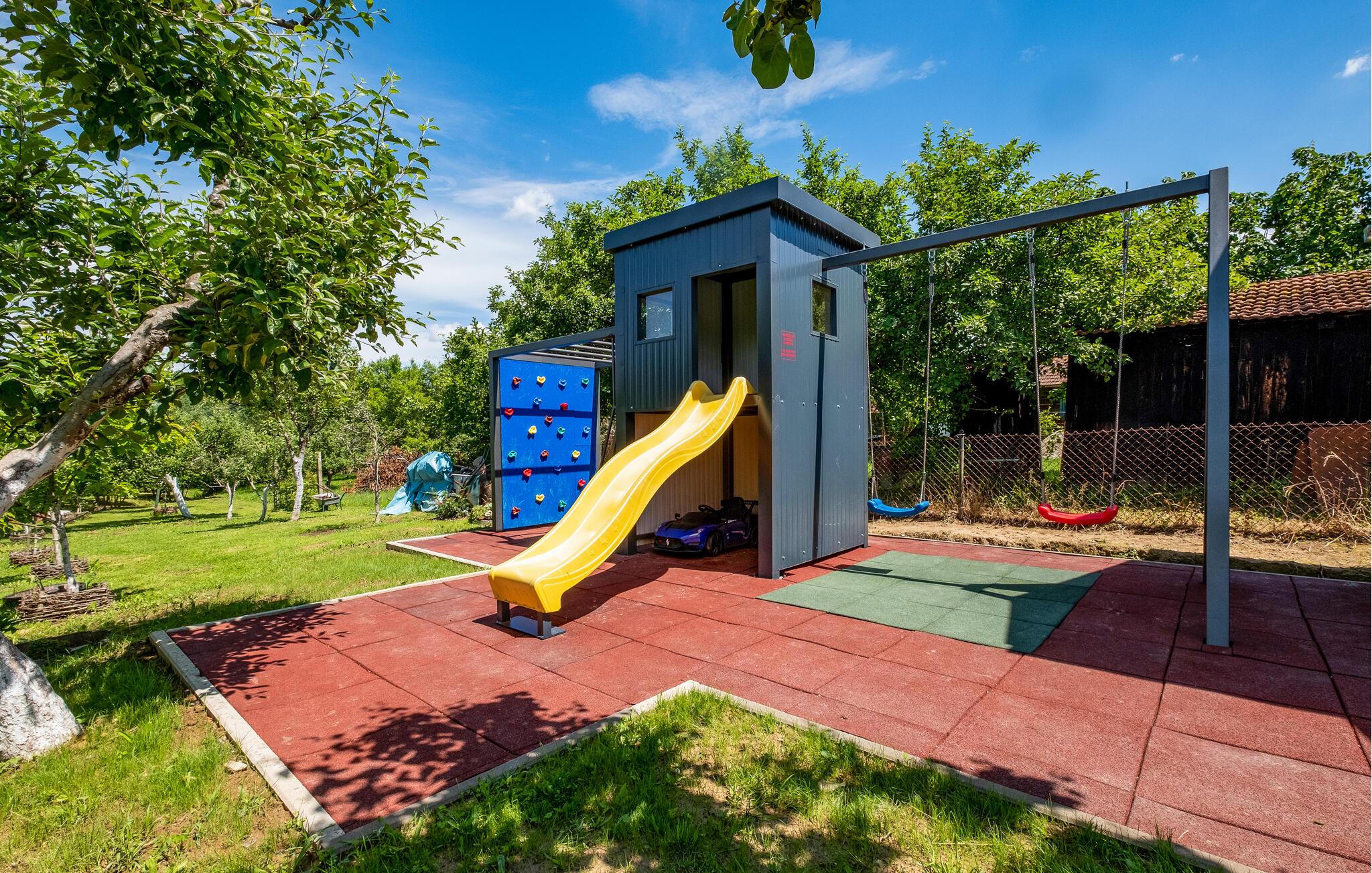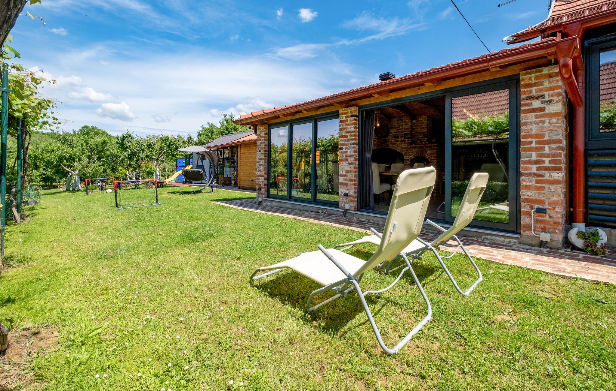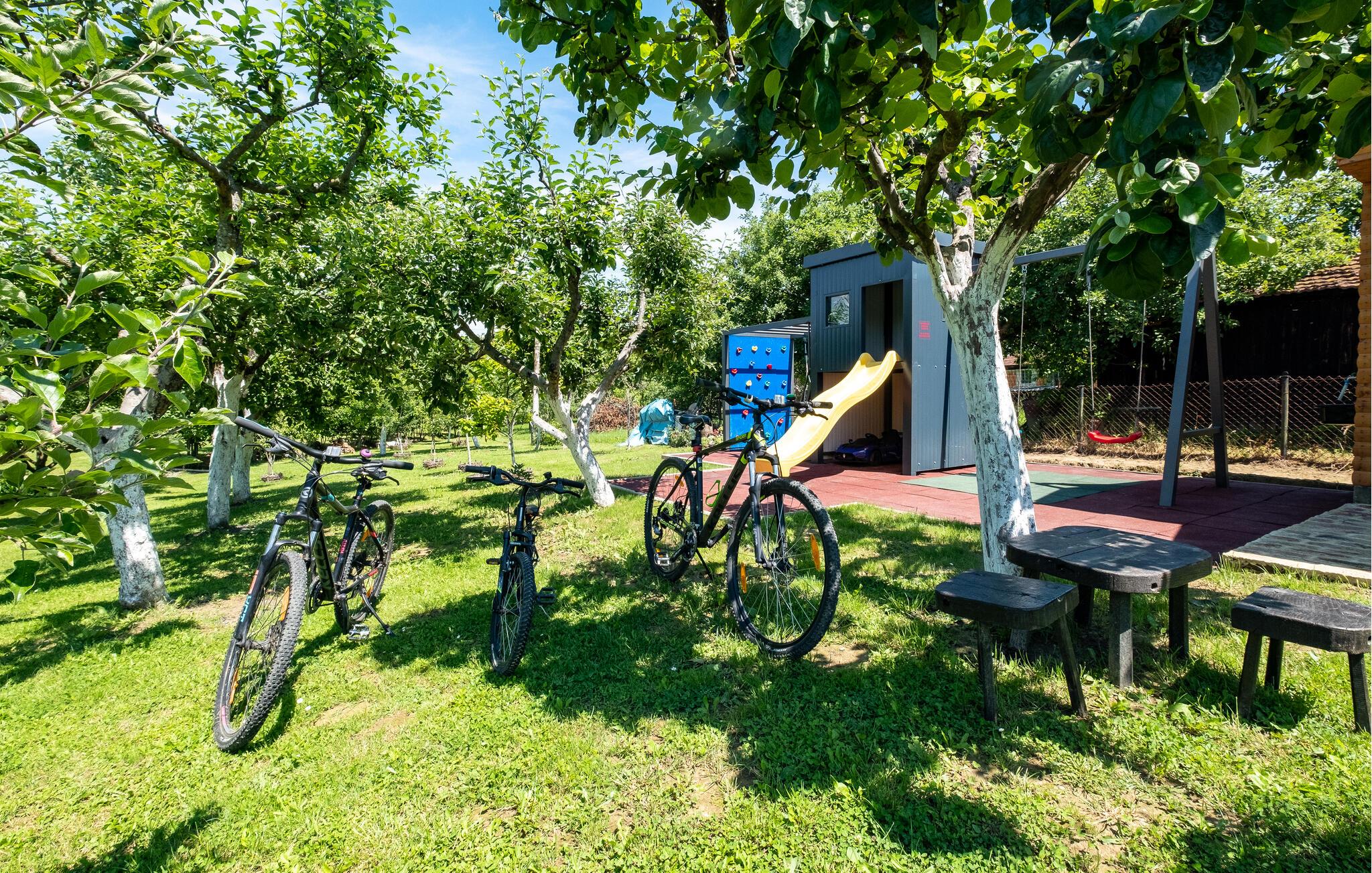 Fantastiske legemuligheder og en idyllisk have med stor græsplæne vil lokke børnene ud for at nyde den friske luft, mens I slapper af på en liggestol. Brug ejendommens cykler til at udforske området.