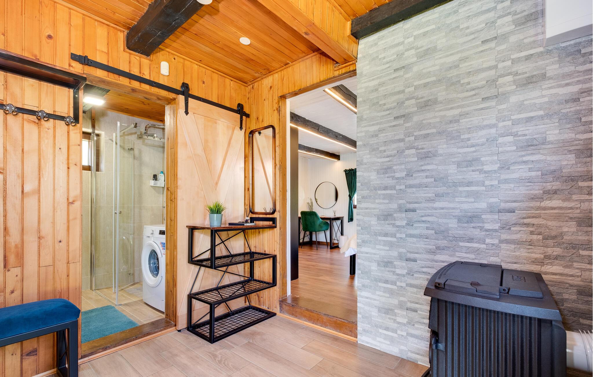 Dette rummelige feriehus tilbyder masser af træ, smagfulde møbler og rigelig plads til at nyde de dejlige faciliteter sammen. Oplev afslappende øjeblikke i saunaen eller spabadet, organiser sociale spilleaftener eller stream en spændende film.