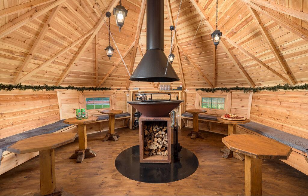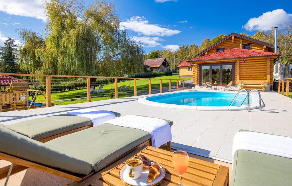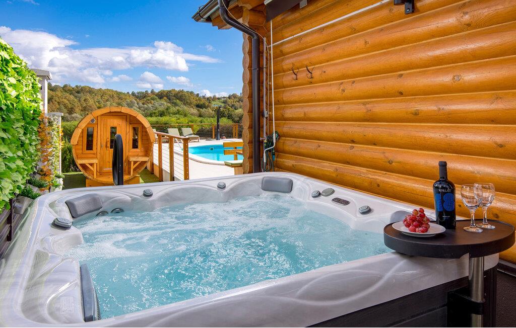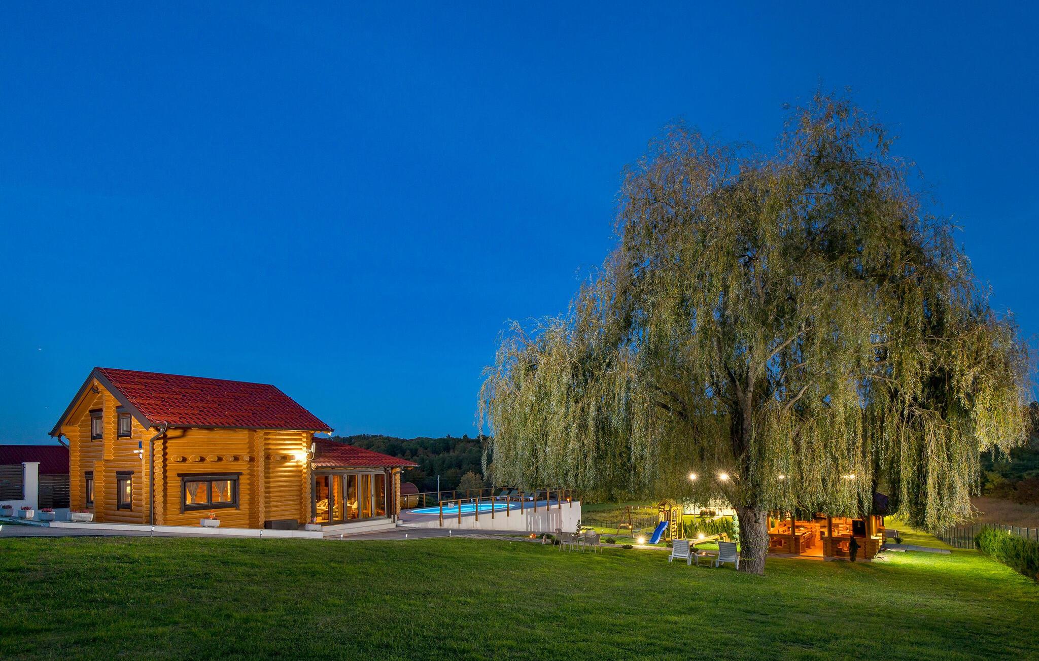 Velkommen til dette attraktive træhus, som har en idyllisk beliggenhed i Zagrebs opland. Boligens indretning emmer af charme og rustikke detaljer blandet med moderne indslag, hvilket gør jeres ophold ekstra hyggeligt. Efter dagens aktiviteter i naturen kan I slappe af i saunaen og nyde den smukke udsigt gennem gulv til loft-vinduerne i siddeområdet.