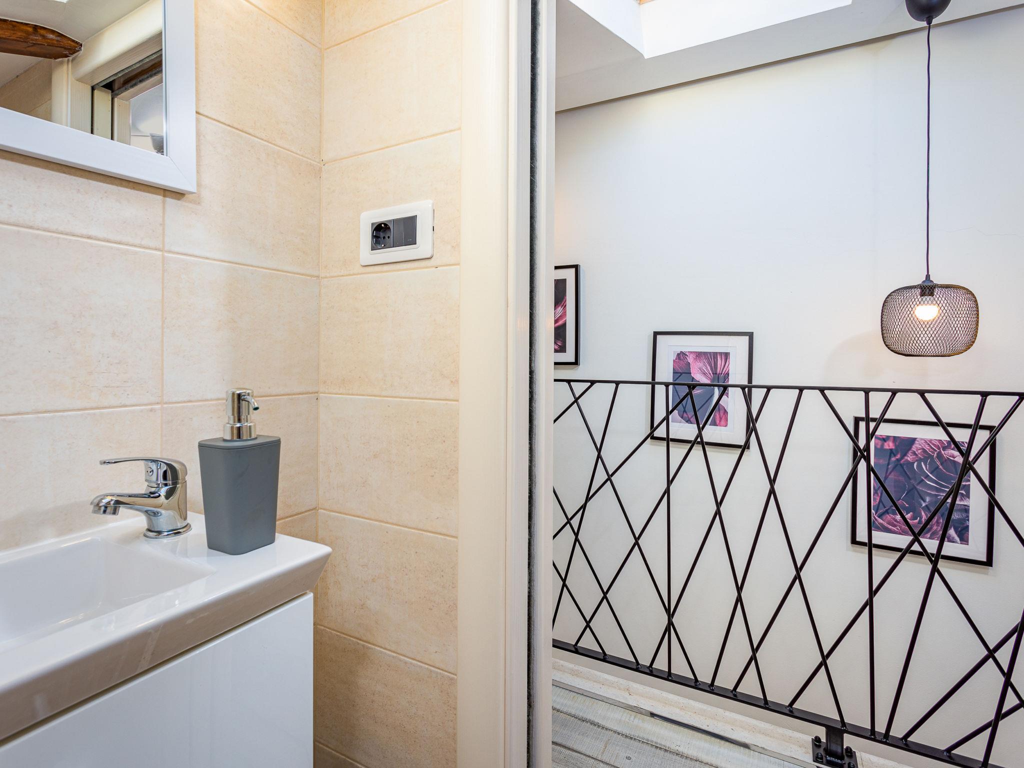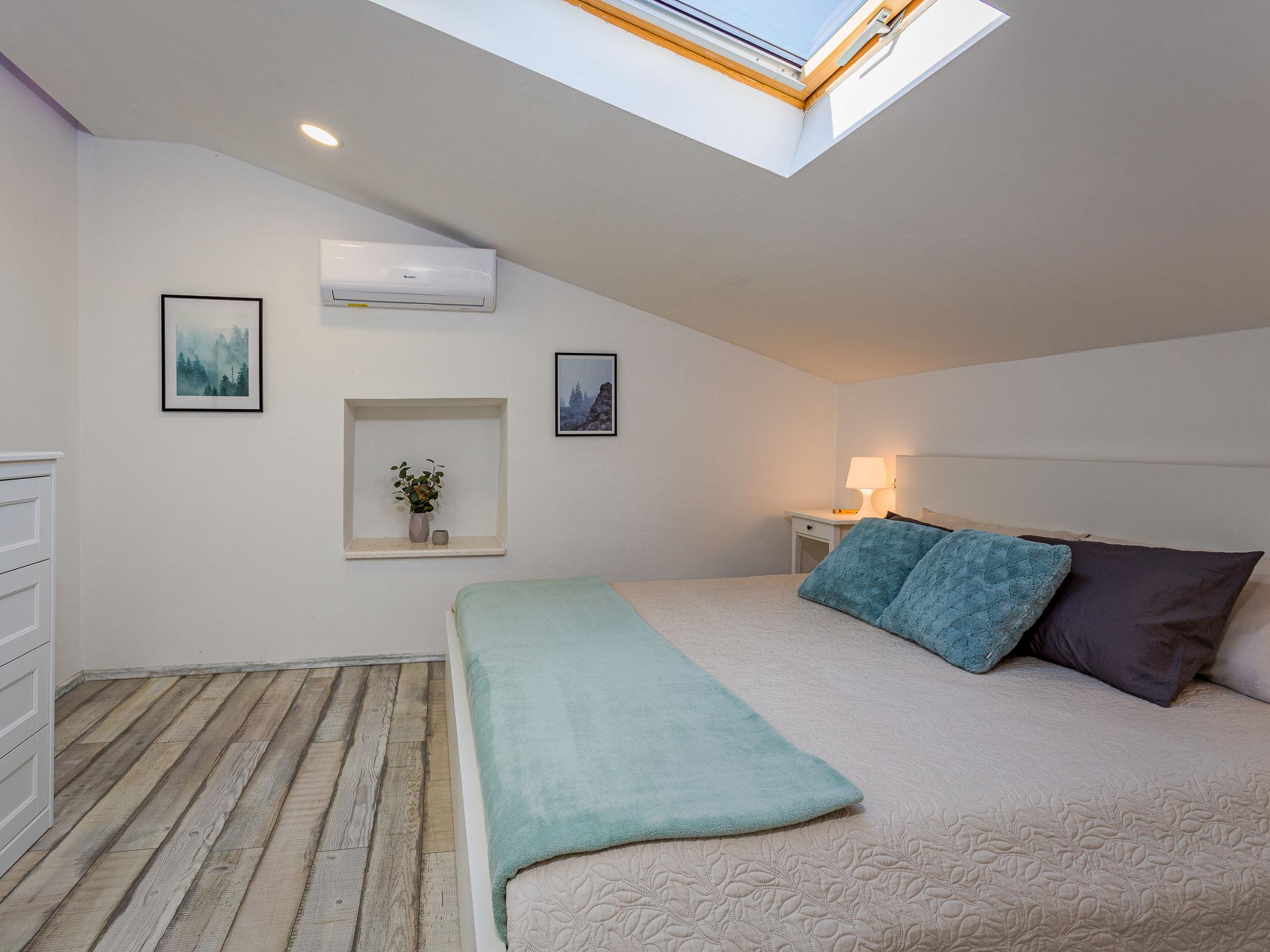 3-room semi-detached house 80 m2 on 2 levels. Beautiful furnishings: living/dining room with 1 double sofabed (160 cm, length 200 cm), satellite TV (flat screen), air conditioning. Exit to the balcony. Open kitchen (oven, dishwasher, 4 ceramic glass hob hotplates, toaster, kettle, microwave, freezer, electric coffee machine). Shower/WC. Top floor: 1 room with sloping ceilings, ceiling height 140 - 240 cm with rooflight with 1 french bed (180 cm, length 200 cm), satellite TV and air conditioning. 1 room with sloping ceilings, ceiling height 140 - 240 cm with rooflight with 2 beds (90 cm, length 200 cm), satellite TV and air conditioning. Sep. WC. Forced-air heating. Balcony 6 m2. Balcony furniture, deck chairs (4). Facilities: iron, children's high chair, baby cot. Internet (WiFi, free). Please note: maximum 1 pet/ dog allowed. Fire extinguisher.
