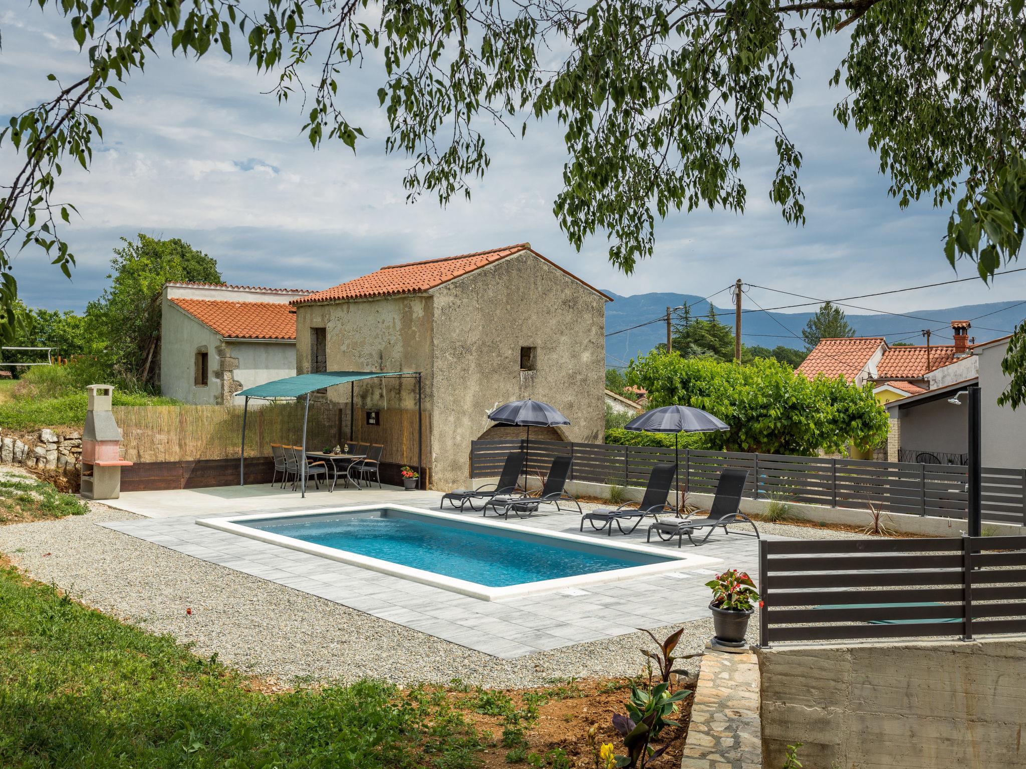 Semi-detached house "Hamara", 2 storeys. In the hamlet Runki 3 km from the centre of Pican, 25 km from the centre of Rabac, 25 km from the sea. Private: property 500 m2 with wildlife garden and trees, swimming pool angular (7 x 3 m, depth 150 cm, seasonal availability: 26.Apr. - 01.Nov.). Outdoor shower, terrace (8 m2), garden furniture, barbecue, pool maintenance by the owner/gardener. In the house: internet access, washing machine. Parking (for 2 cars) at the house on the premises. Shop 3 km, supermarket 3 km, restaurant 3 km, bus stop "Vozilici" 10 km, pebble beach 25 km.