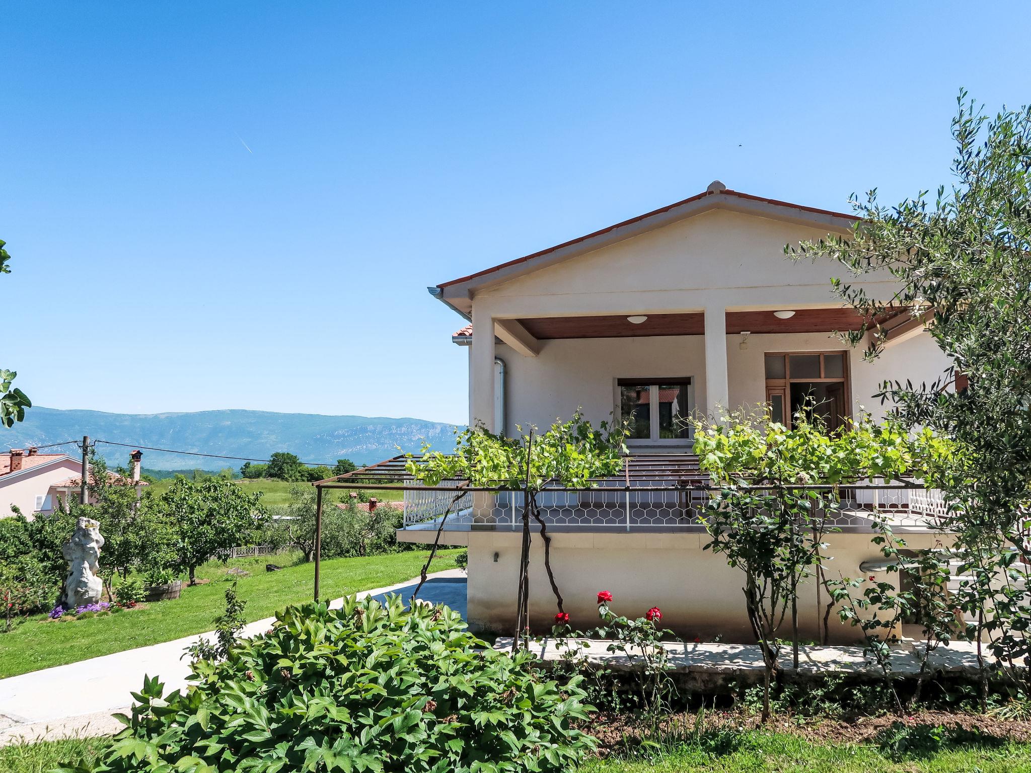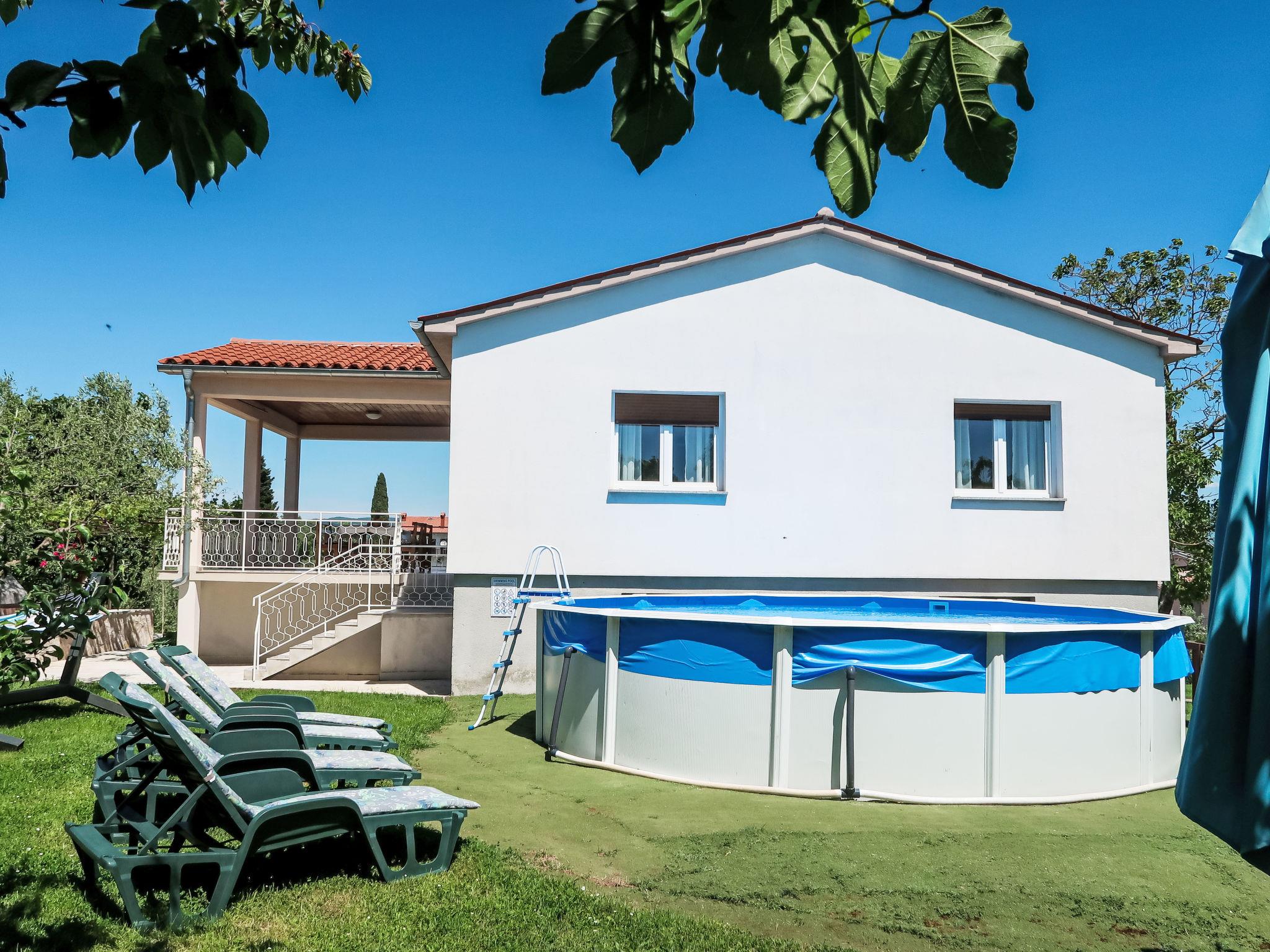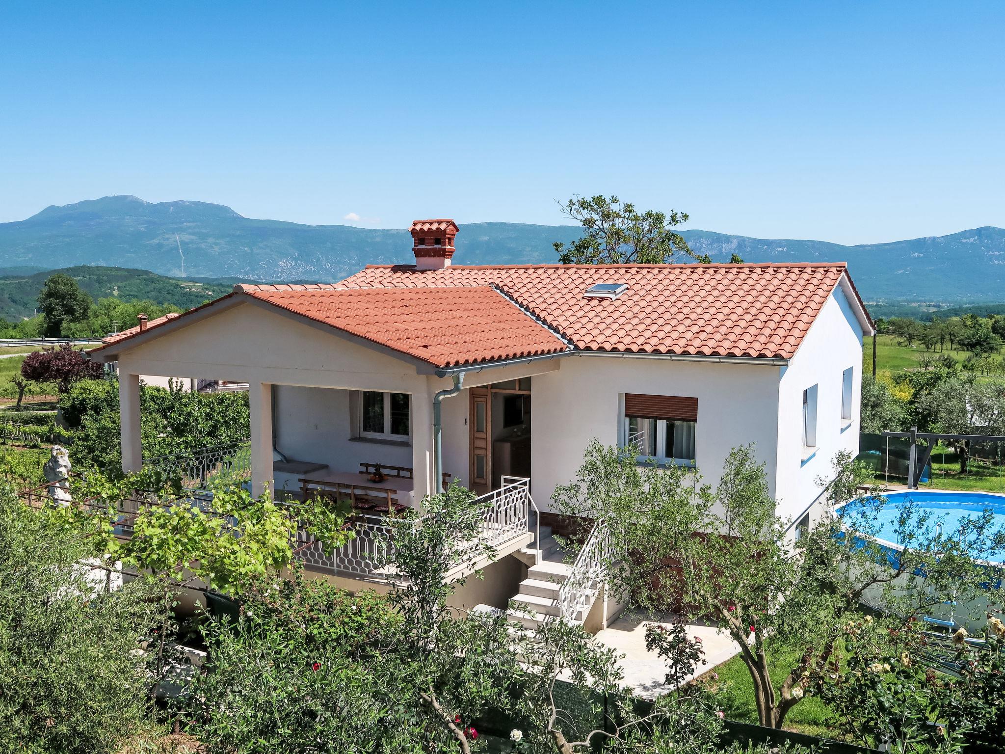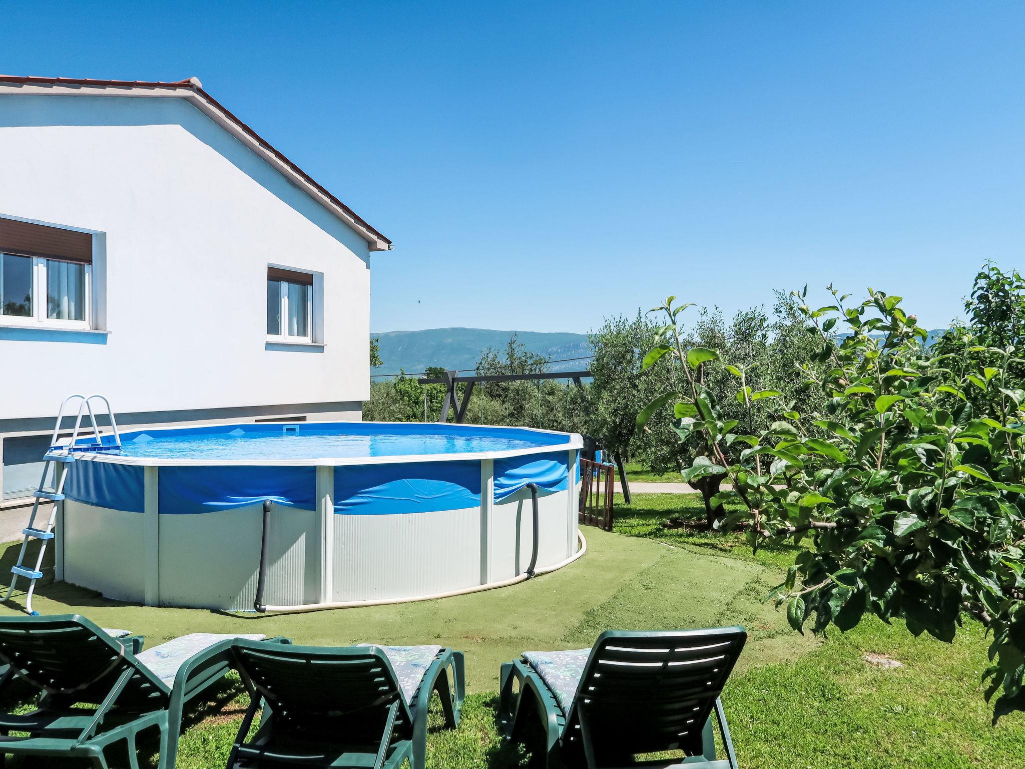 Single-family house "Laura", renovated in 2021. In the hamlet Most Pican 4 km from the centre of Pican, 20 km from the centre of Rabac, in a quiet position, 14 km from the sea. Private: property 600 m2 with wildlife garden and flowers, swimming pool (above ground) round (5,5 m diameter, depth 120 cm, seasonal availability: 07.May. - 01.Oct.). Outdoor shower, barbecue (slide, swing). In the house: internet access, washing machine. Parking (for 2 cars) at the house on the premises. Shop 2 km, supermarket 13 km, restaurant 300 m, bus stop 11.9 km, pebble beach 20 km. Part of the house is closed and unoccupied.
