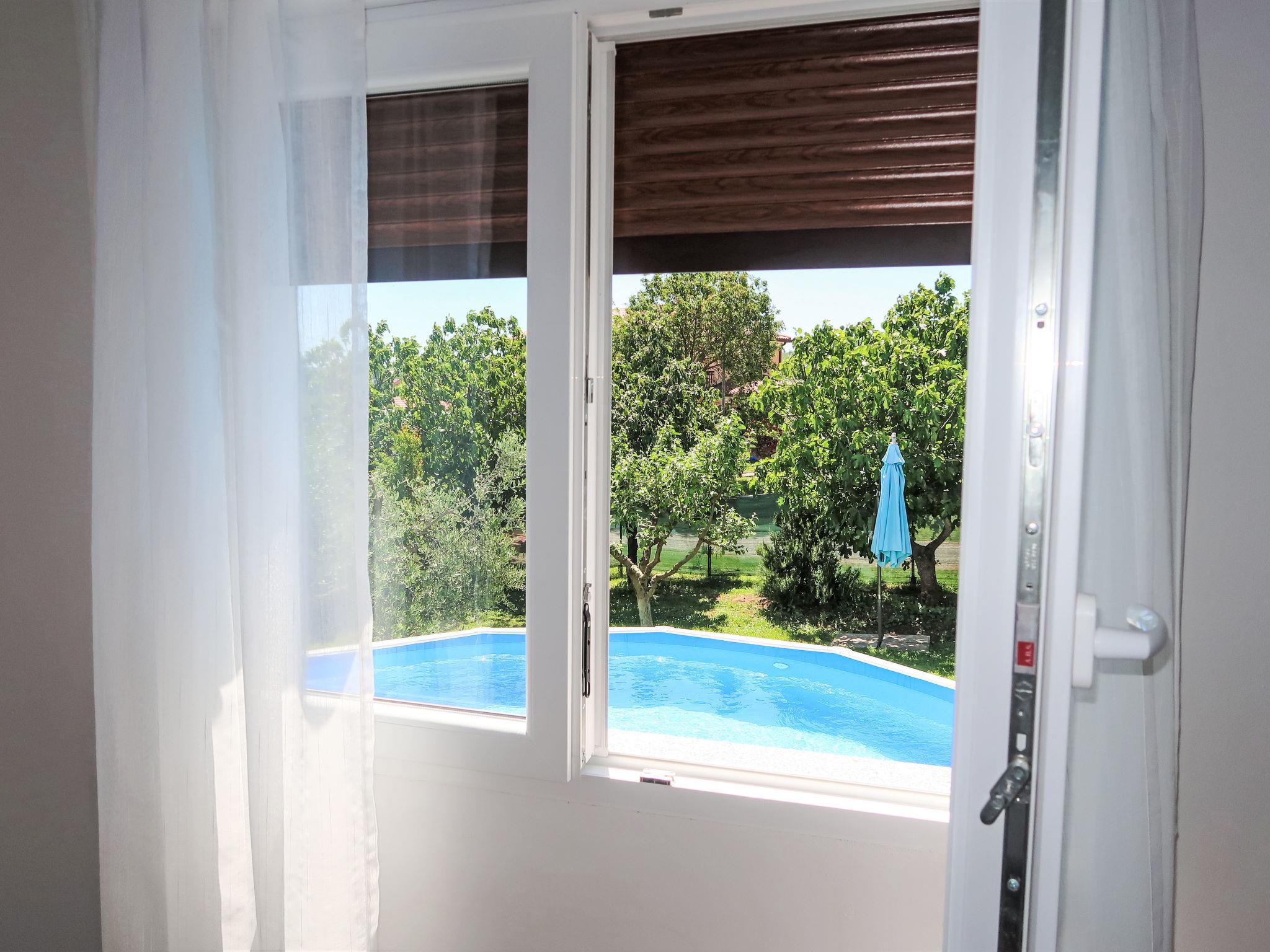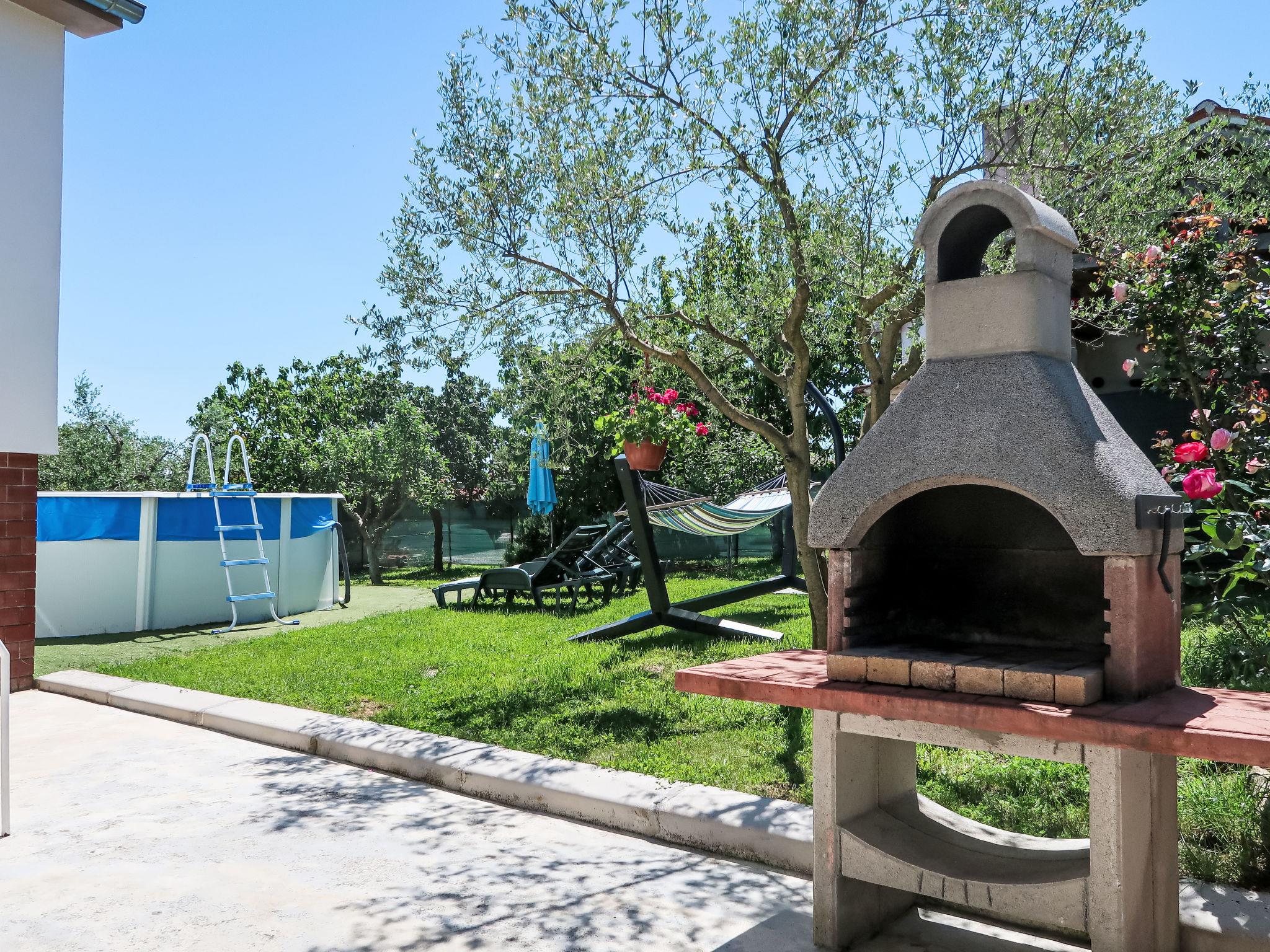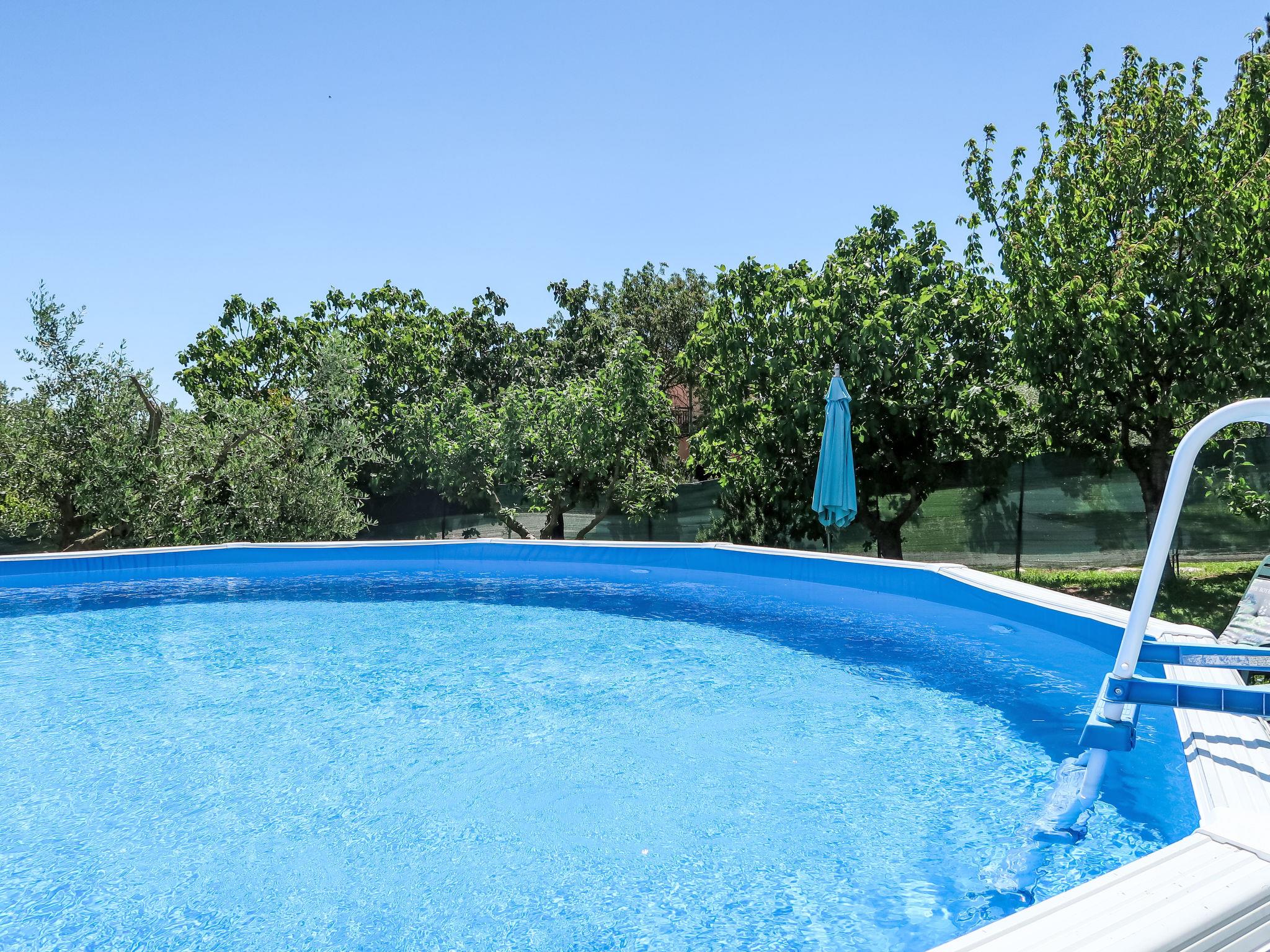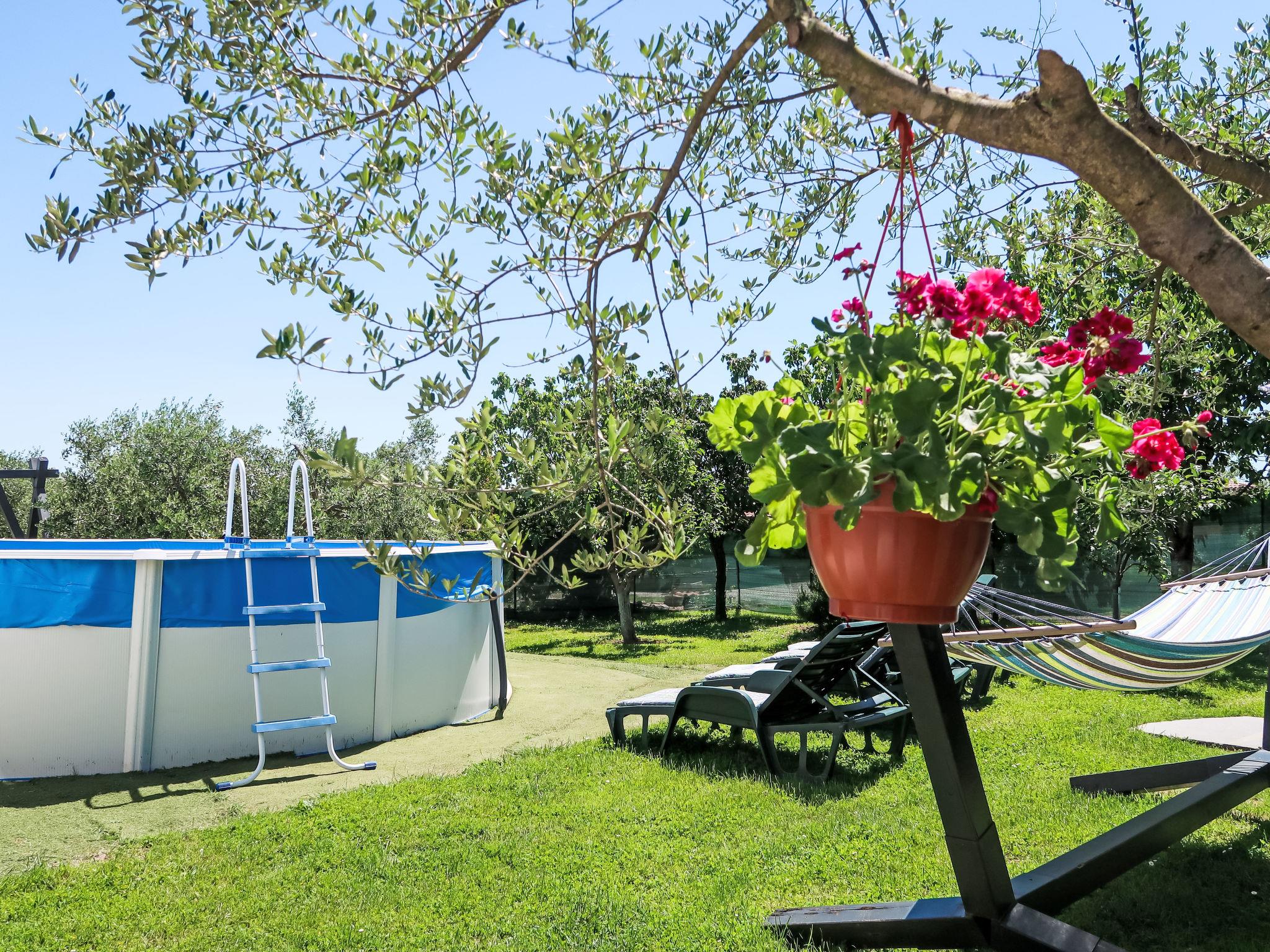 Single-family house "Laura", renovated in 2021. In the hamlet Most Pican 4 km from the centre of Pican, 20 km from the centre of Rabac, in a quiet position, 14 km from the sea. Private: property 600 m2 with wildlife garden and flowers, swimming pool (above ground) round (5,5 m diameter, depth 120 cm, seasonal availability: 07.May. - 01.Oct.). Outdoor shower, barbecue (slide, swing). In the house: internet access, washing machine. Parking (for 2 cars) at the house on the premises. Shop 2 km, supermarket 13 km, restaurant 300 m, bus stop 11.9 km, pebble beach 20 km. Part of the house is closed and unoccupied.
