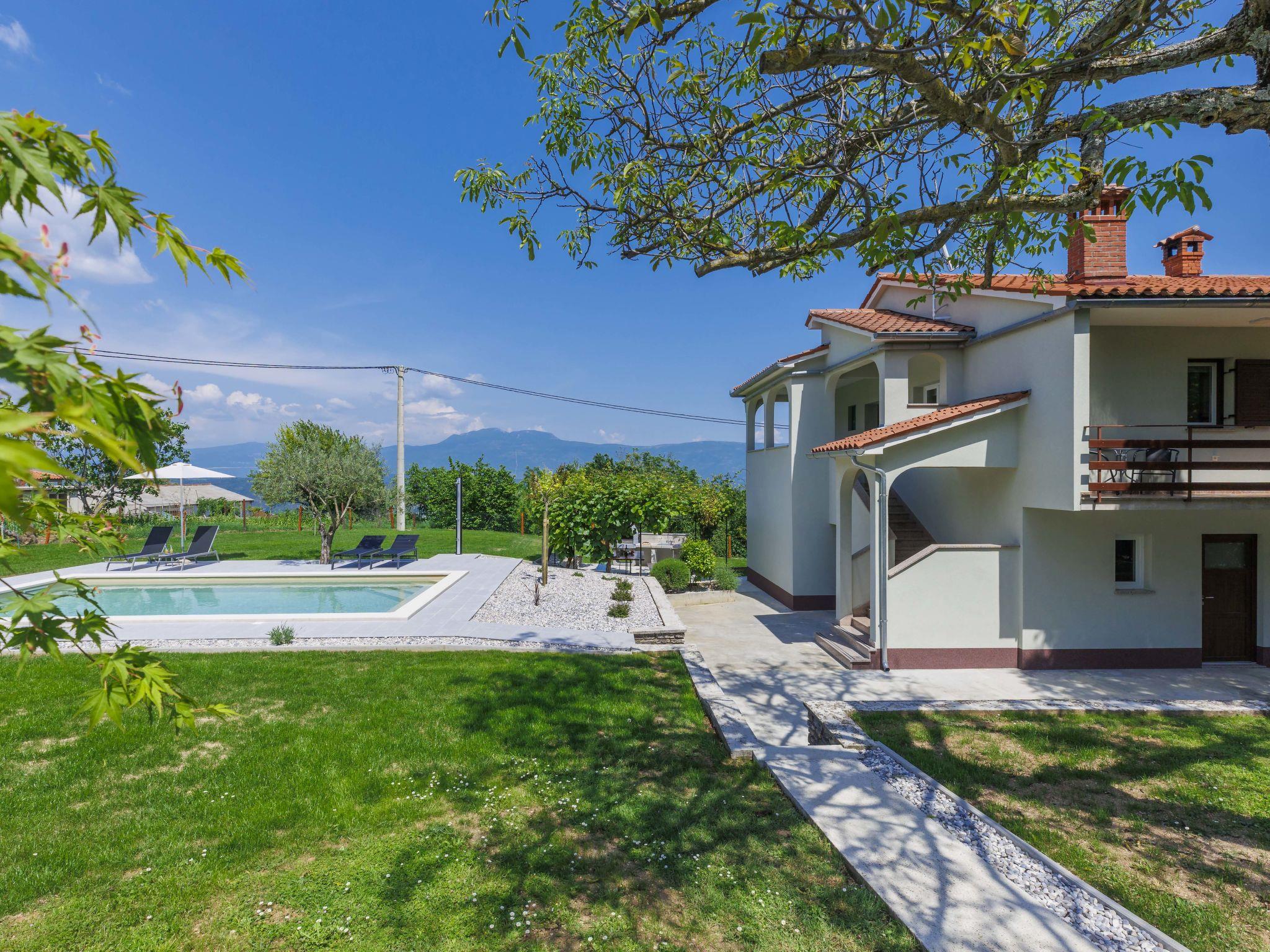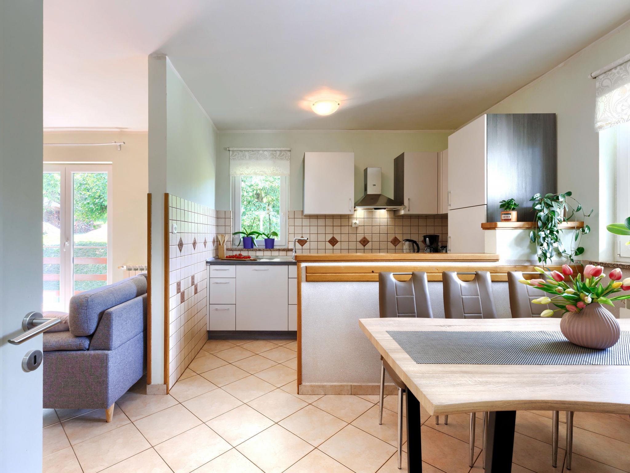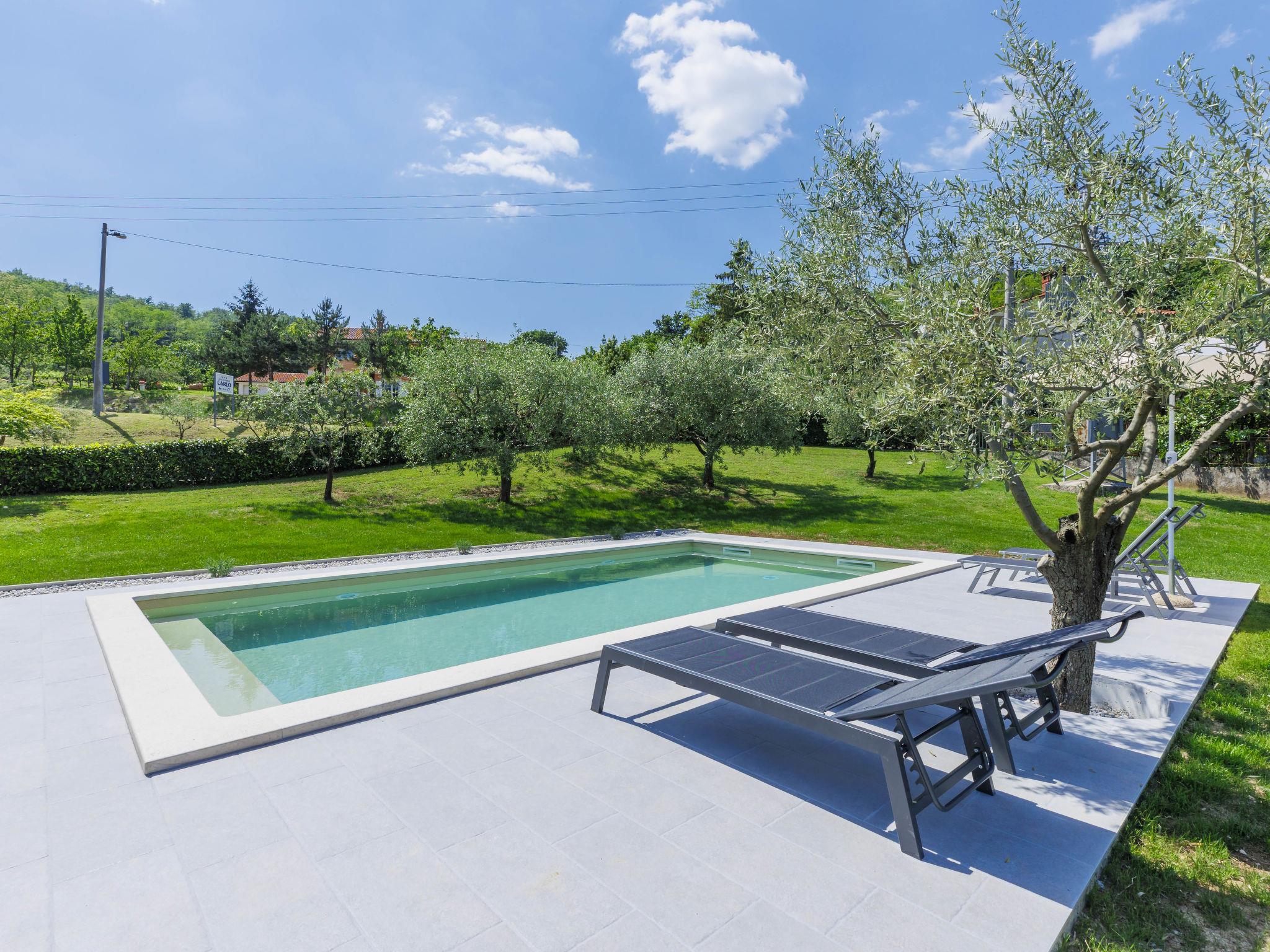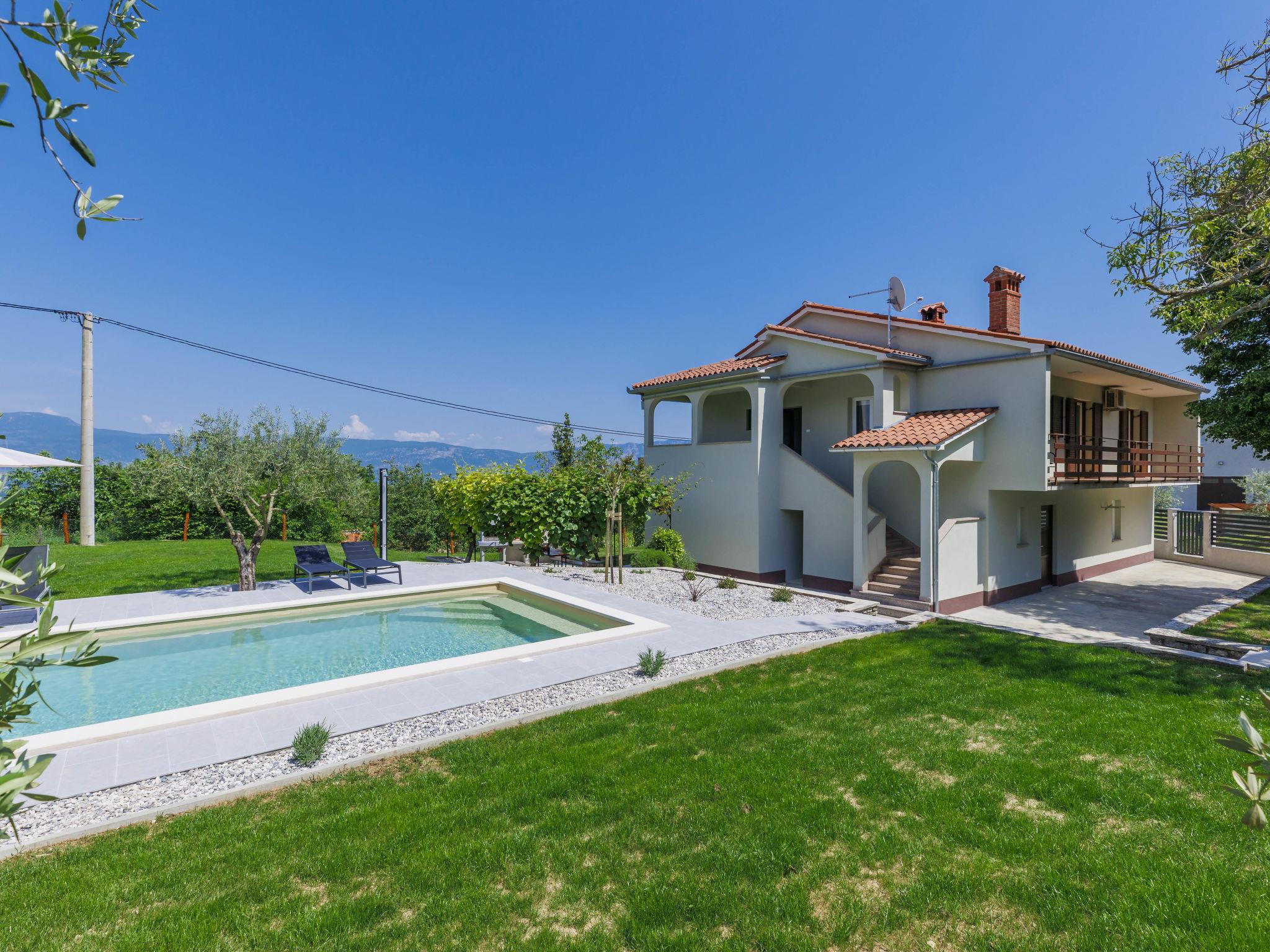 Single-family house "Carlo", 2 storeys. In the hamlet Kukurini 3 km from the centre of Pican, 27 km from the centre of Rabac, 12 km from the centre of Plomin, in a secluded position, 12 km from the sea. Private: property 1'000 m2 (fenced) with wildlife garden and trees, swimming pool (8 x 4 m, depth 150 cm, seasonal availability: 29.Apr. - 03.Oct.) with internal staircase. Outdoor shower, patio, barbecue, pool maintenance by the owner/gardener. In the house: internet access, washing machine. Parking (for 3 cars) at the house on the premises. Shop 1.5 km, restaurant 2 km, bus stop 13.3 km, pebble beach 12 km. Marina 27 km. Part of the house is closed and unoccupied.