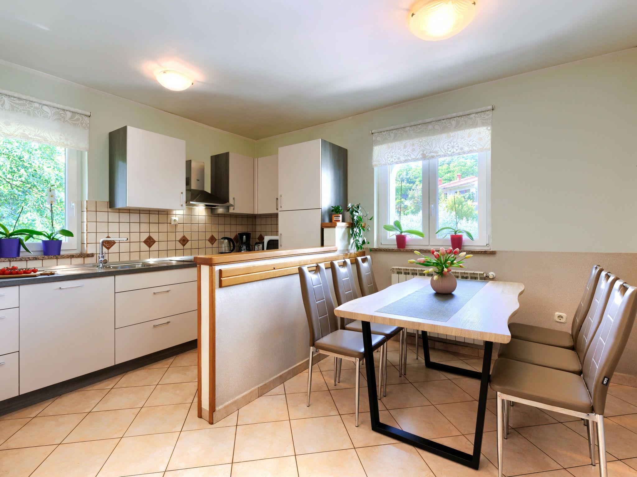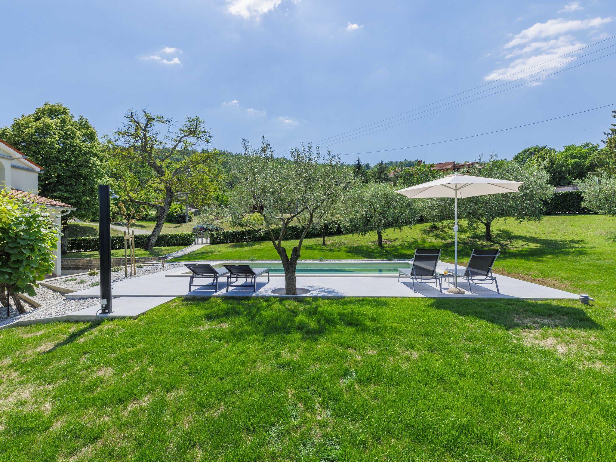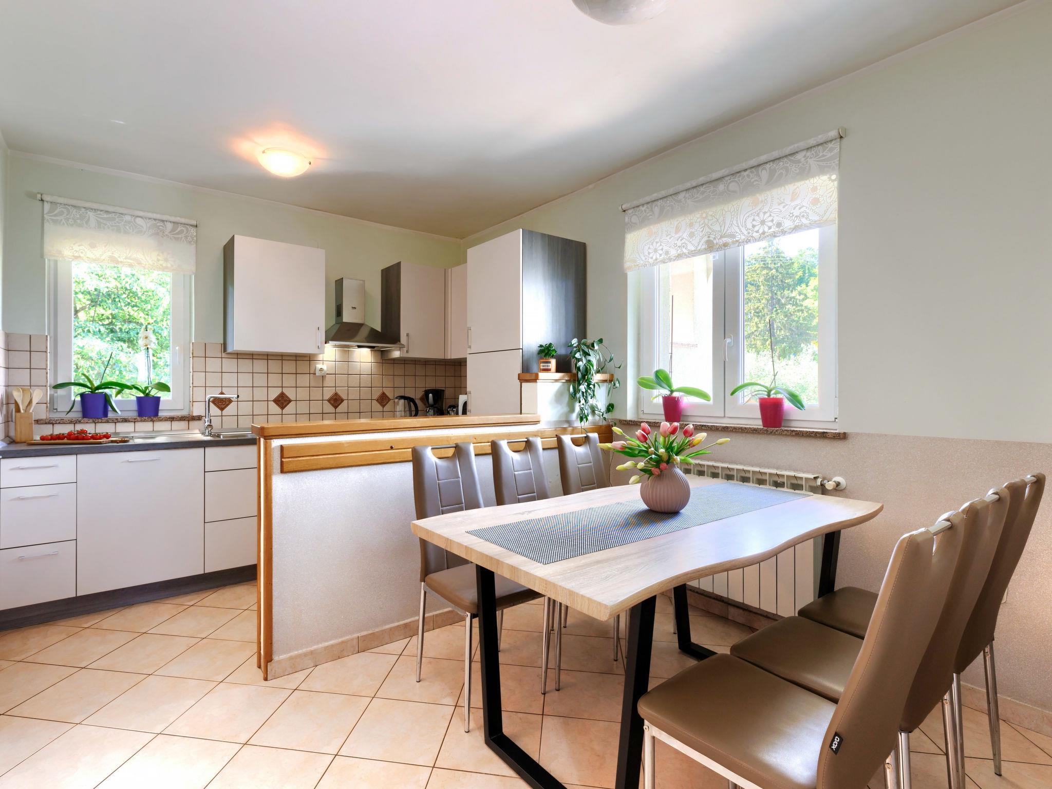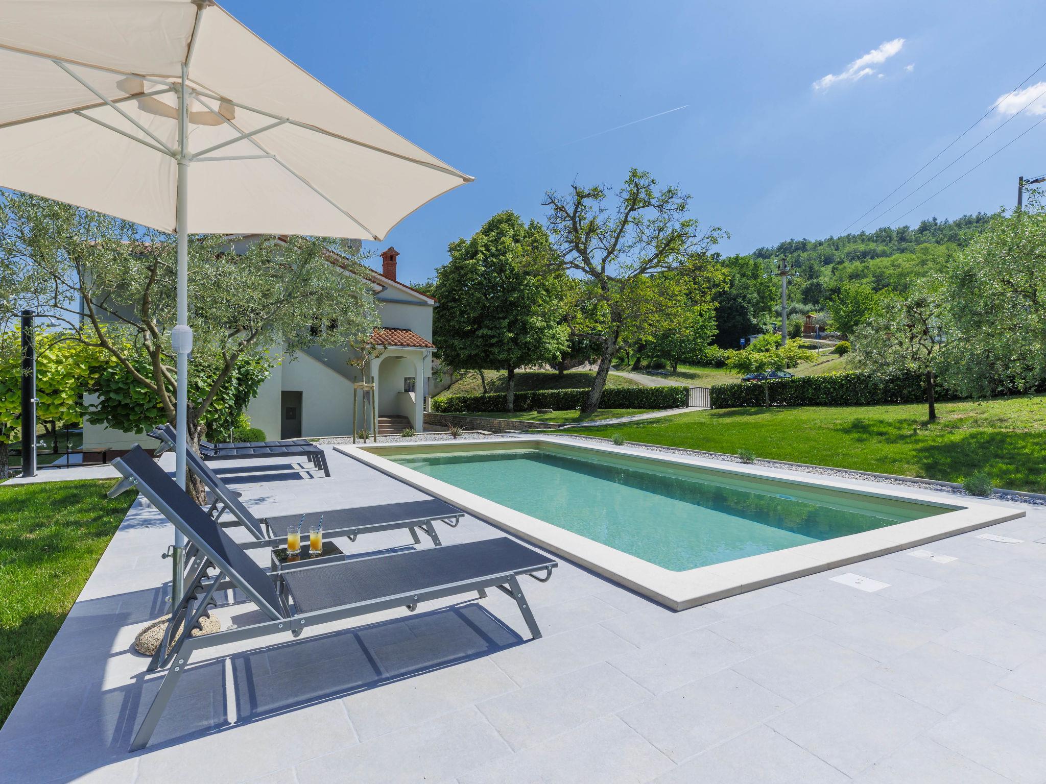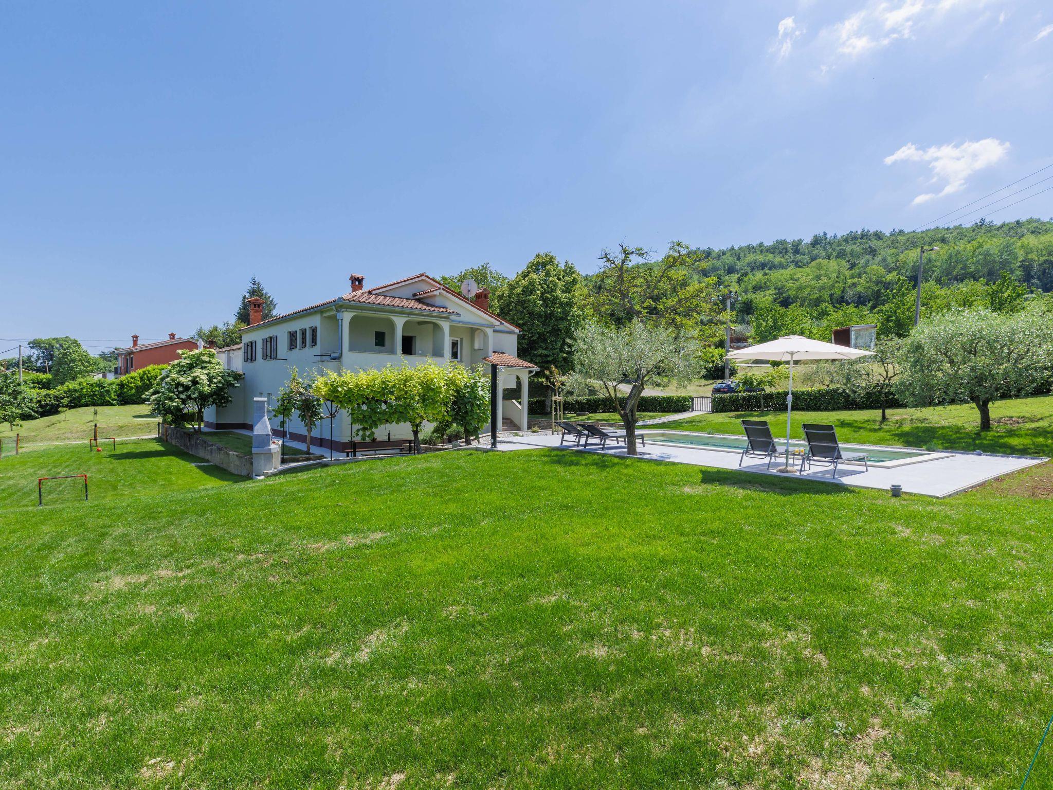 Single-family house "Carlo", 2 storeys. In the hamlet Kukurini 3 km from the centre of Pican, 27 km from the centre of Rabac, 12 km from the centre of Plomin, in a secluded position, 12 km from the sea. Private: property 1'000 m2 (fenced) with wildlife garden and trees, swimming pool (8 x 4 m, depth 150 cm, seasonal availability: 29.Apr. - 03.Oct.) with internal staircase. Outdoor shower, patio, barbecue, pool maintenance by the owner/gardener. In the house: internet access, washing machine. Parking (for 3 cars) at the house on the premises. Shop 1.5 km, restaurant 2 km, bus stop 13.3 km, pebble beach 12 km. Marina 27 km. Part of the house is closed and unoccupied.