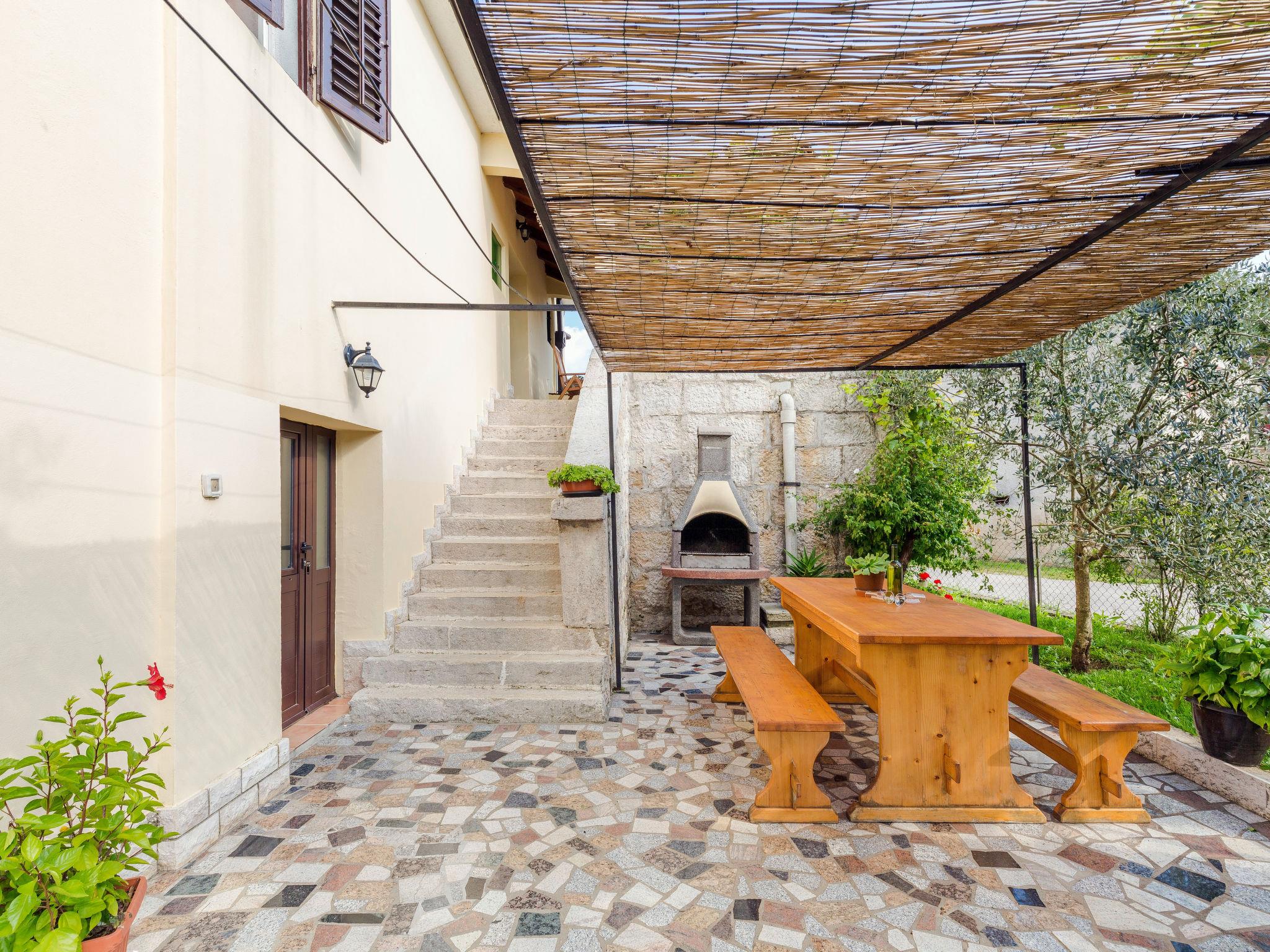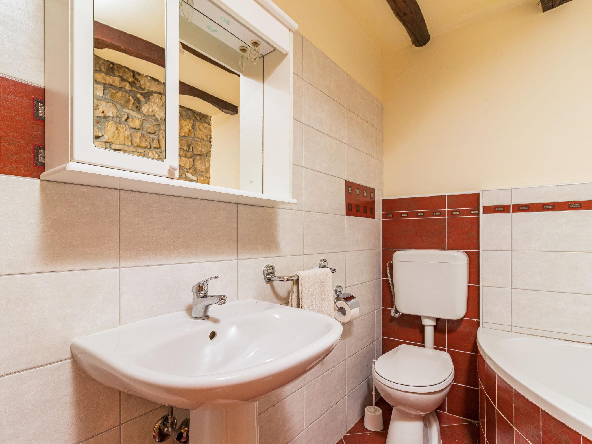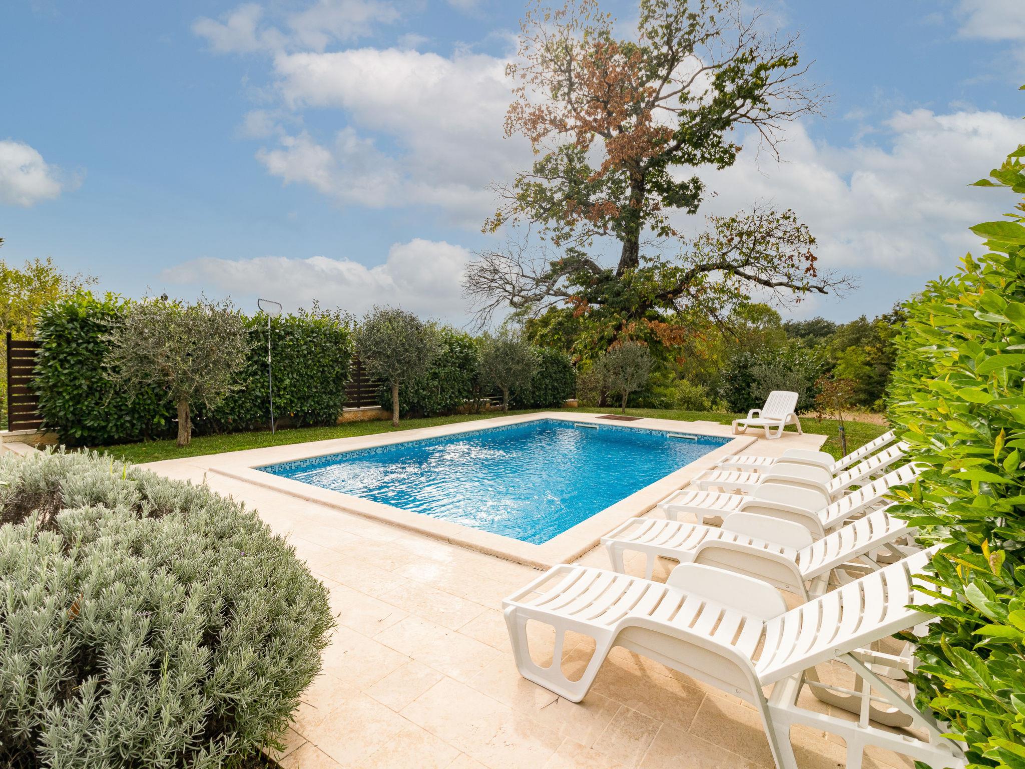 Single-family house "Sonja", 2 storeys. In the hamlet Montovani 8 km from the centre of Pican, 13 km from the centre of Žminj, 27 km from the centre of Rabac, 27 km from the sea. Private: property 1'500 m2 with lawn, swimming pool (7 x 4 m, depth 150 cm, seasonal availability: 01.May. - 09.Oct.). Basketball, terrace, garden furniture, barbecue, children's playground, pool maintenance by the owner/gardener. In the house: internet access, table football. Parking (for 3 cars) at the house on the premises. Shop 4 km, restaurant 13 km, bus stop 12.5 km, rocky beach 27 km. Groups of teenagers are not allowed.