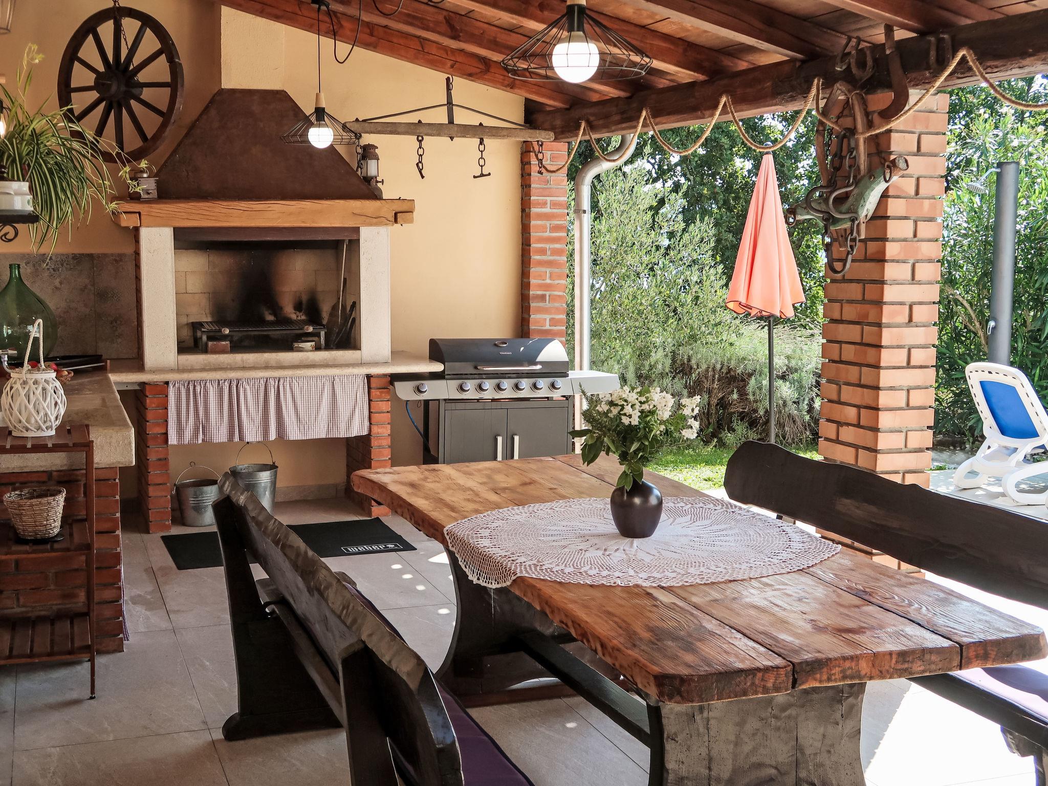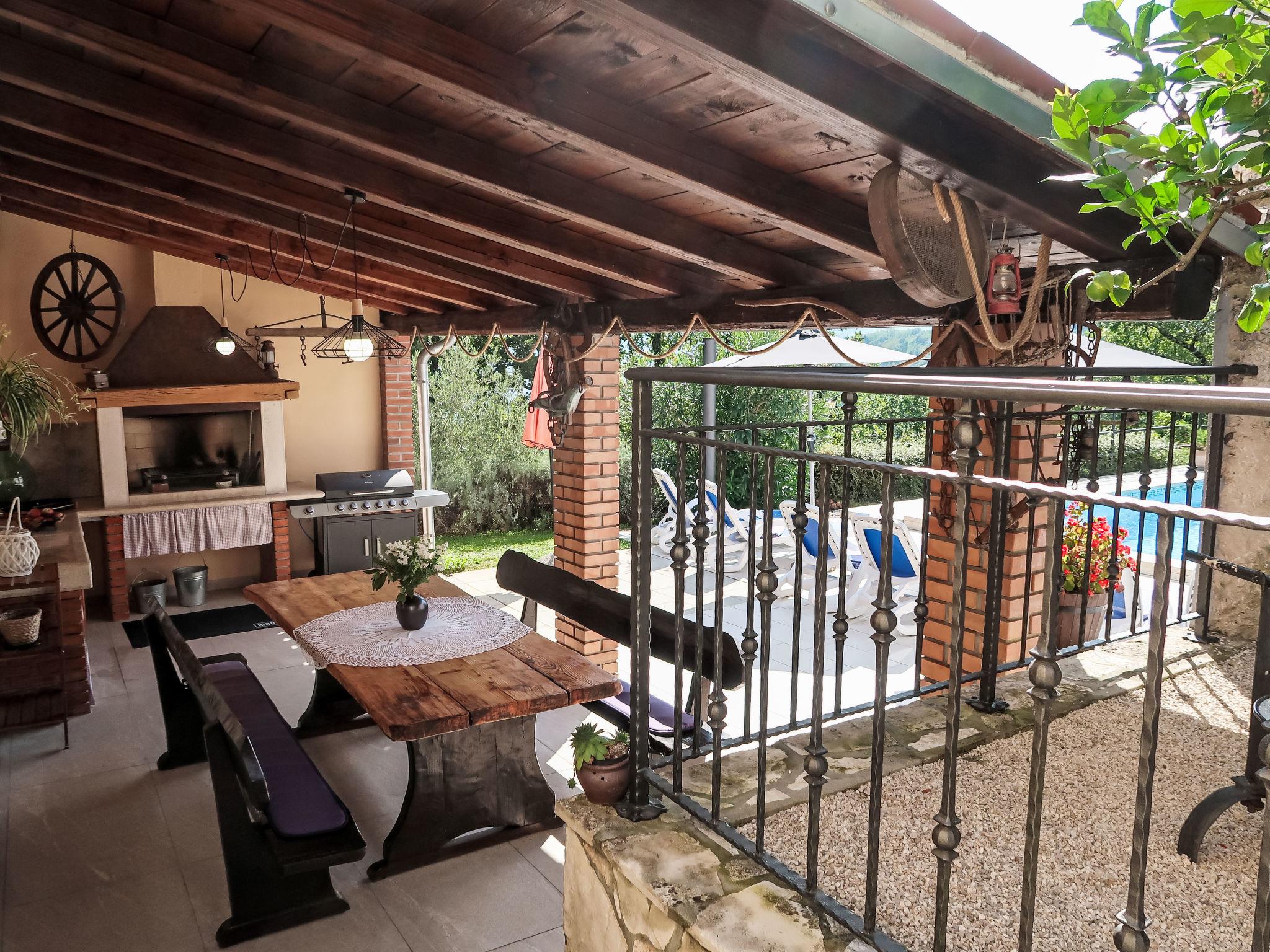 Single-family house "Mariva". In the hamlet Hajnožici 2.5 km from the centre of Pican, 5 km from the centre of Potpican, 15 km from the sea. Private: property 2'000 m2 with lawn and trees, swimming pool (6 x 4 m, depth 135 cm, seasonal availability: 01.May. - 04.Oct.) with internal staircase. WC in the pool area, outdoor shower, table tennis, badminton, terrace (16 m2), garden furniture, barbecue, children's playground (swing), pool maintenance by the owner/gardener. In the house: internet access, washing machine. Parking (for 3 cars) on the premises. Supermarket 5 km, bus stop 12.1 km, pebble beach 21 km. Marina 21 km.