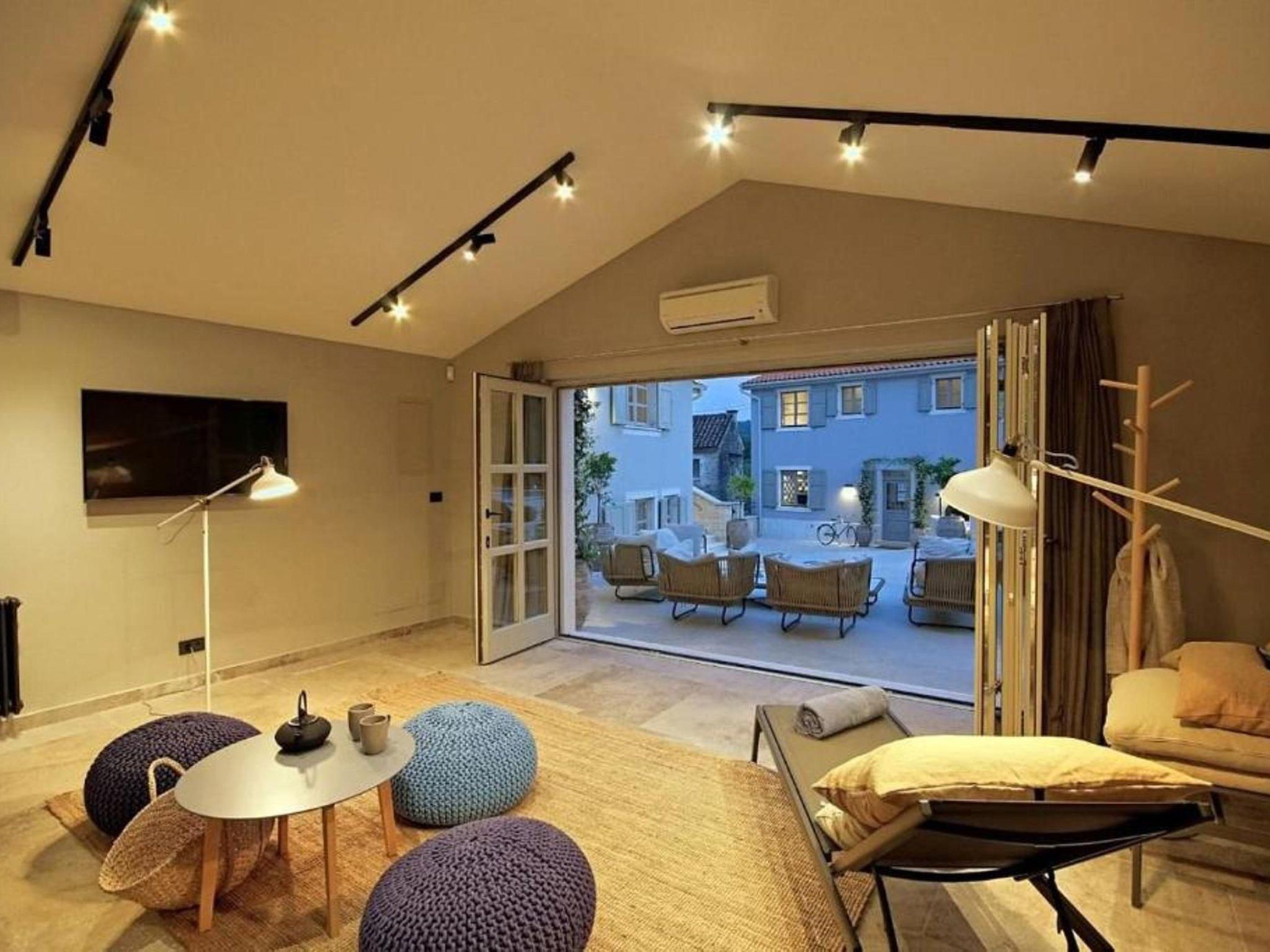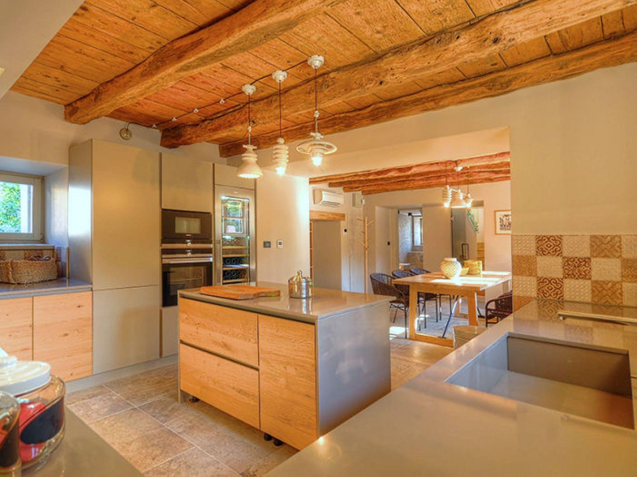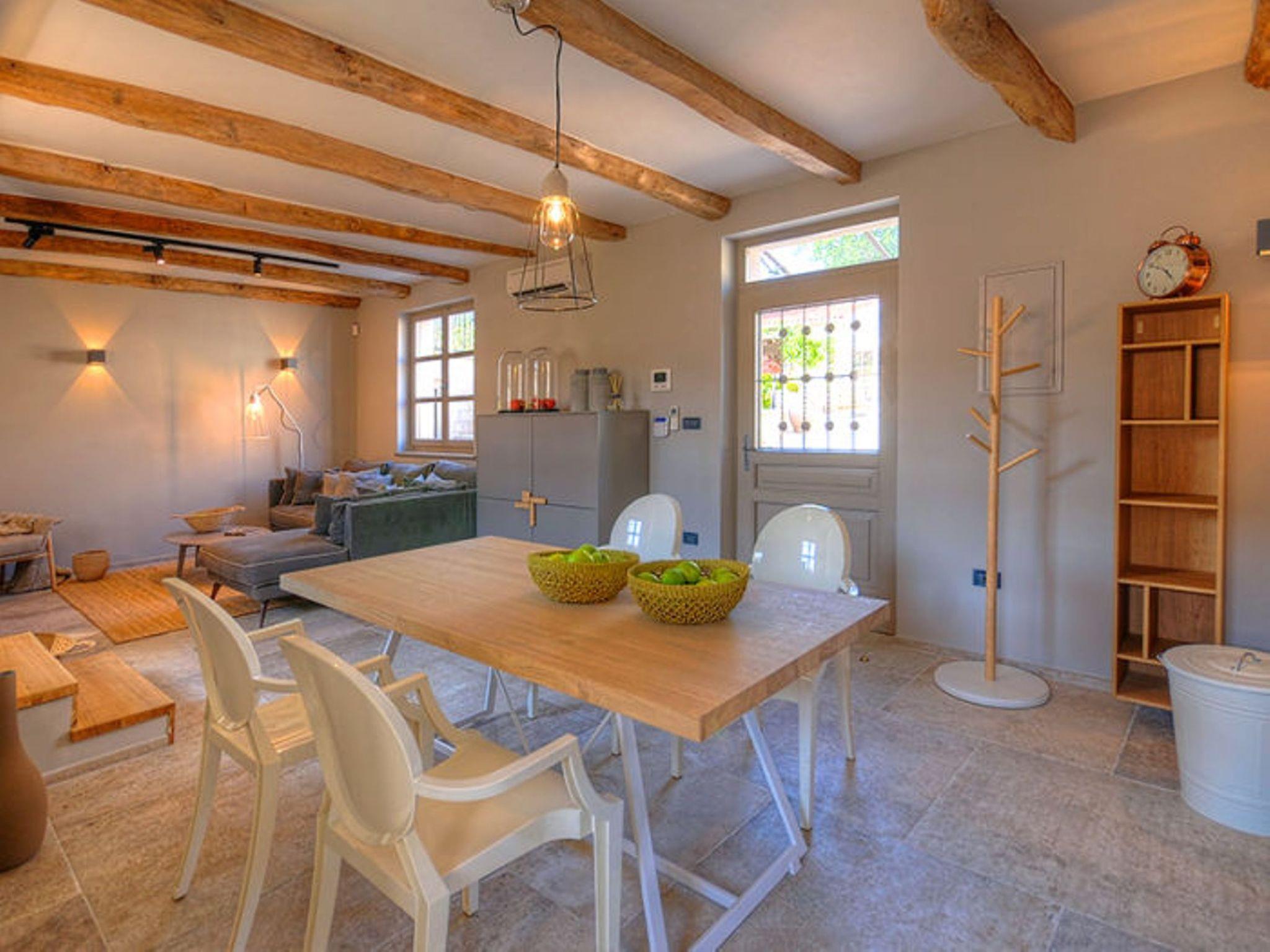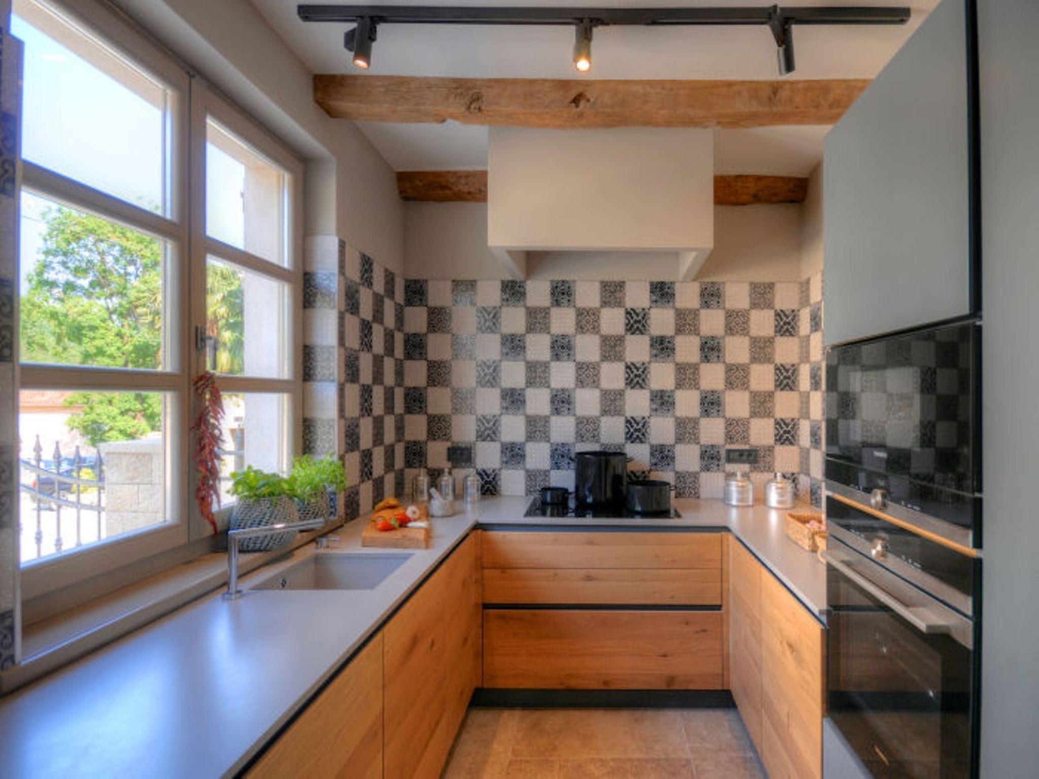 Villa Zita Exclusive is located on the edge of the quiet village of Svici near the town of Pican, about 16.5 km from the sea and 27 km from the tourist resort of Rabac. On a 650 square metre fenced plot, guests of the villa have numerous outdoor facilities at their disposal: Pool of 55 sqm with whirlpool area, counter-current swimming and waterfall, a fully equipped summer kitchen with charcoal and gas grill, bread oven, ice maker, dishwasher, table and chairs for 10 people and a large LCD TV. There is also a large sun terrace with sun loungers and an air-conditioned 50 square metre wellness area with LCD TV, Finnish sauna, shower and WC. Private parking for 4 cars is available on the property.
