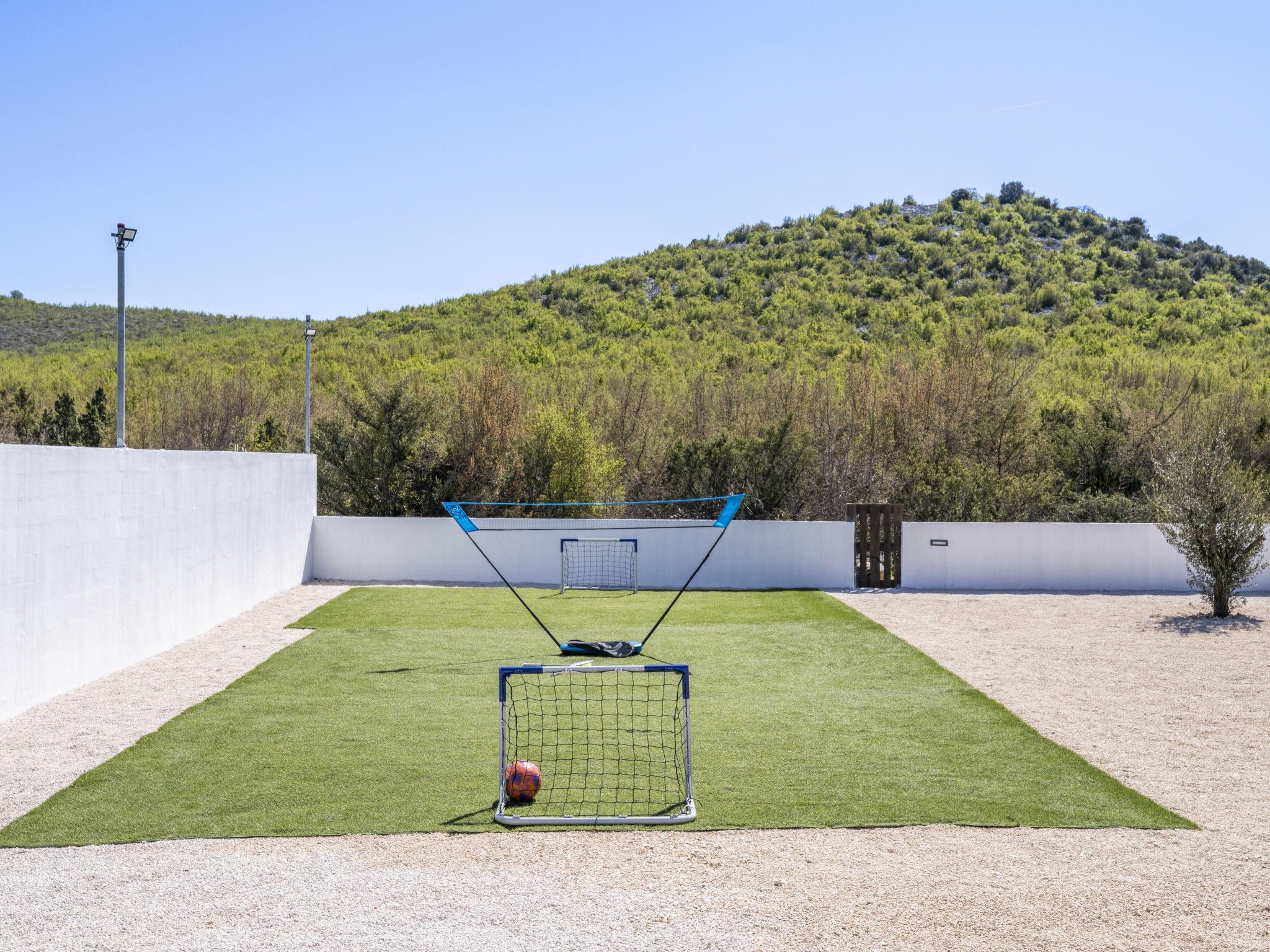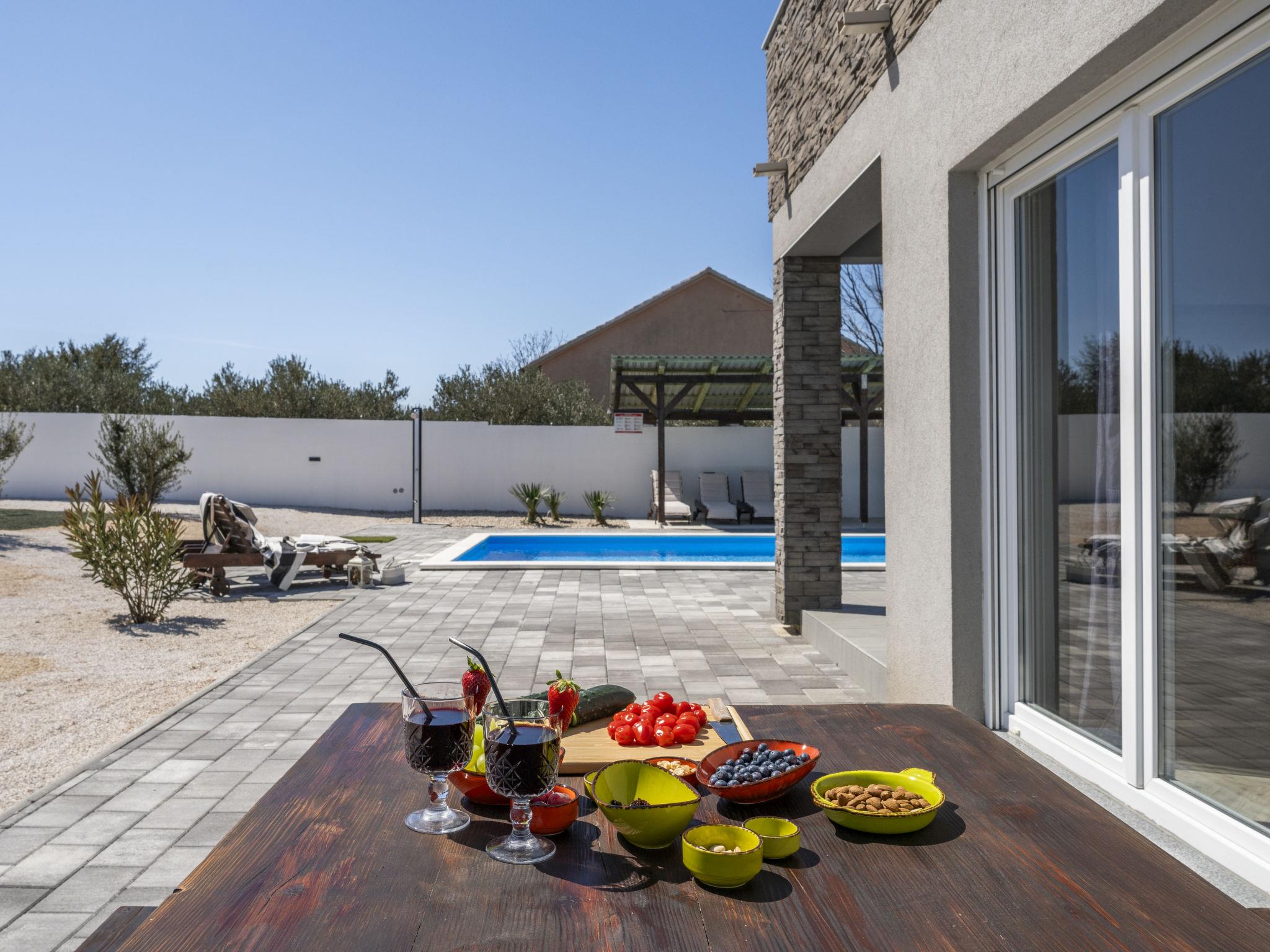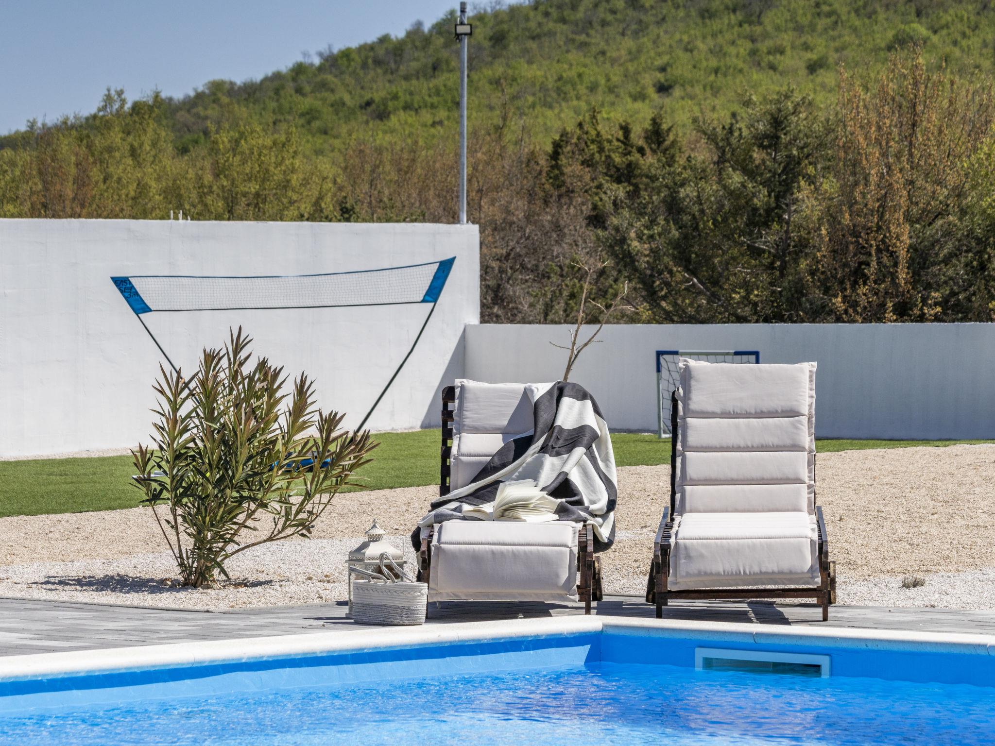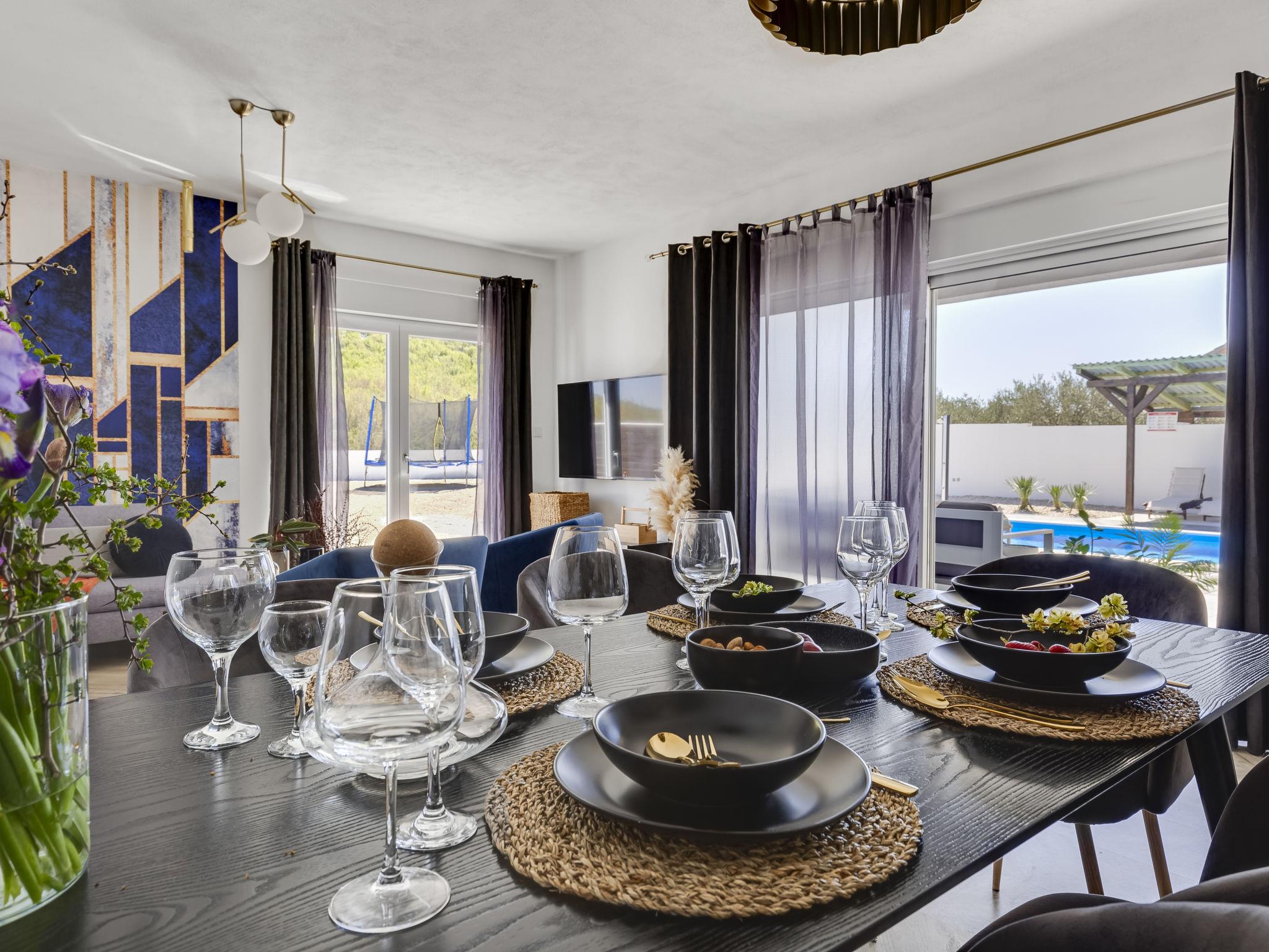 Radašinovci 13 km from Pirovac: Single-family house "Gala". 21 km from the centre of Tisno, 23 km from the centre of Vodice, 20 km from the centre of Biograd na Moru, in a sunny position, 13 km from the sea. Private: property 1'000 m2 (fenced), swimming pool (8 x 4 m, depth 150 cm, seasonal availability: 15.May. - 30.Sep.) with internal staircase. Outdoor shower, table tennis, arbour (20 m2), garden furniture, barbecue, children's playground (swing). In the house: internet access, trampoline, washing machine. Parking (for 4 cars) at the house on the premises. Shop 3 km, restaurant 5 km, bus stop 6.8 km, pebble beach 13 km. Marina 13 km, cycle lane 2 km. Well-known lakes can easily be reached: Vransko jezero 10 km.