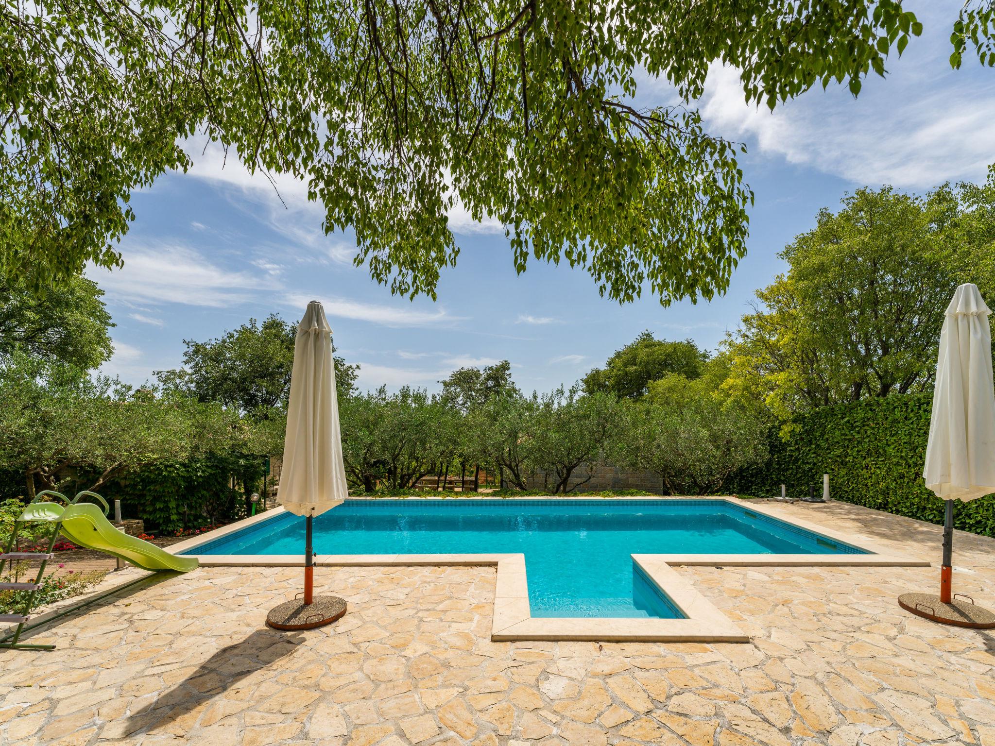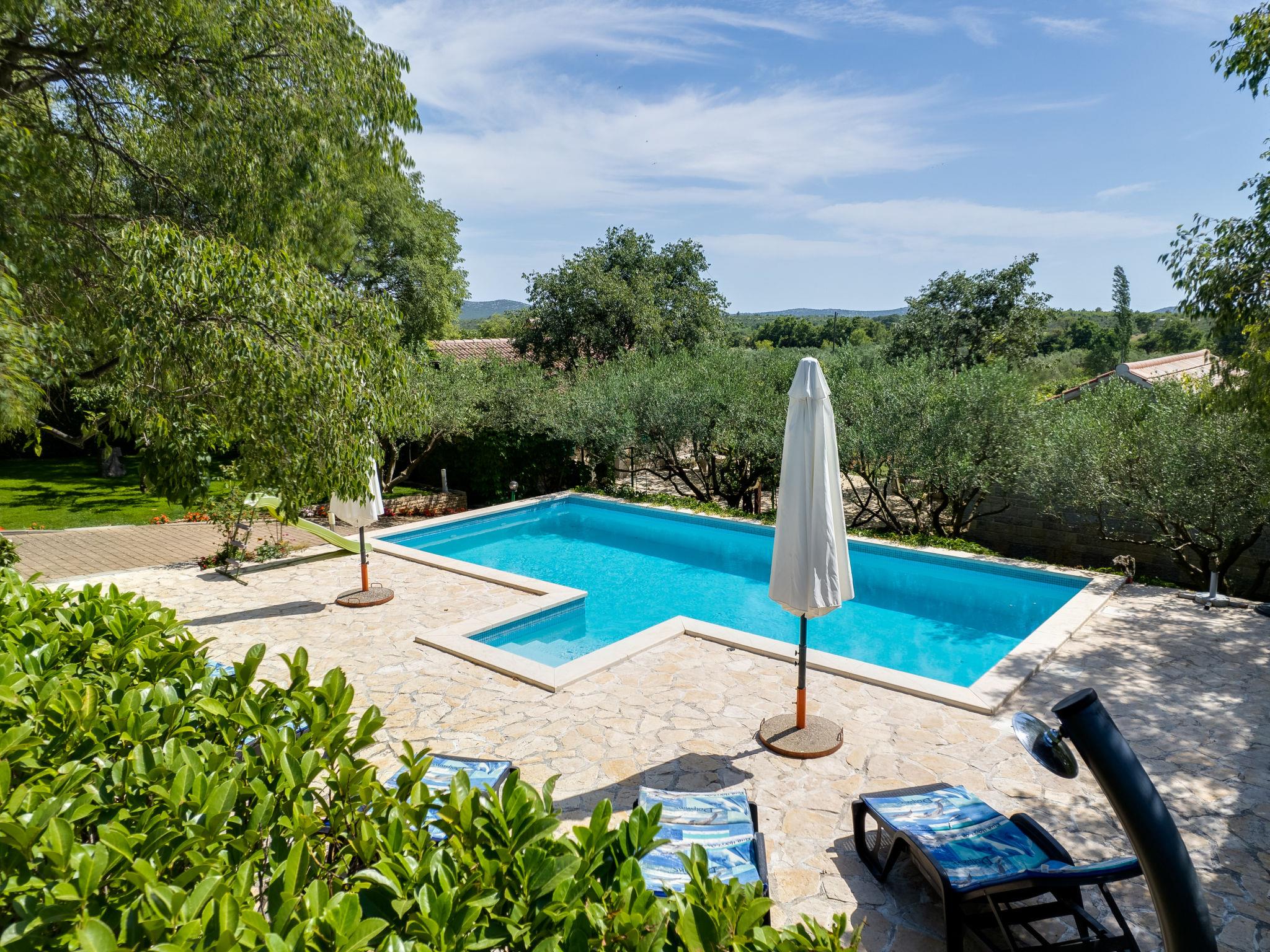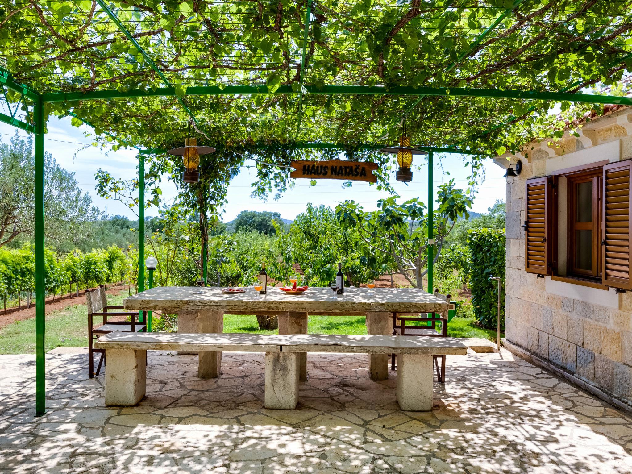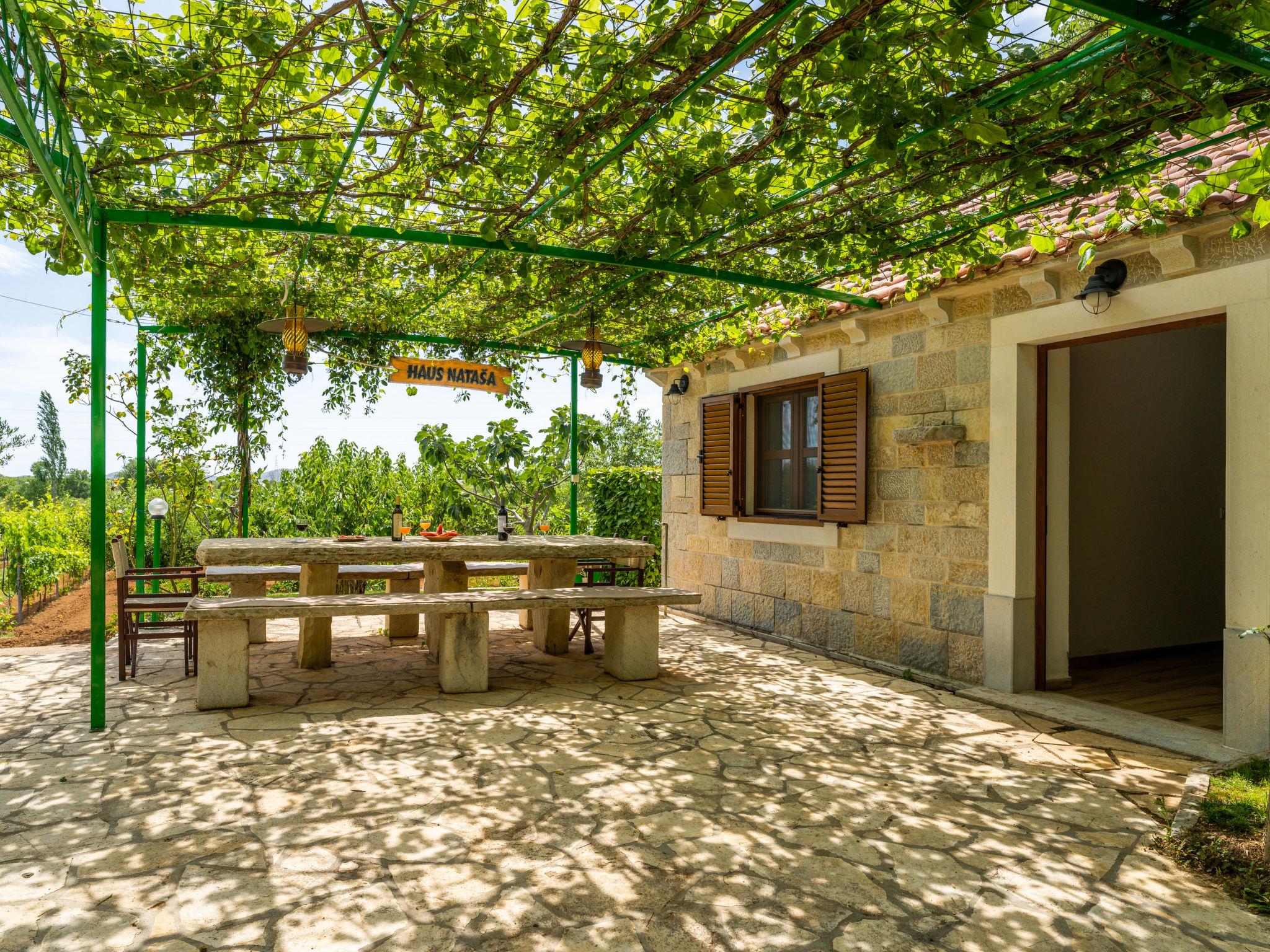 Stankovci 15 km from Pirovac: Rustic single-family house "Nataša". 1 km from the centre of Stankovci, 20 km from the centre of Vodice, 20 km from the centre of Tisno, in a sunny position, 15 km from the sea. Private: property 1'500 m2, swimming pool angular (9 x 4 m, depth 150 cm, seasonal availability: 01.May. - 31.Oct.) with internal staircase. Outdoor shower, pergola, garden furniture, barbecue house, pool maintenance by the owner/gardener. In the house: internet access, washing machine. Parking (for 2 cars) at the house on the premises. Shop 1 km, restaurant 1 km, café 1 km, bus stop 550 m, pebble beach 15 km. Nearby attractions: NP Krka 30 km. Well-known lakes can easily be reached: Vransko jezero 20 km.