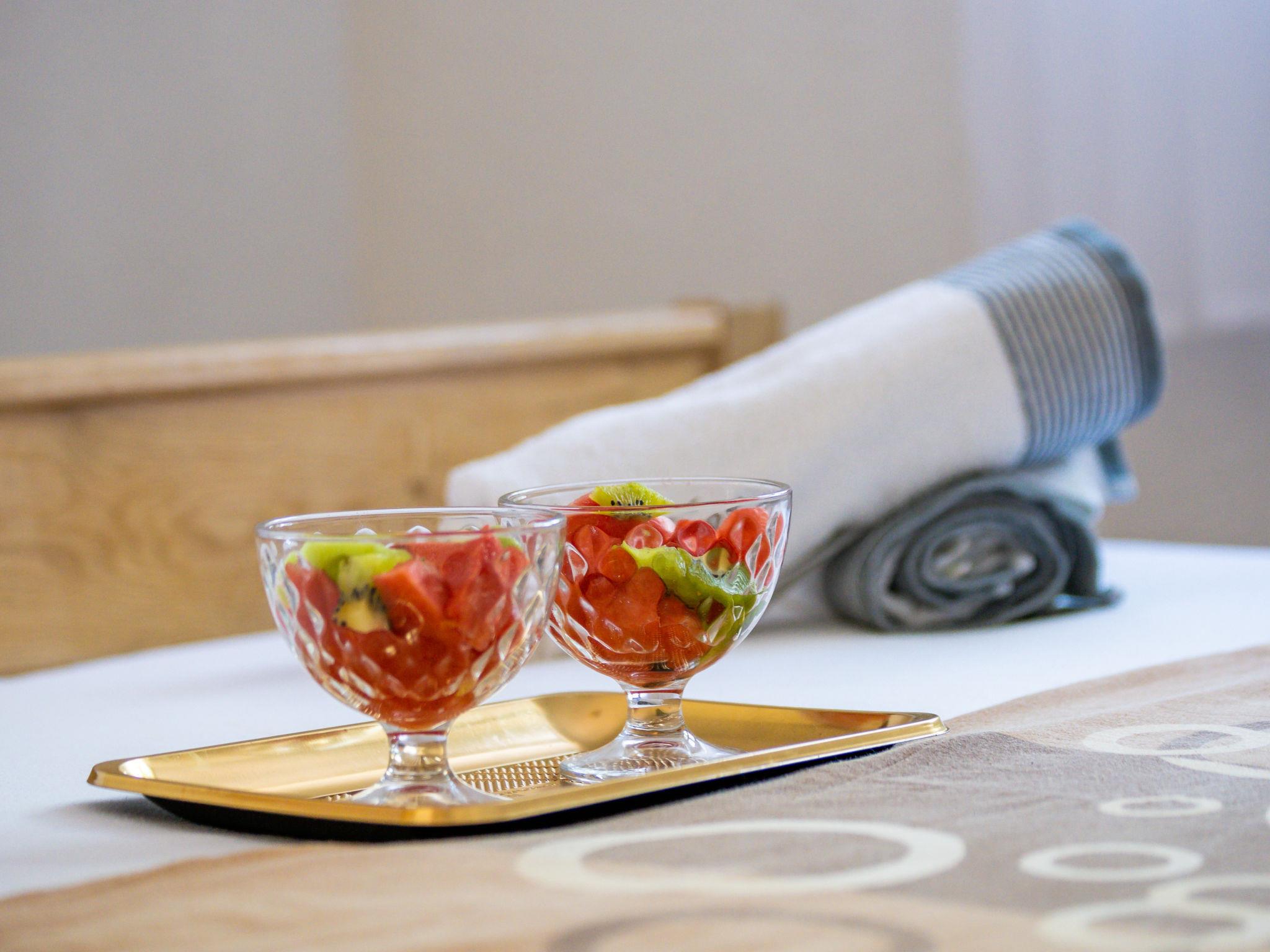 5-room house 92 m2. Living/dining room with satellite TV (flat screen), air conditioning. Exit to the terrace. Dining room with kitchen corner. Exit to the terrace. 1 room with 1 french bed (160 cm, length 200 cm). 1 room with 2 beds (90 cm, length 200 cm). 2 rooms, each room with 1 french bed (160 cm, length 200 cm), shower/WC and air conditioning. Open kitchen (1 hot plate, oven, dishwasher, 3 gas rings, kettle, freezer, electric coffee machine). Shower/WC. Deck chairs. View of the swimming pool. Facilities: washing machine, baby cot, hair dryer. Internet (WiFi, free). No internal connecting door between the separated properties.