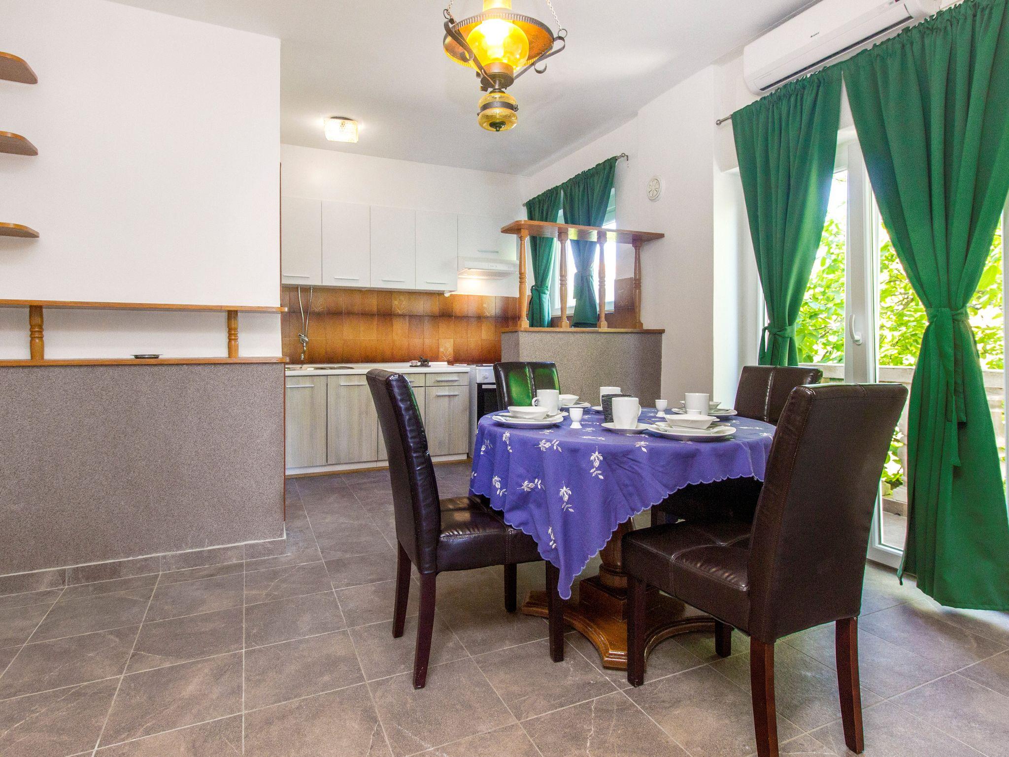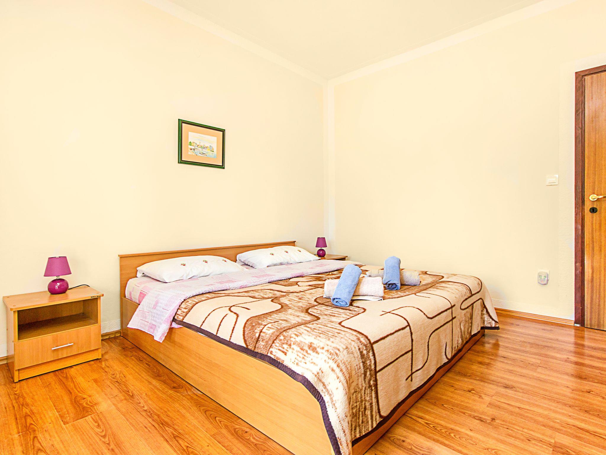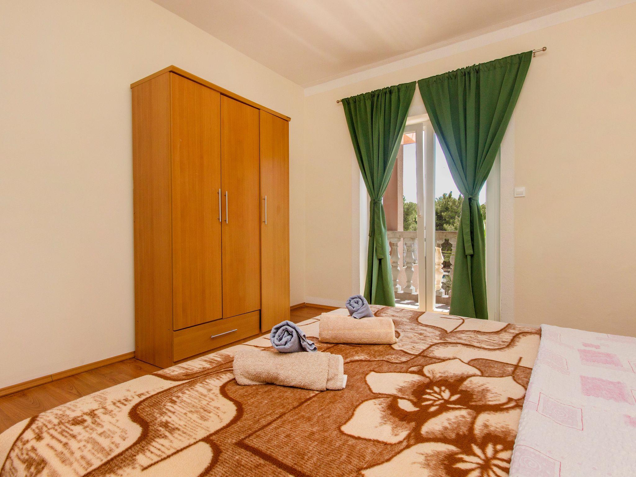 Ferienwohnung bietet Platz für 4 Gäste. Die Betten sind in Schlafzimmern, die es 2 gibt, innerhalb einer Gesamtfläche von 52m2, angeordnet. Die Gäste haben eine eigene Terrasse zur Verfügung, auf der sie in warmen Sommernächten genießen können. Es ist erlaubt, Speisen auf dem Gemeinschafts-Grill vorzubereiten. In der Unterkunftseinheit besteht die Möglichkeit des Mitbringens von Haustieren gegen Aufpreis. IM PREIS INBEGRIFFEN: Kurtaxe, Endreinigung, Parkplatz, Internet, Bügeleisen, Föhn. VERBINDLICHE ZUSÄTZLICHE KOSTEN: Aufzahlung für Kurzaufenthalte (prozentualer Zuschlag pro Nächtigungsanzahl: 30% - 1, 20% - 2, 10% - 3). UNVERBINDLICHE ZUSÄTZLICHE KOSTEN: Klimatisierung (7,00 € pro Nacht), Wäschewaschen (10,00 € Waschen), Haustiere (10,00 € pro Nacht), Zusatzbett (15,00 € pro Nacht). Die Verfügbarkeit zusätzlicher Dienstleistungen in Ihrem reservierten Termin und die Preise derselben (falls nicht aufgeführt) müssen im Voraus überprüft werden. Zusätzliche Dienstleistungen die in der Zahlungsaufforderung nicht aufgeführt sind werden direkt beim Vermieter bezahlt, angenommen der Gast nutzt auch diese. Ermäßigung auf den Grundpreis: Gratistag 14=13 (bei einem Aufenthalt von 14 Tagen oder mehr erhalten Sie einen Gratistag für den Aufenthalt bis 31.12.26).