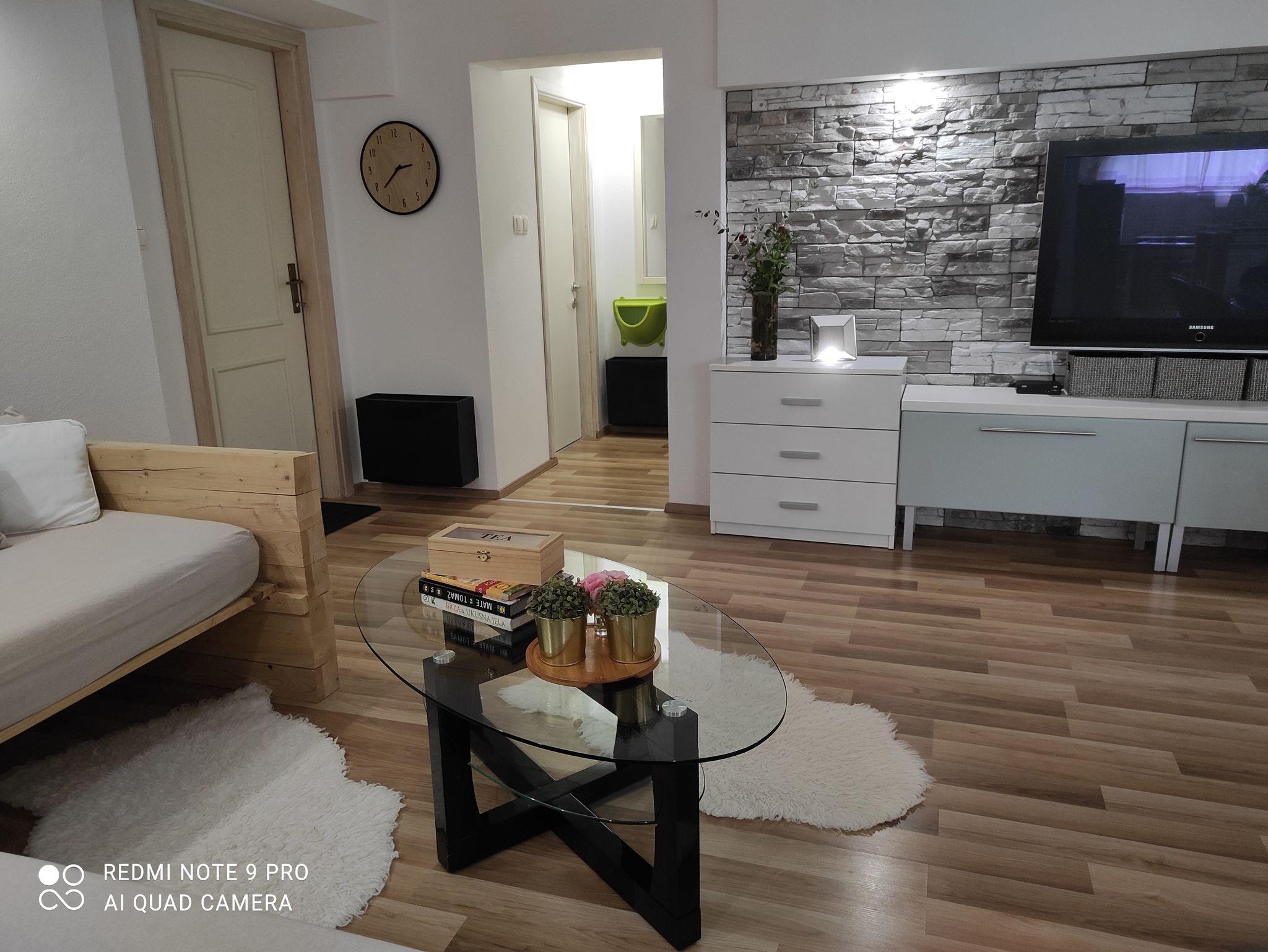 Ferienwohnung bietet Platz für 4 Gäste. Die Betten sind in Schlafzimmern, die es 1 gibt, und in Wohnzimmer, innerhalb einer Gesamtfläche von 56m2, angeordnet. Für vollen Genuss und Entspannung gibt es einen privaten Grill für Gäste dieser Unterkunft. Die reservierte Unterkunftseinheit hat keinen Balkon und keine Terrasse. IM PREIS INBEGRIFFEN: Kurtaxe, Endreinigung, Klimatisierung, Parkplatz, Internet, Wäschewaschen, Kinderbett, Bügeleisen, Bügelbrett, Föhn. VERBINDLICHE ZUSÄTZLICHE KOSTEN: Aufzahlung für Kurzaufenthalte (prozentualer Zuschlag pro Nächtigungsanzahl: 30% - 1, 20% - 2, 10% - 3). Die Verfügbarkeit zusätzlicher Dienstleistungen in Ihrem reservierten Termin und die Preise derselben (falls nicht aufgeführt) müssen im Voraus überprüft werden. Zusätzliche Dienstleistungen die in der Zahlungsaufforderung nicht aufgeführt sind werden direkt beim Vermieter bezahlt, angenommen der Gast nutzt auch diese.