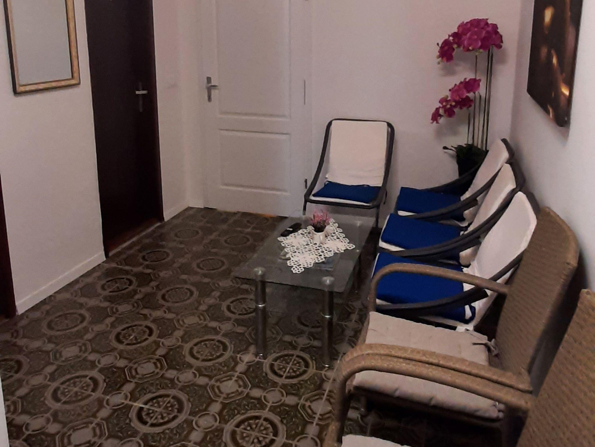 Ferienwohnung bietet Platz für 8 Gäste. Die Betten sind in Schlafzimmern, die es 3 gibt, innerhalb einer Gesamtfläche von 67m2, angeordnet. Die Gäste haben eine eigene Terrasse zur Verfügung, auf der sie in warmen Sommernächten genießen können. Es ist erlaubt, Speisen auf dem Gemeinschafts-Grill vorzubereiten. IM PREIS INBEGRIFFEN: Kurtaxe, Endreinigung, Klimatisierung, Parkplatz, Internet, Bügeleisen, Bügelbrett. VERBINDLICHE ZUSÄTZLICHE KOSTEN: Aufzahlung für Kurzaufenthalte (prozentualer Zuschlag pro Nächtigungsanzahl: 30% - 1, 20% - 2, 10% - 3). Die Verfügbarkeit zusätzlicher Dienstleistungen in Ihrem reservierten Termin und die Preise derselben (falls nicht aufgeführt) müssen im Voraus überprüft werden. Zusätzliche Dienstleistungen die in der Zahlungsaufforderung nicht aufgeführt sind werden direkt beim Vermieter bezahlt, angenommen der Gast nutzt auch diese.