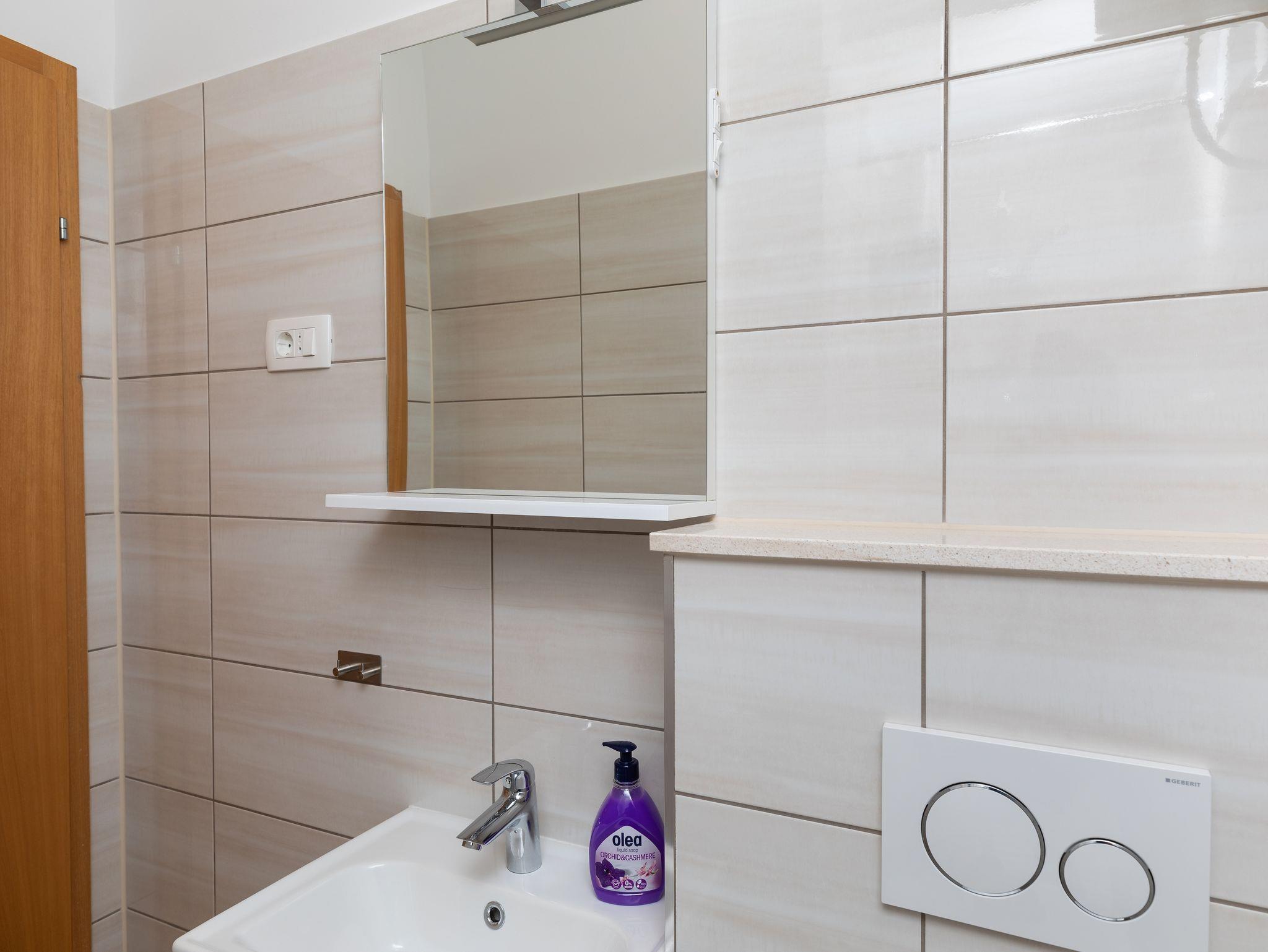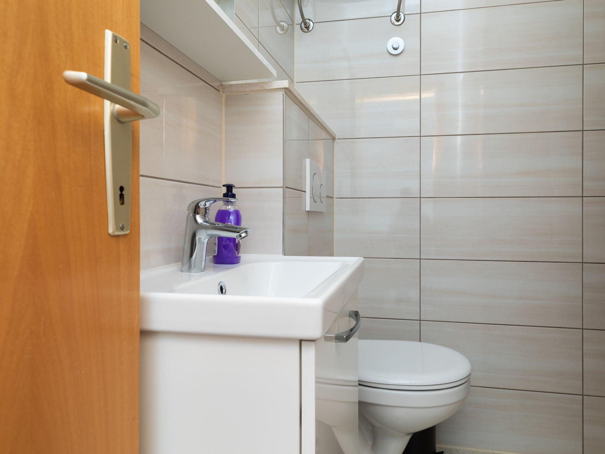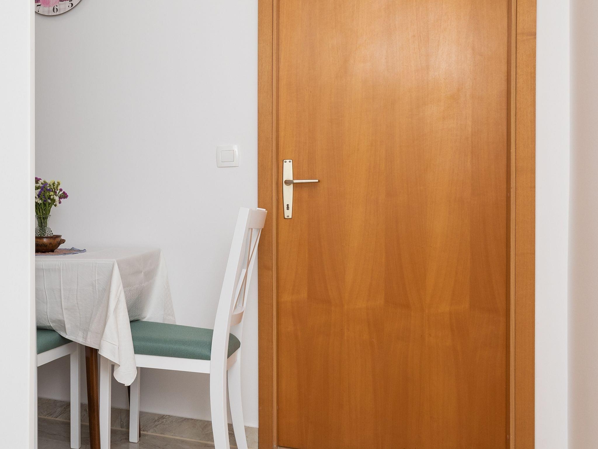 Ferienwohnung bietet Platz für 3 Gäste. Die Betten sind in Schlafzimmern, die es 1 gibt, innerhalb einer Gesamtfläche von 27m2, angeordnet. Die Gäste haben einen eigenen Balkon zur Verfügung, auf der sie in warmen Sommernächten genießen können. Das Apartment bietet Meerblick. Es ist erlaubt, Speisen auf dem Gemeinschafts-Grill vorzubereiten. In der Unterkunftseinheit besteht die Möglichkeit des Mitbringens von Haustieren gegen Aufpreis. IM PREIS INBEGRIFFEN: Kurtaxe, Endreinigung, Klimatisierung, Parkplatz, Internet. VERBINDLICHE ZUSÄTZLICHE KOSTEN: Aufzahlung für Kurzaufenthalte (prozentualer Zuschlag pro Nächtigungsanzahl: 30% - 1, 20% - 2, 10% - 3). UNVERBINDLICHE ZUSÄTZLICHE KOSTEN: Haustiere (8,00 € pro Nacht). Die Verfügbarkeit zusätzlicher Dienstleistungen in Ihrem reservierten Termin und die Preise derselben (falls nicht aufgeführt) müssen im Voraus überprüft werden. Zusätzliche Dienstleistungen die in der Zahlungsaufforderung nicht aufgeführt sind werden direkt beim Vermieter bezahlt, angenommen der Gast nutzt auch diese.