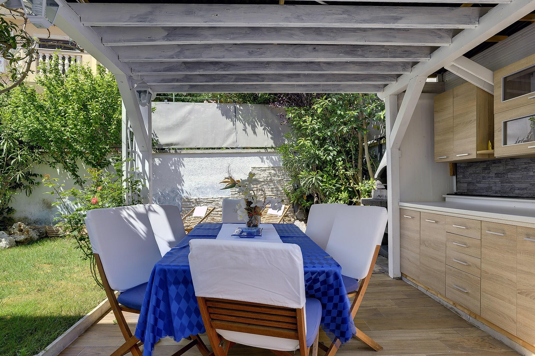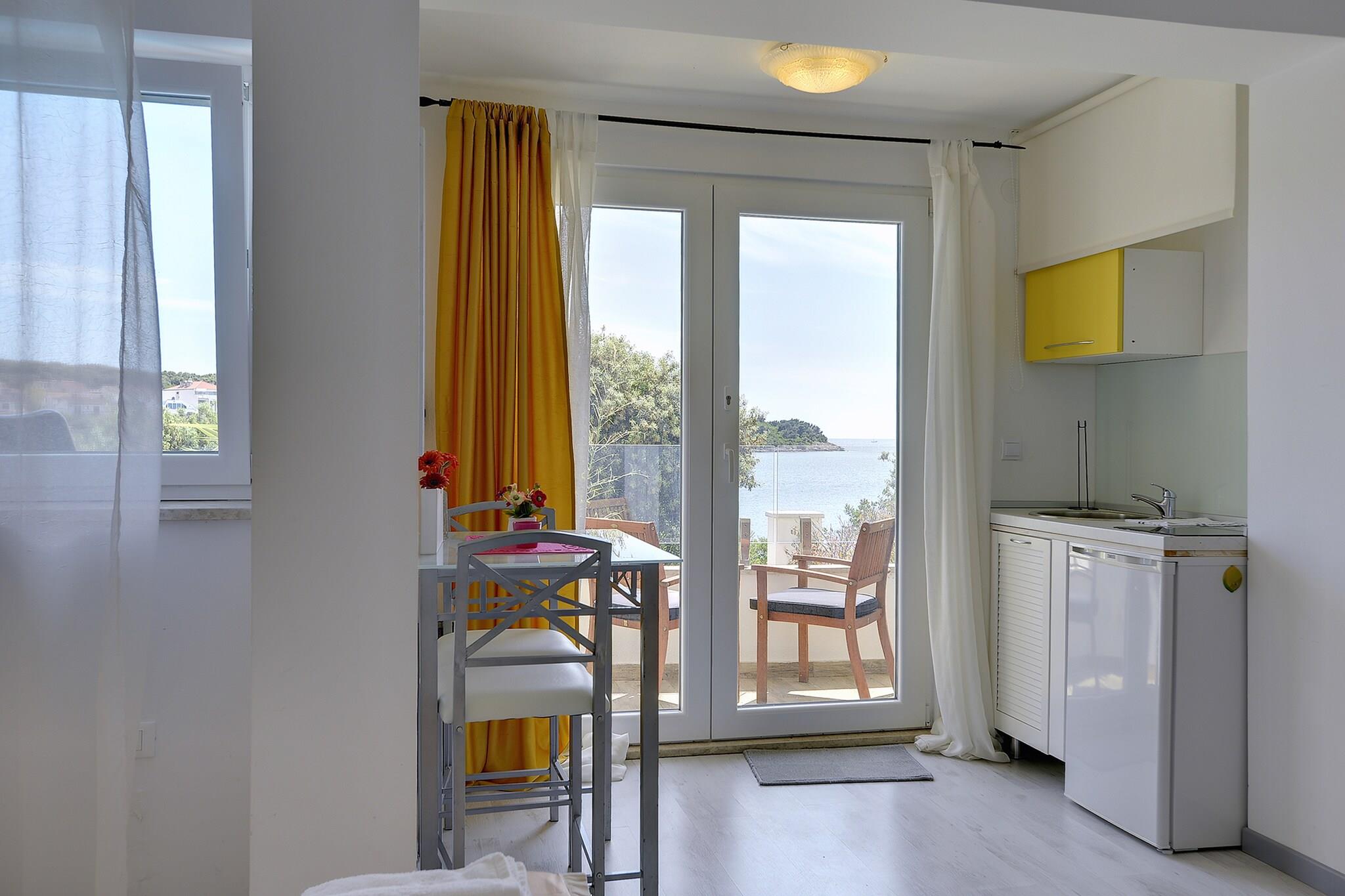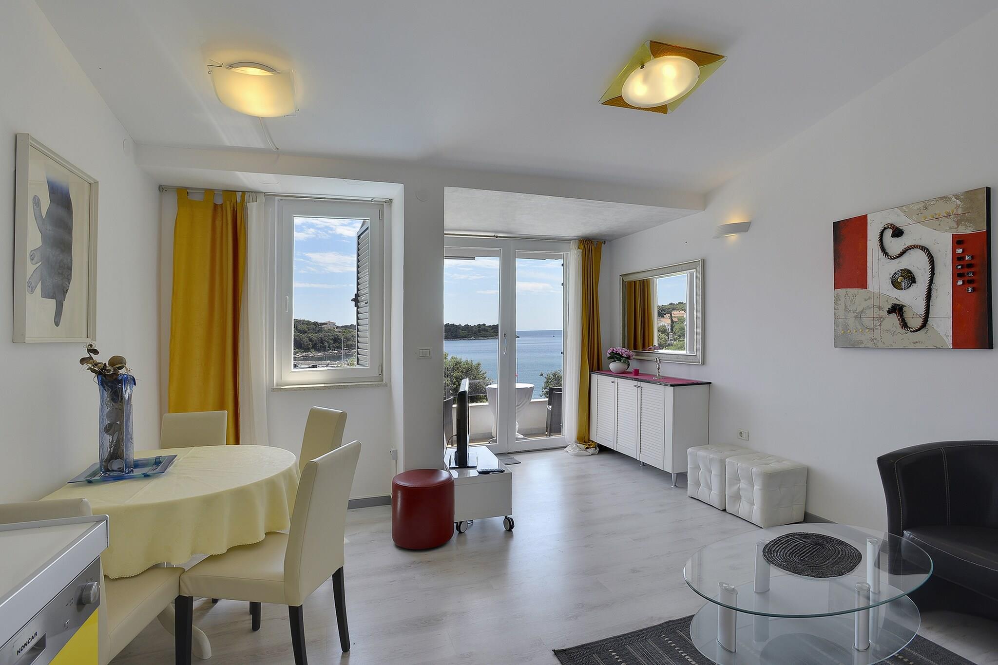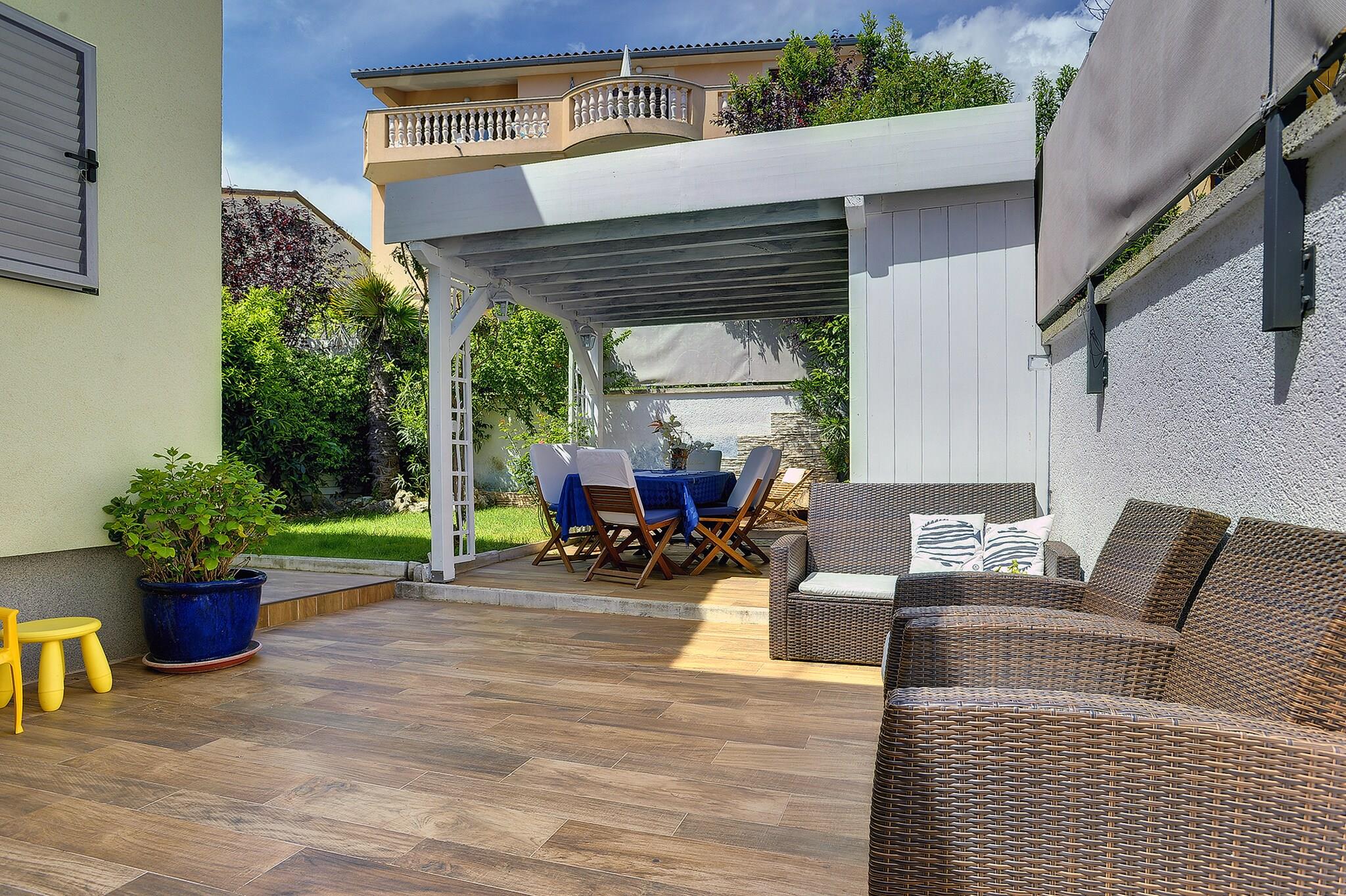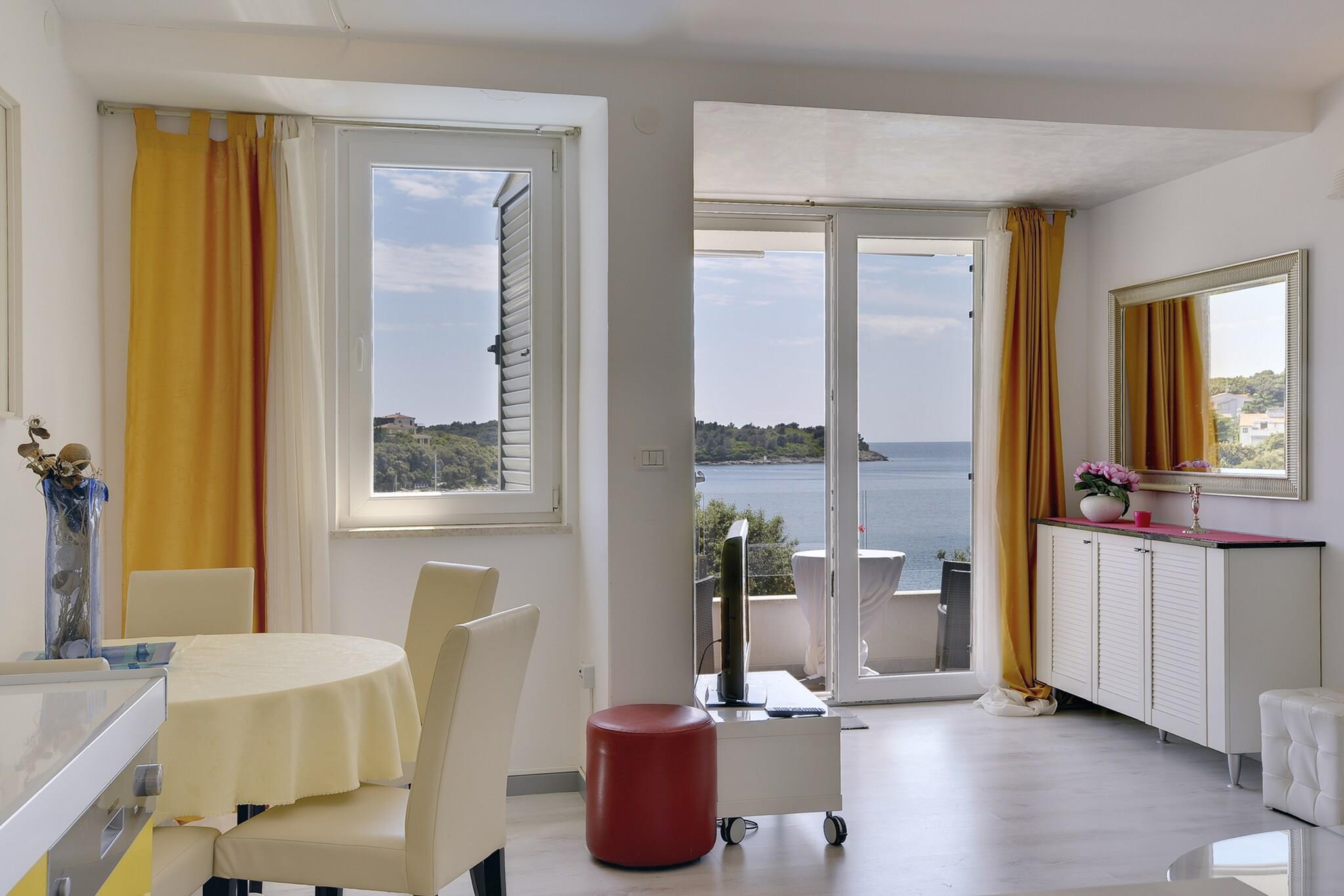 Hvilken fantastisk beliggenhed! Du vil gerne bo her permanent! Fra terrassen ser du ud over havet, det er kun få skridt til stranden, havet er kun 40 meter væk. Har du lyst til at svømme i havet? Der er også en swimmingpool, hvor du kan køle ned. Haven har en grill og et sommer køkken. Villaen består af tre etager, der er plads til syv personer. Der er tre soveværelser og tre badeværelser. Alle værelser har aircondition. Villa Bonelli ligger i nærheden af Pula. Det historiske centrum af Pula har flere meget interessante monumenter som amfiteateret og der er nogle gode restauranter og butikker. Derudover anbefales byer som Porec (51 km) og Rovinj (30 km), og en cykeltur gennem Istriens smukke interiør bør bestemt ikke springes over.