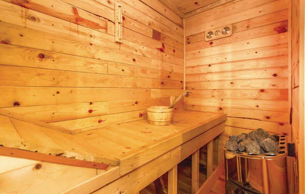 Huset rummer tre soveværelser (laveste loftshøjde 100 cm), køkken, stue, to badeværelser, to balkoner, med adgang fra soveværelserne, store terrasse og en dejlig indendørs svømmehal. Haven er ualmindelig stor, her kan I både være aktive og slappe af uden at genere hinanden, ligesom der er udsigt over den indendørs pool herfra. Der er også sauna og to cykler, som I kan bruge til ekspeditioner i lokalområdet, ja, I kan også cykle til havet.