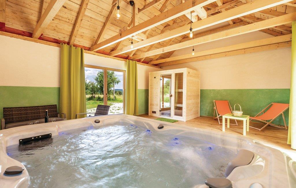 Hvis I ønsker at tilbringe jers ferie i den uspolerede natur, så er dette det helt rigtige sted. Dette smukke feriehus ligger på bakken ovenfor Plasko. Huset blev bygget tro mod den gamle landlige byggestil, med hovedbygningen, lade, og udhuse liggende omkring en indre gårdsplads. I dag er der en rummelig opholdsstue med pejs og køkken i stueetagen af hovedbygningen. På første sal er der soveværelser, mens der i nabohuset er mini-spa med jacuzzi og en sauna (Brug efter aftale). Ved laden er der en stor, overdækket terrasse, hvor I kan tilberede og nyde velsmagende grillspecialiteter i hinandens selskab. Omkring ejendommen er der grønne enge og lunde, hvor børnene kan lege sikkert og uforstyrret. Beliggenheden ved Plasko gør at man hurtigt kan nå kysten og dens byer. For eksempel Zagreb, der har masser af seværdigheder, restauranter, kulturelle tilbud og mange andre former for underholdning.