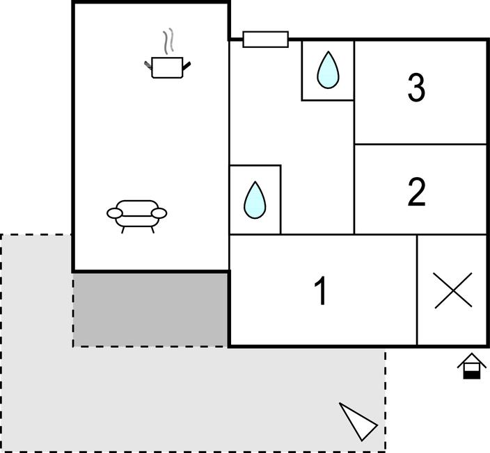 Toilet 3m2 (nr. 1) - WC. Varmt og koldt vand
