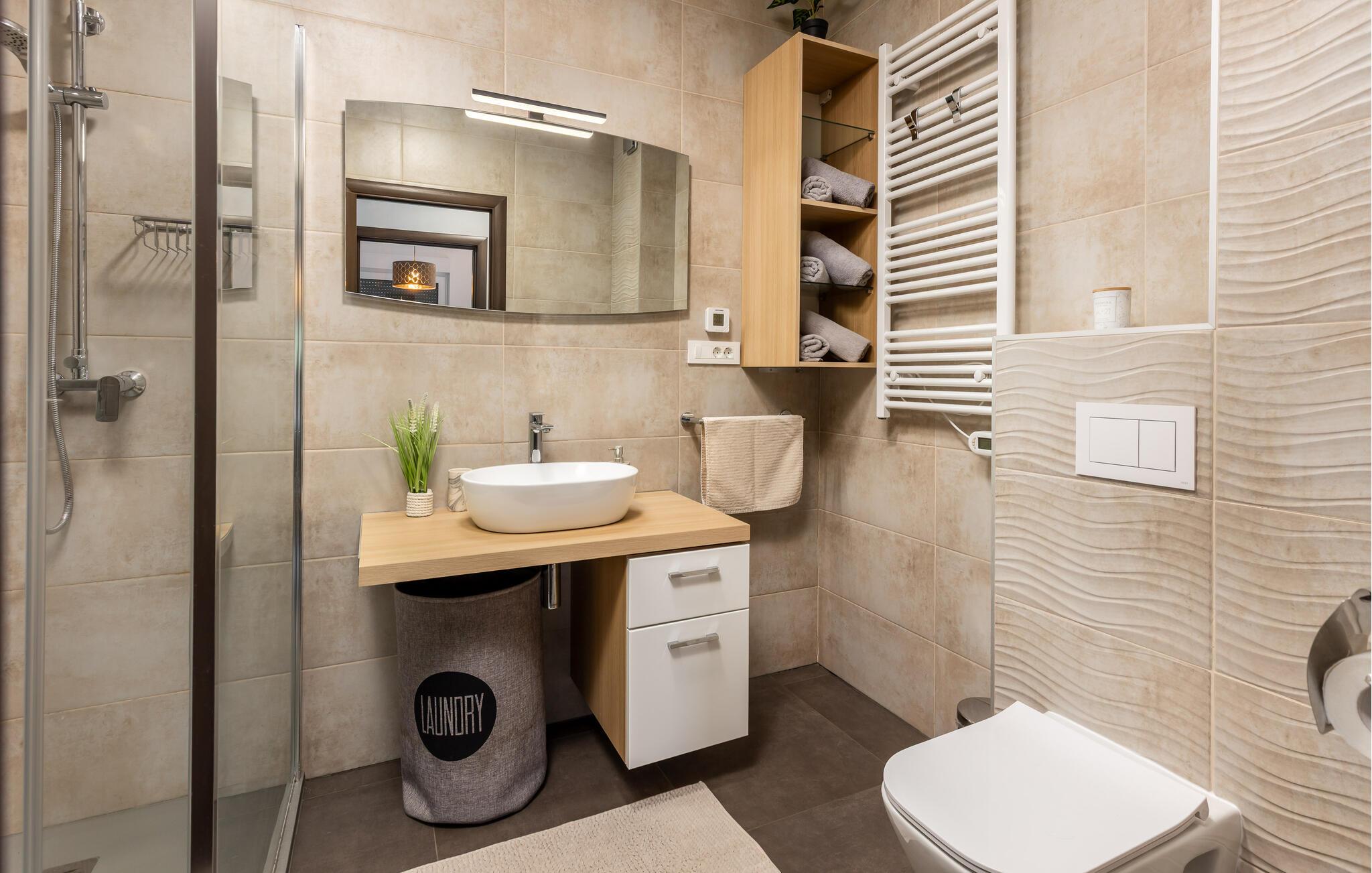 Badeværelse 5m2 (nr. 1) - WC. Varmt og koldt vand. Bruser