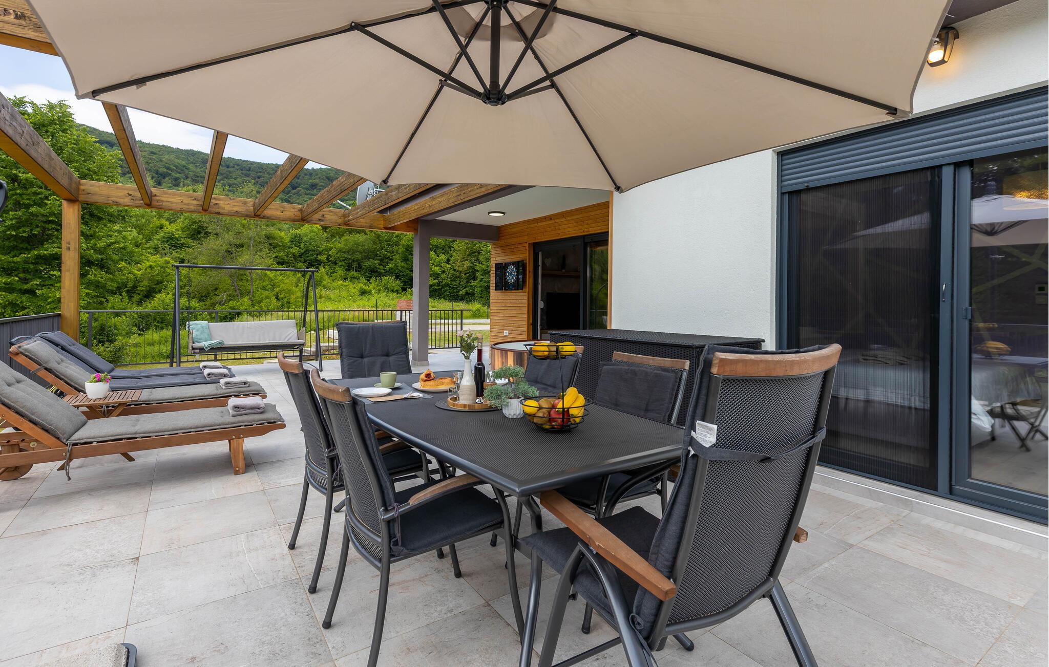 Det moderne hus med smagfulde værelser, indbydende dekor og behagelige farver byder velkommen i smukke naturomgivelser og befinder sig i relativ kort afstand til Plitvice Lakes National Park. Stuen bliver hurtigt centrum for fælles aktiviteter. Mens I slapper af i sofaen, kan I lægge planer for de kommende dage og nyde den smukke udsigt over haven, mens I spiser sammen ved det lange spisebord. Tilbring mange timer i den dejlige have. Uanset om det er en lille lur i hængesofaen, afslappende solbadning på en liggestol eller en hyggelig aften i det udendørs spabad, har I alle muligheder her.