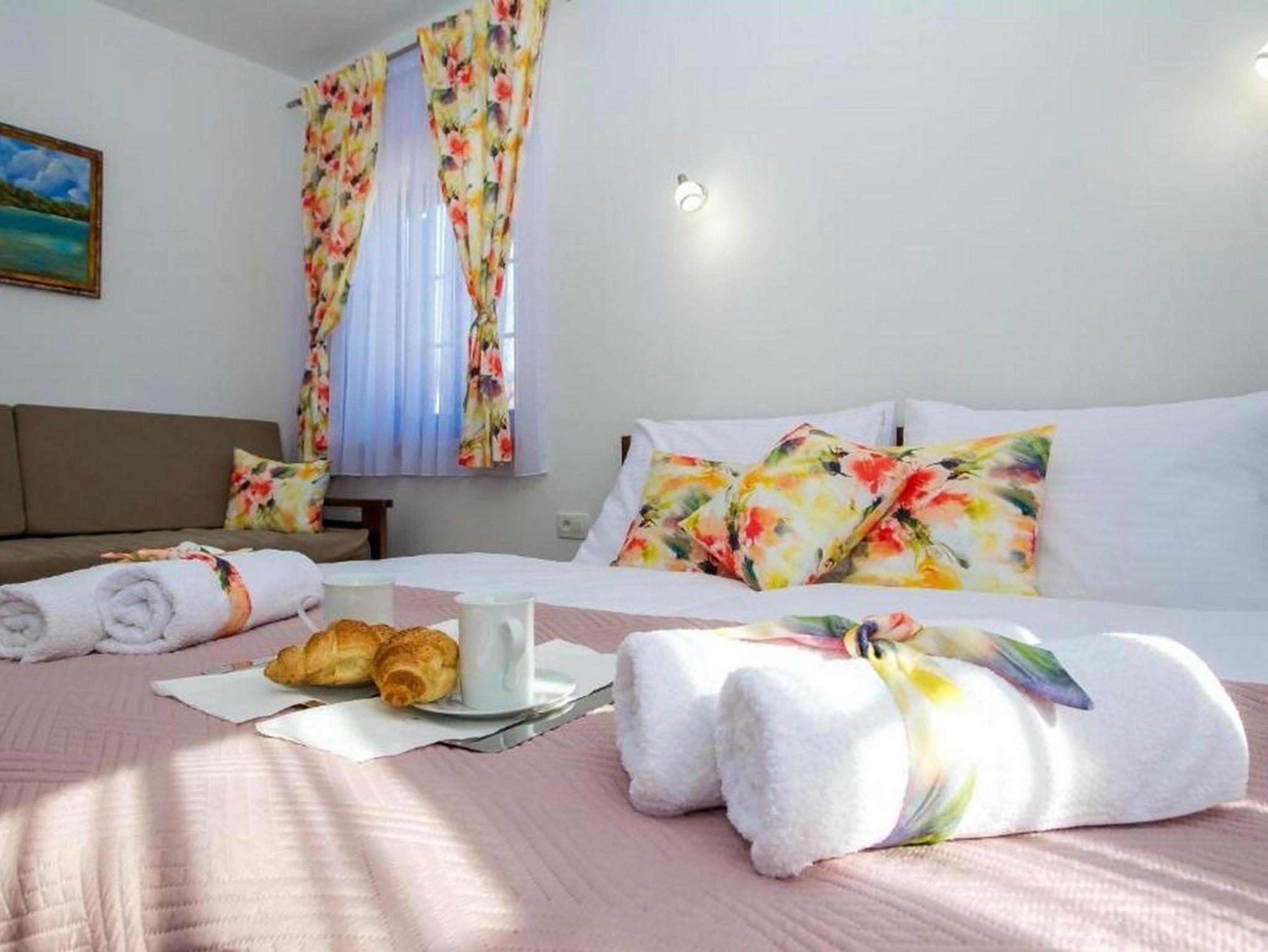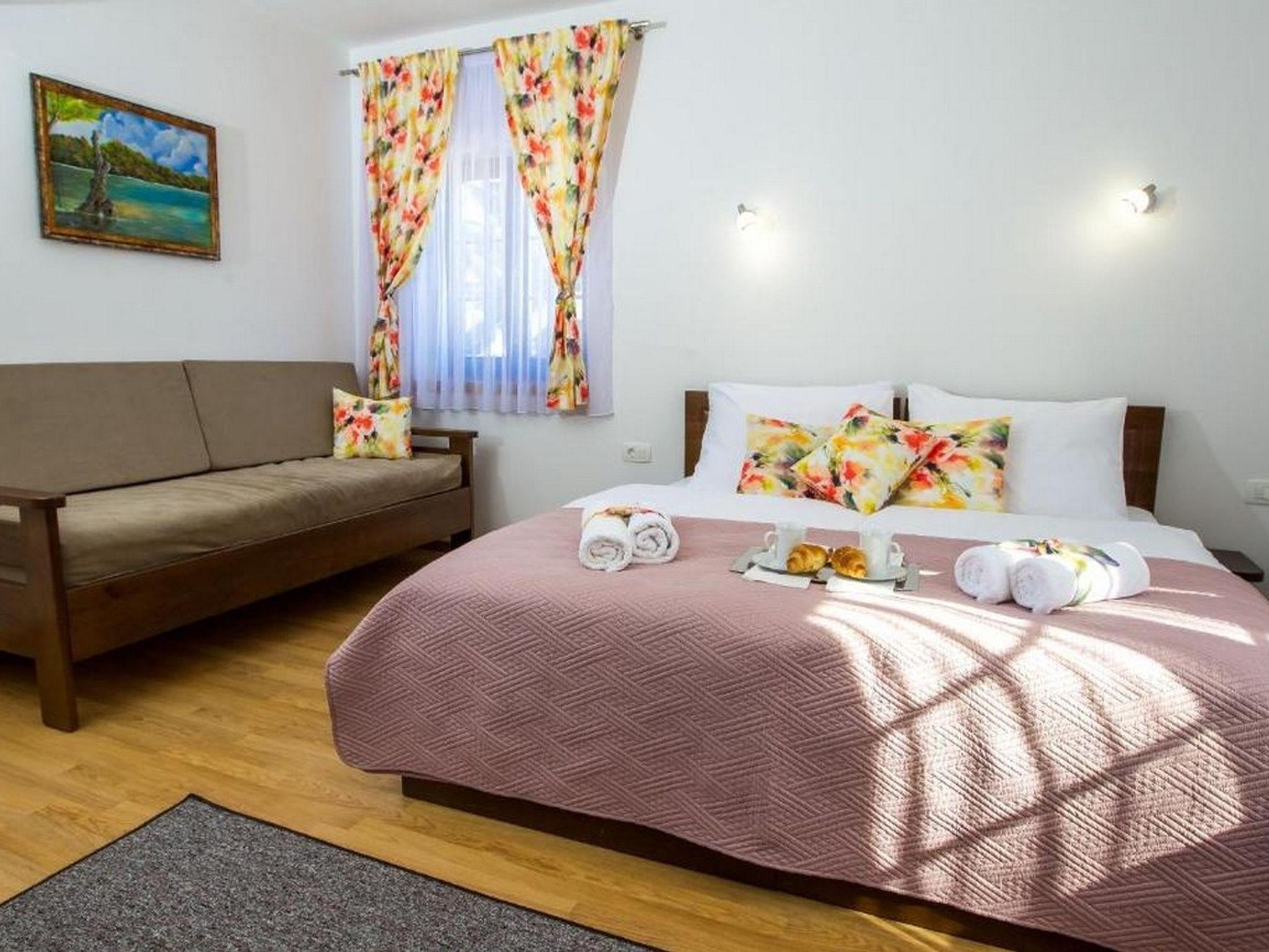 Zimmer bietet Platz für 3 Gäste. Die Betten sind in Schlafzimmern, die es 1 gibt, innerhalb einer Gesamtfläche von 24m2, angeordnet. Die reservierte Unterkunftseinheit hat keinen Balkon und keine Terrasse. Die reservierte Unterkunftseinheit ist ein Zimmer mit eigenem Badezimmer ohne die Möglichkeit der Nutzung einer Küche. IM PREIS INBEGRIFFEN: Kurtaxe, Endreinigung, Klimatisierung, Zentralheizung, Parkplatz, Internet, Föhn. UNVERBINDLICHE ZUSÄTZLICHE KOSTEN: Frühstück (10,00 €, 50% Nachlass für Kinder zwischen 4 und 12 Jahren, Kinder bis 4 Jahre sind frei.). Die Verfügbarkeit zusätzlicher Dienstleistungen in Ihrem reservierten Termin und die Preise derselben (falls nicht aufgeführt) müssen im Voraus überprüft werden. Zusätzliche Dienstleistungen die in der Zahlungsaufforderung nicht aufgeführt sind werden direkt beim Vermieter bezahlt, angenommen der Gast nutzt auch diese.