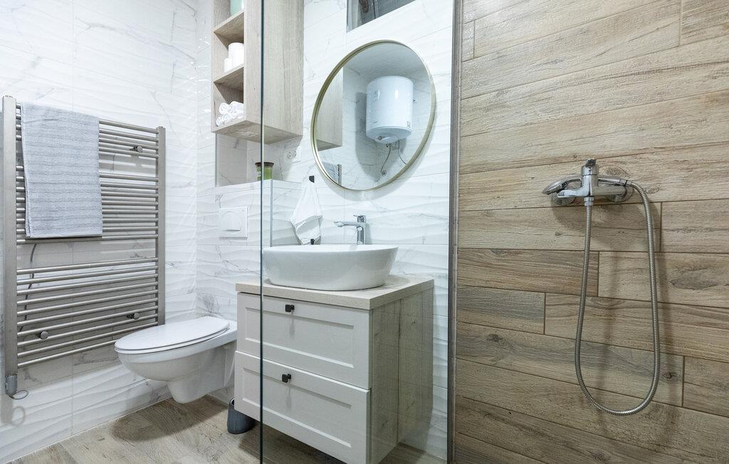 Badeværelse 4m2 (nr. 1) - WC. Varmt og koldt vand. Håndbruser