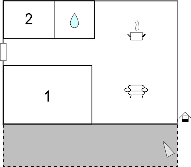 Opholdsstue/køkken 26m2 - 1 Soveplads. (Sofa, madras eller lignende).