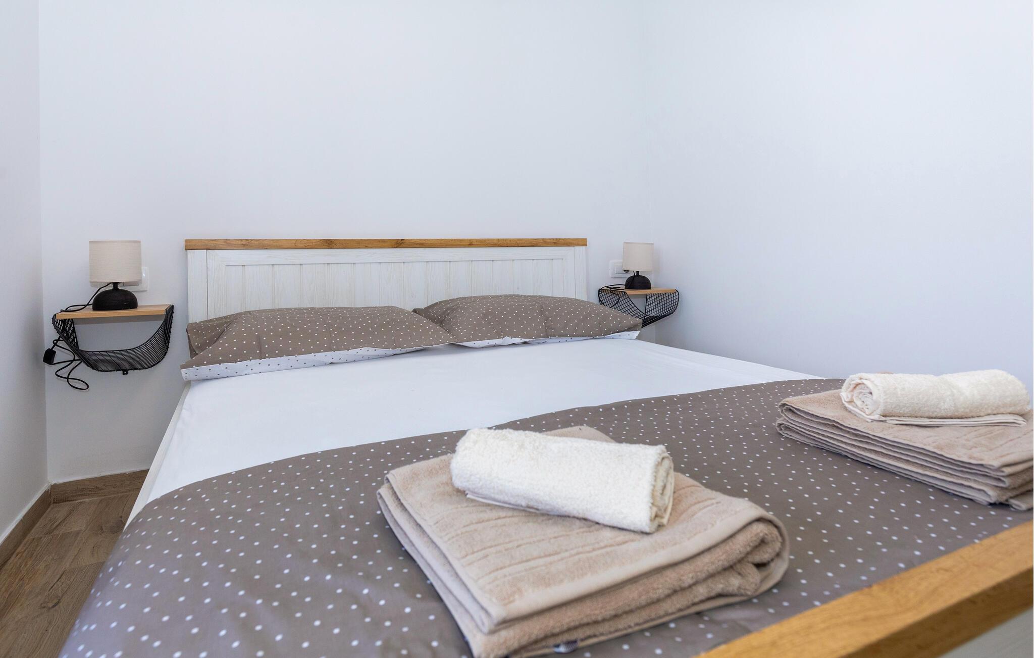 Rejs til det sydlige Kroatien med familien og flyt ind i denne lejlighed, der er en herlig base for en ferie med masser af sol, strand og vand. Trods sin beskedne størrelse er boligen kompakt og nydeligt indrettet med alt, I behøver til at kunne slappe af før, mellem og efter jeres udflugter. Køkkenet er fint udstyret, og her kan I lave noget god mad og nyde maden ved spisebordet, inden I smækker fødderne op i sofaen og smider en god film på tv'et.