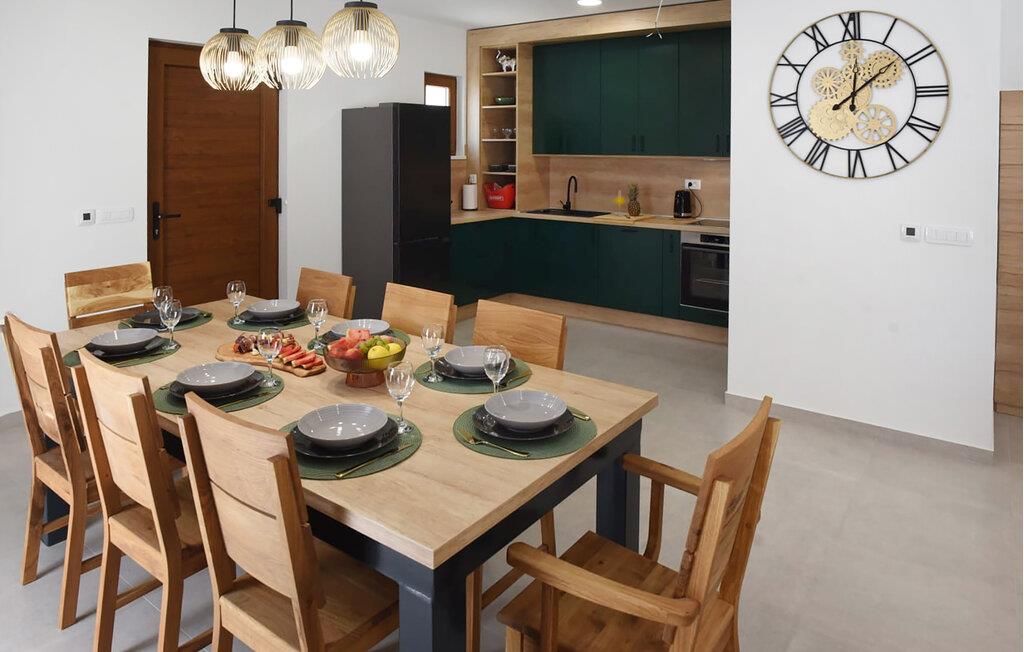 Dette rummelige feriehus er noget særligt med masser af plads til en gruppe eller flere familier, en stilfuld indretning og talrige ekstraudstyr til store og små. Hold hyggelige madlavningsaftener i det åbne, moderne køkken og tag plads ved det lange spisebord. Udfordr jer selv ved bordfodboldbordet eller gør jer godt tilpas i den hyggelige sofa og stream en god serie.