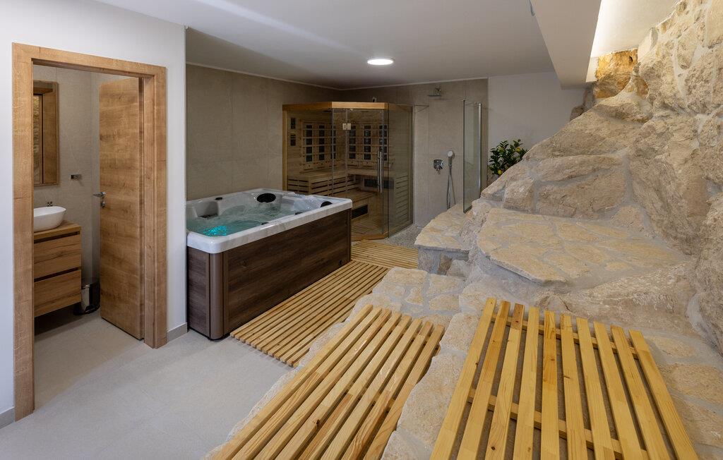 Denne moderne og luksuriøst møblerede villa forkæler jer med adskillige ekstrafunktioner, der vil gøre en hyggelig ferie til en uforglemmelig oplevelse. Mens andre nyder poolbordet eller darttavlen, slapper af i saunaen eller spabadet. Glæd jer til hyggelige madlavningsaftener og Find sammen til hyggelige tv-aftener i den elegante stue.