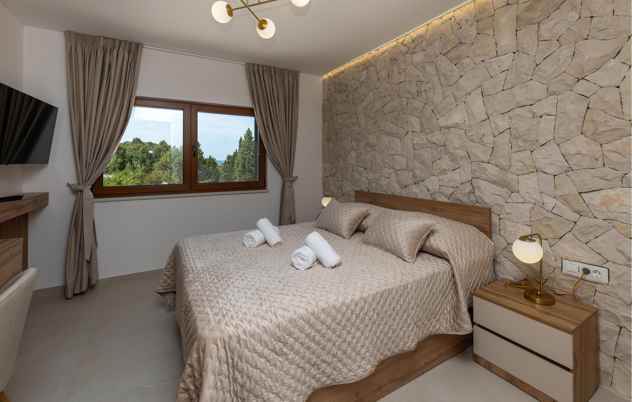 Forkæl jer selv med en drømmeferie i dette rummelige feriehus med pool, wellness-oase og havudsigt.