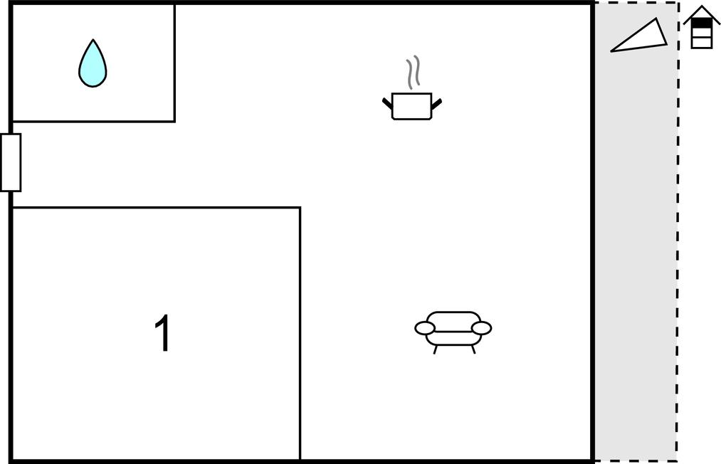 Opholdsstue/køkken - 1 Soveplads. (Sofa, madras eller lignende).