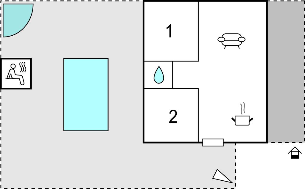 Opholdsstue/køkken - 2 Sovepladser. (Sofa, madras eller lignende).