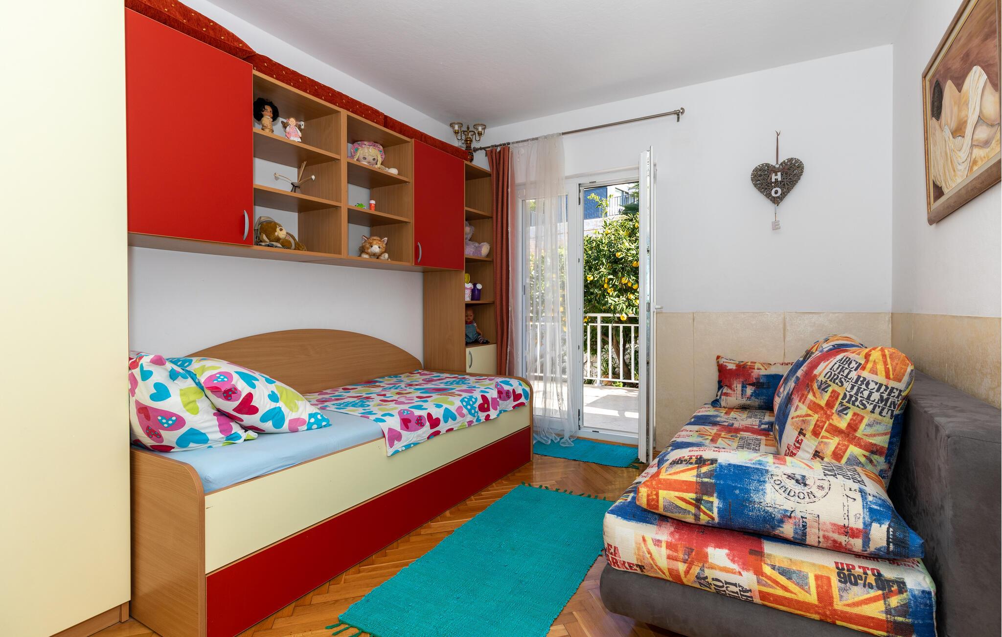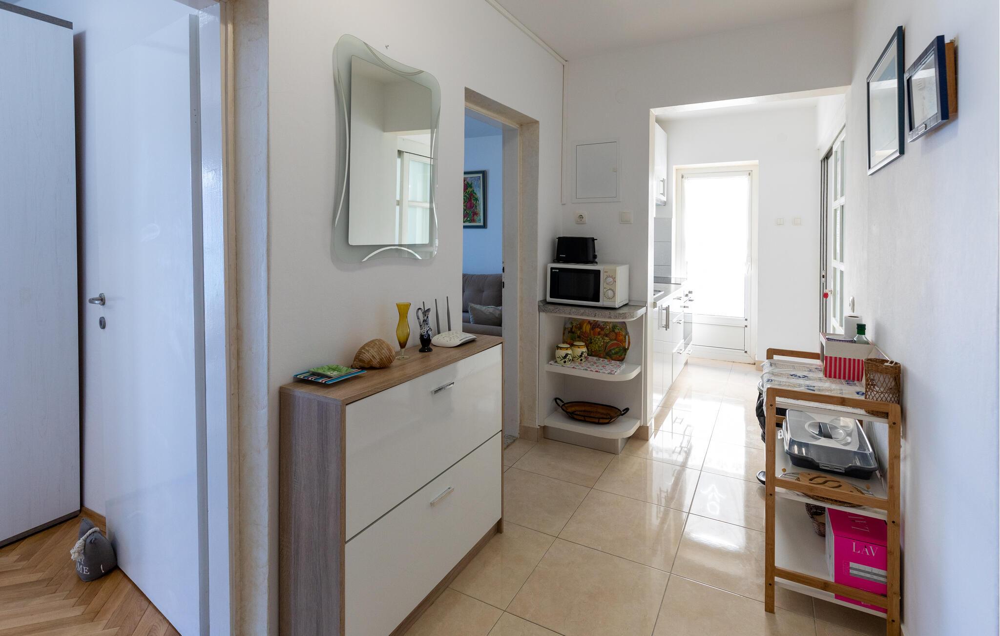 nogle få skridt fra Adriaterhavets klare vand kan I hygge jer med familien i denne charmerende ferielejlighed. Tilbered middelhavsretter og planlæg jeres aktiviteter over hyggelige måltider i den lyse spisestue. Afslut en lang dag i den kroatiske sol med en spilleaften eller en afslappende bog på den rummelige sofa.