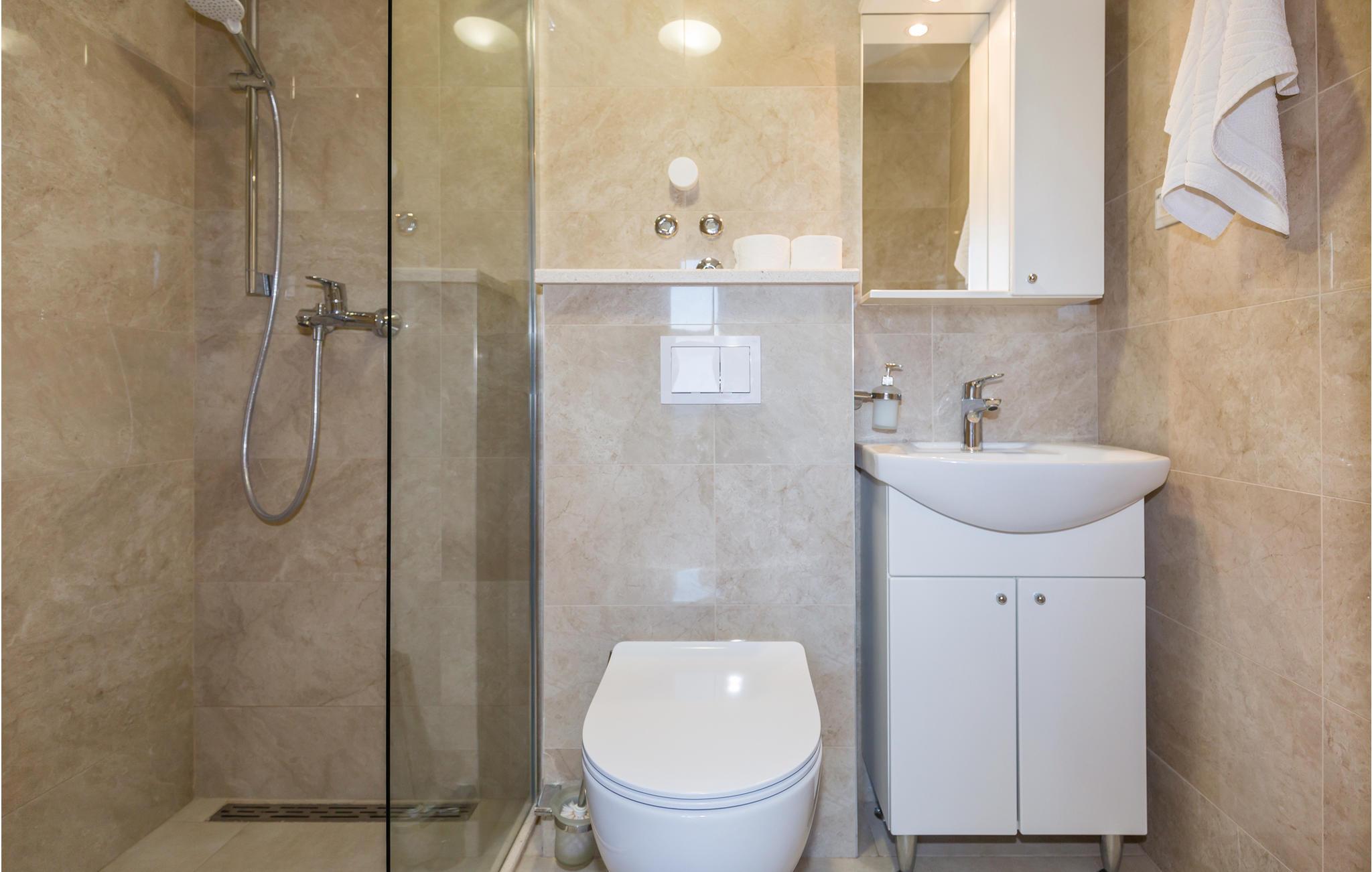 Badeværelse (nr. 1) - WC. Varmt og koldt vand. Bruser