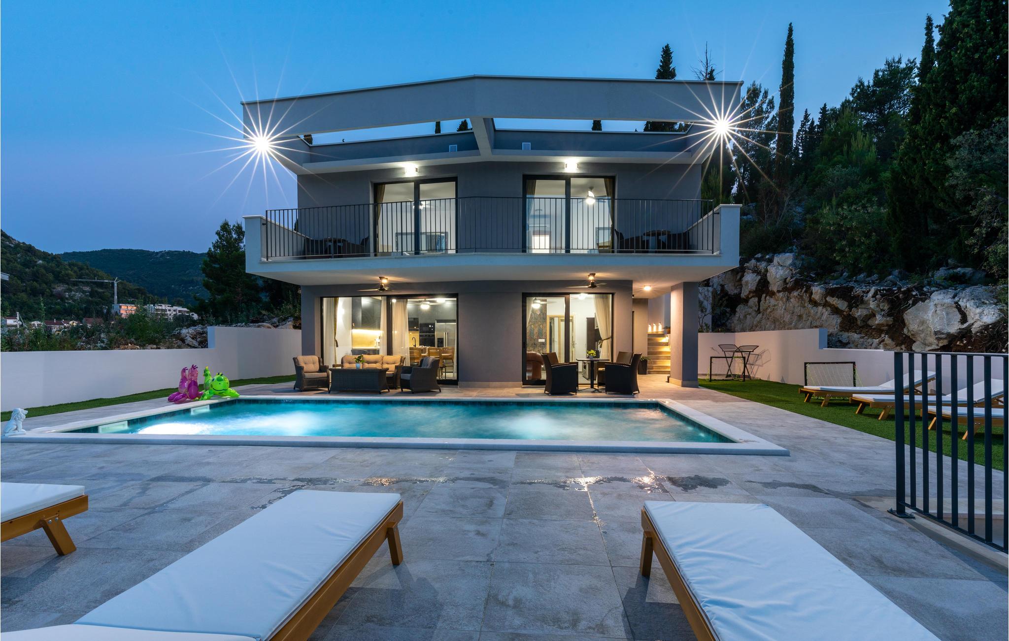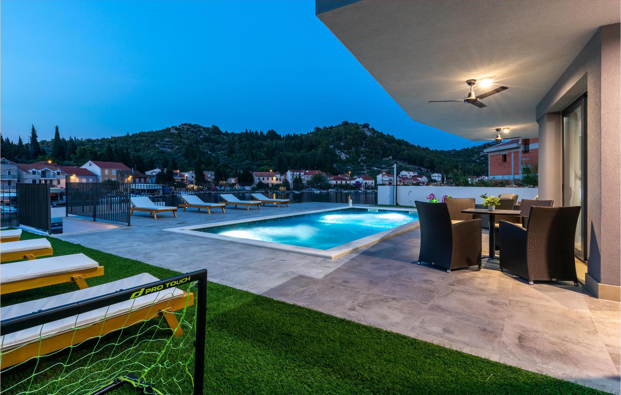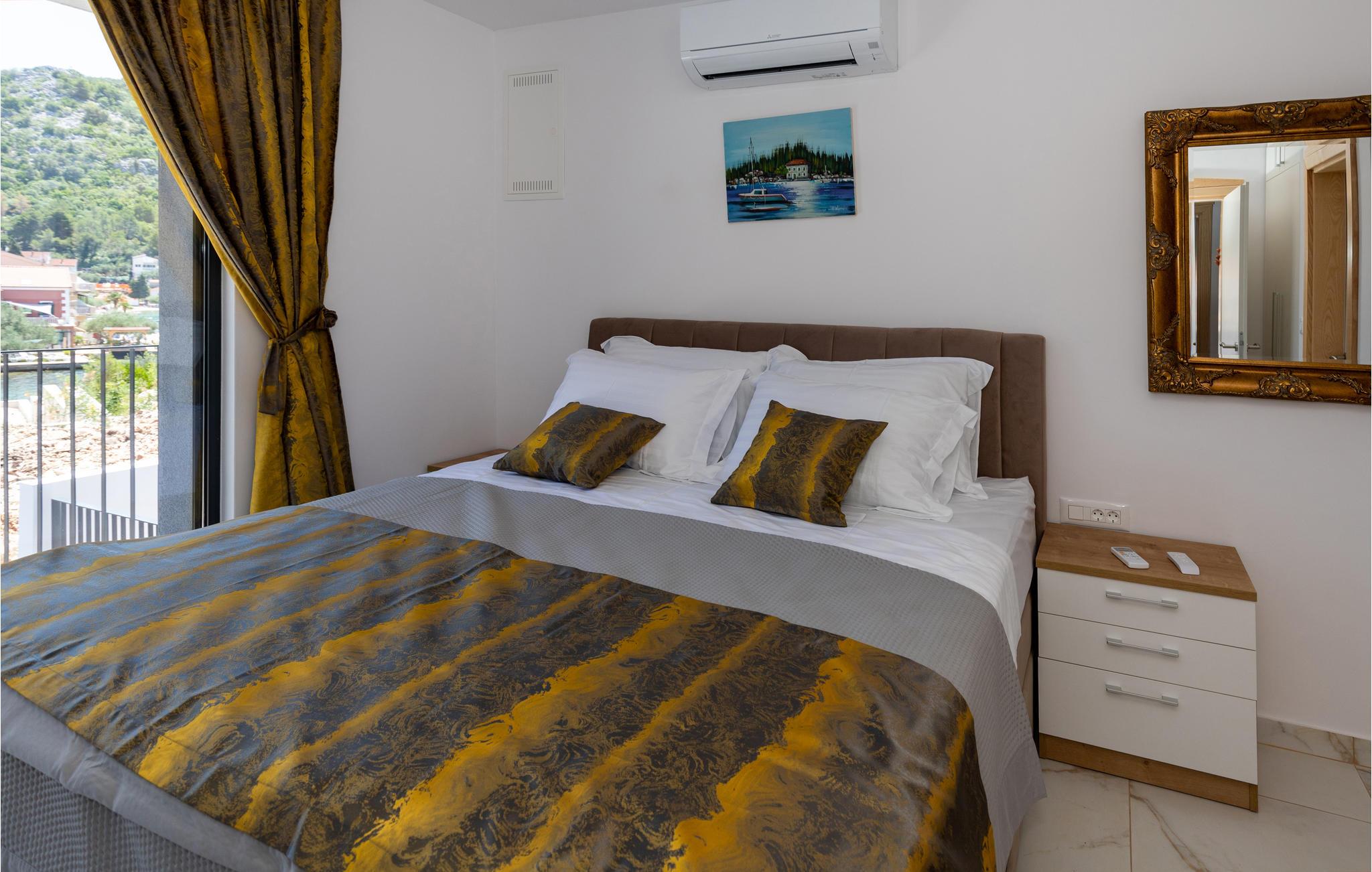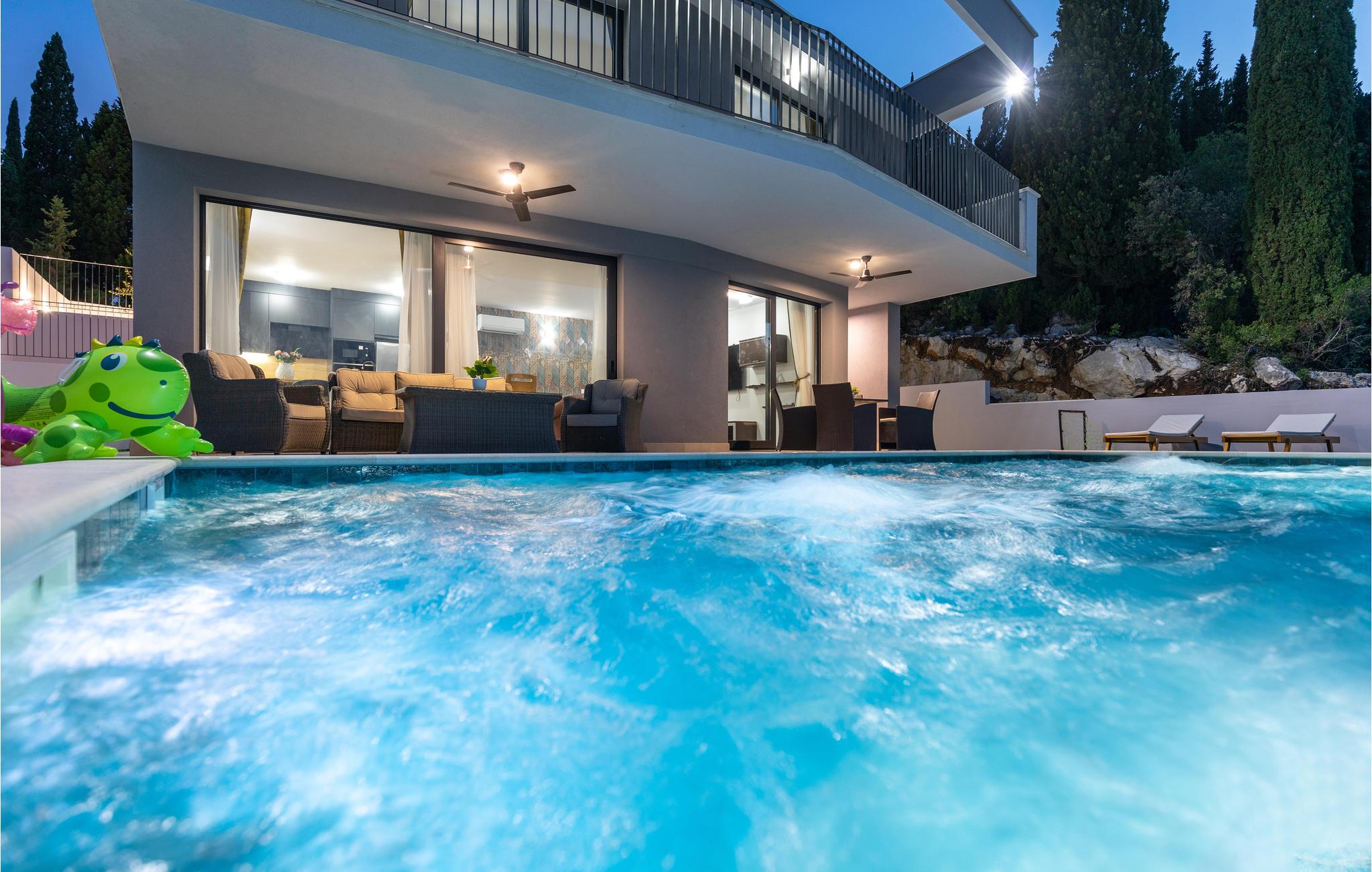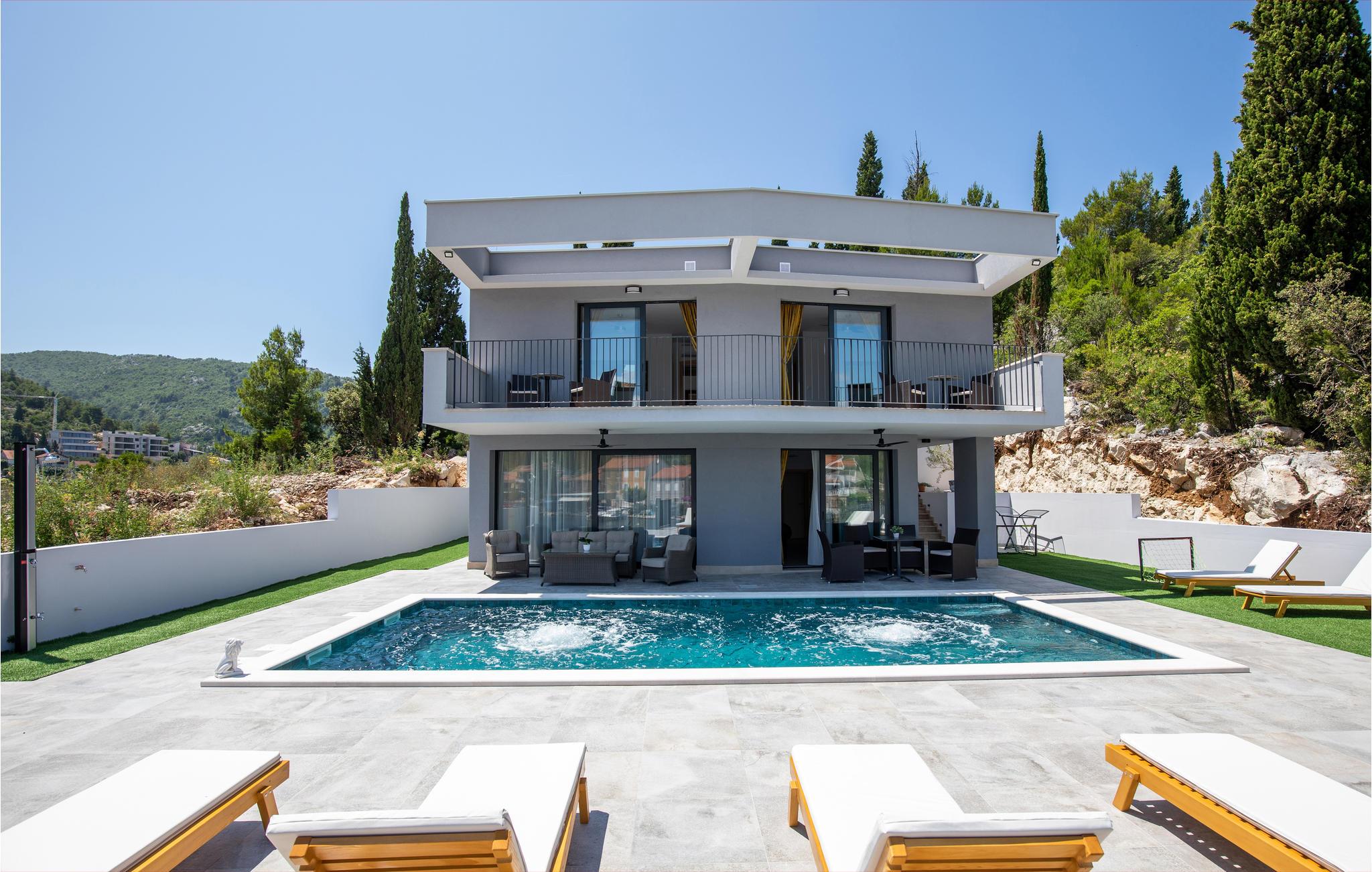 Tilbring en dejlig ferie i dette attraktive feriehus med pool nær havet. Velkommen til dette attraktive og komfortable hus, der tilbyder dig alle de faciliteter, du har brug for til din ferie. Nyd en uforglemmelig tid med familien i huset, som imponerer med sin smagfulde indretning og store panoramavinduer. Tilbring hyggelige aftener her med spil og gode samtaler ved det lange spisebord eller på de indbydende sofaer. Omkring huset er der talrige muligheder for at tilbringe dejlige timer udendørs. Uanset om du nyder udsigten og en kop kaffe på altanen, læser en bog i skyggen på en af terrasserne eller tager sol ved poolen, er du sikker på at slappe af på ferien. Du kan nemt nå den smukke sandstrand til fods. Du kan nyde det krystalklare hav i afsondrede bugter og på små strande. Slap af i det maleriske naturscenarie mellem fyrreskove, floder, havet og imponerende klippeformationer. Den nærliggende Dubrovnik eller Peljesac-halvøen med sine berømte vinmarker samt øen Korcula, kendt som hjemsted for opdagelsesrejsende Marco Polo, er velegnede til længere ture. I nord finder du Mostar med den Unesco-beskyttede bro, pilgrimsrejsestedet Medjugorje og øerne Hvar og Brac. Glæd dig til en mindeværdig ferie i det sydlige Dalmatien.