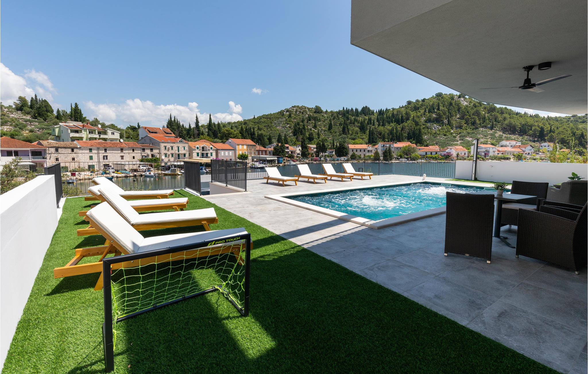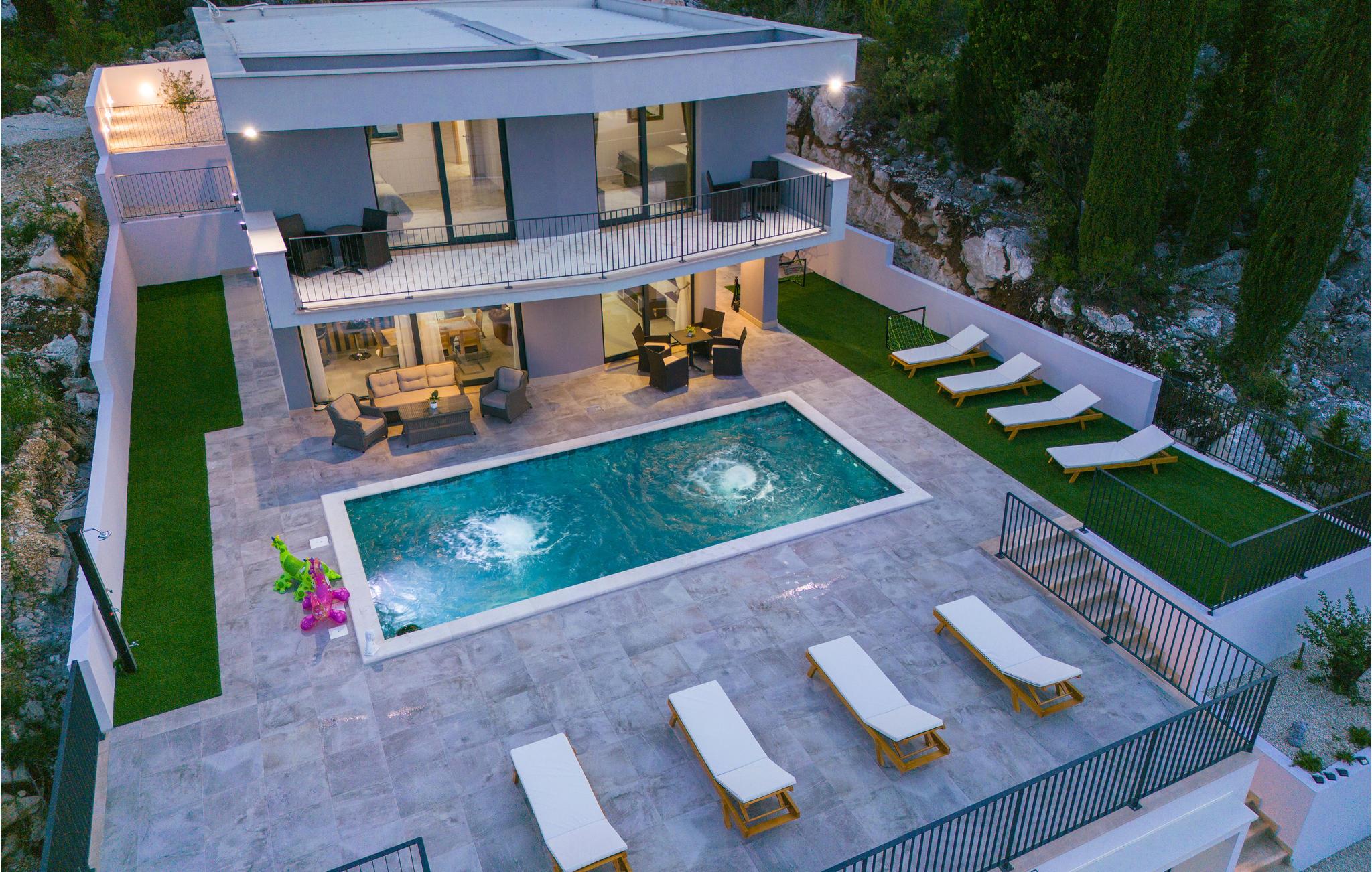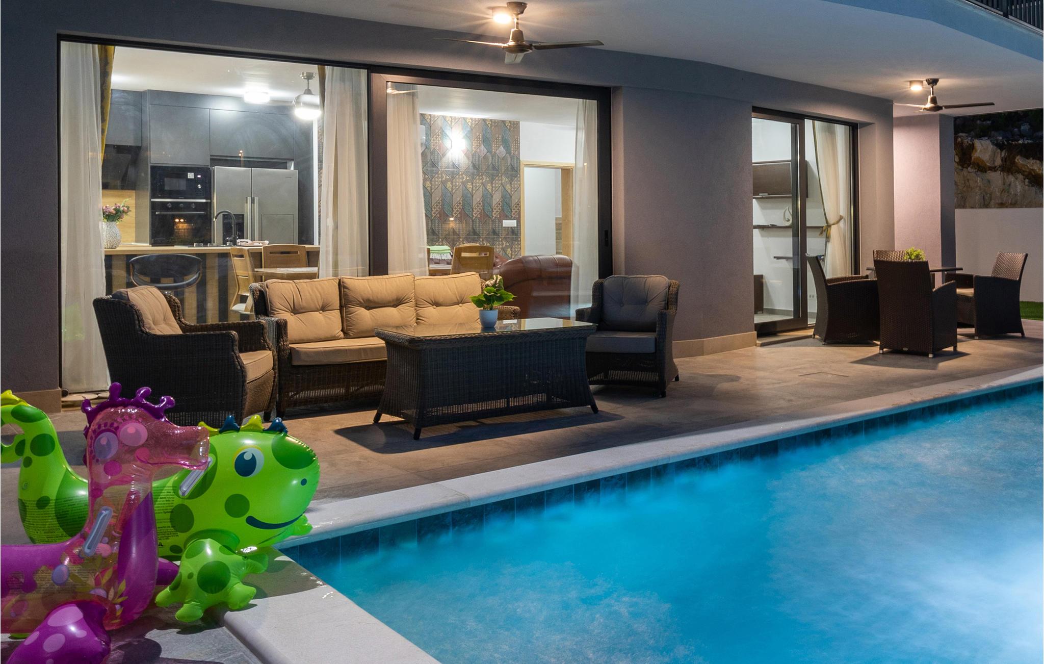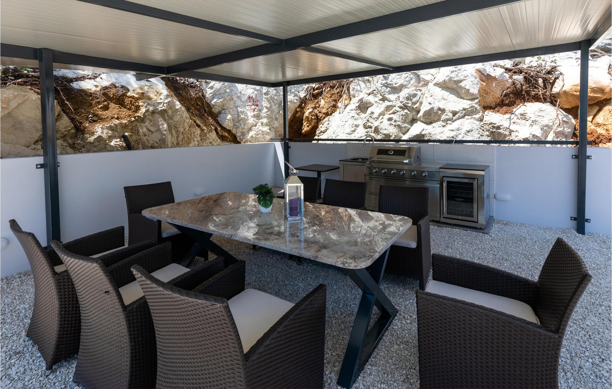 Tilbring en dejlig ferie i dette attraktive feriehus med pool nær havet. Velkommen til dette attraktive og komfortable hus, der tilbyder dig alle de faciliteter, du har brug for til din ferie. Nyd en uforglemmelig tid med familien i huset, som imponerer med sin smagfulde indretning og store panoramavinduer. Tilbring hyggelige aftener her med spil og gode samtaler ved det lange spisebord eller på de indbydende sofaer. Omkring huset er der talrige muligheder for at tilbringe dejlige timer udendørs. Uanset om du nyder udsigten og en kop kaffe på altanen, læser en bog i skyggen på en af terrasserne eller tager sol ved poolen, er du sikker på at slappe af på ferien. Du kan nemt nå den smukke sandstrand til fods. Du kan nyde det krystalklare hav i afsondrede bugter og på små strande. Slap af i det maleriske naturscenarie mellem fyrreskove, floder, havet og imponerende klippeformationer. Den nærliggende Dubrovnik eller Peljesac-halvøen med sine berømte vinmarker samt øen Korcula, kendt som hjemsted for opdagelsesrejsende Marco Polo, er velegnede til længere ture. I nord finder du Mostar med den Unesco-beskyttede bro, pilgrimsrejsestedet Medjugorje og øerne Hvar og Brac. Glæd dig til en mindeværdig ferie i det sydlige Dalmatien.