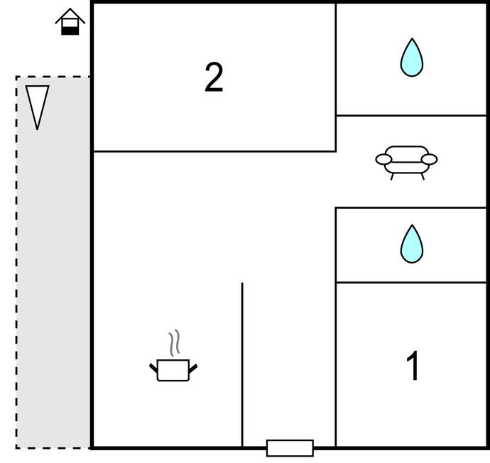 Opholdsstue/køkken - 2 Sovepladser. (Sofa, madras eller lignende).
