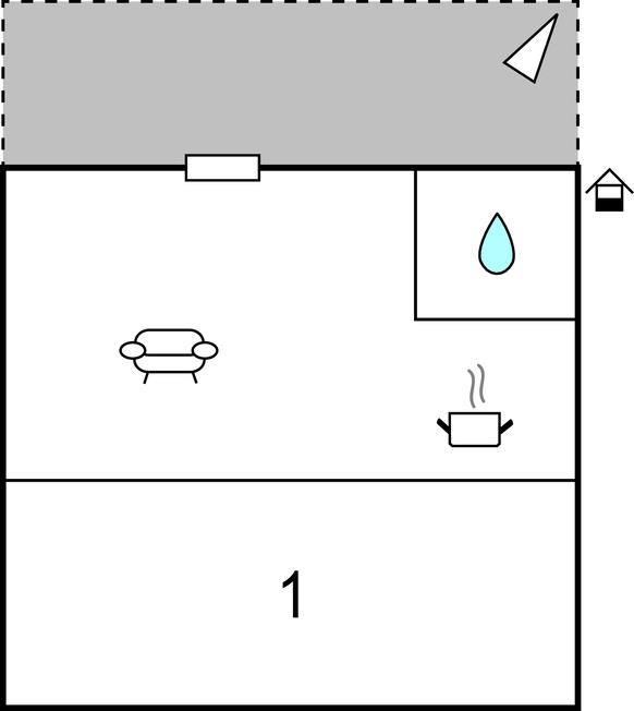 Opholdsstue/køkken - 2 Sovepladser. (Sofa, madras eller lignende).