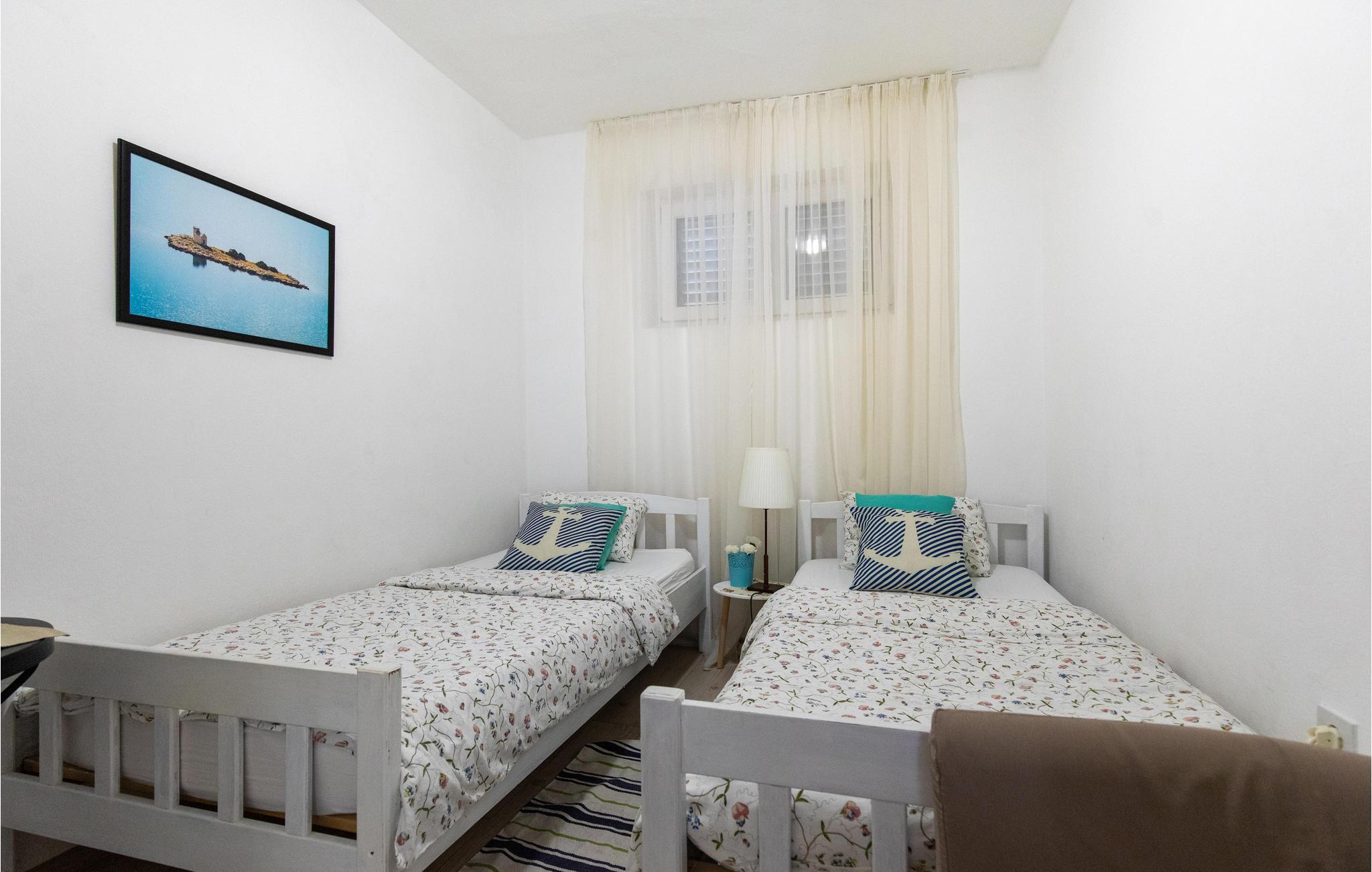 Denne lejlighed ligger tæt ved havet, så her har I et ideelt sted til en afslappende ferie. Boligen består af en stue med køkken og spiseplads samt to soveværelser og et badeværelse.