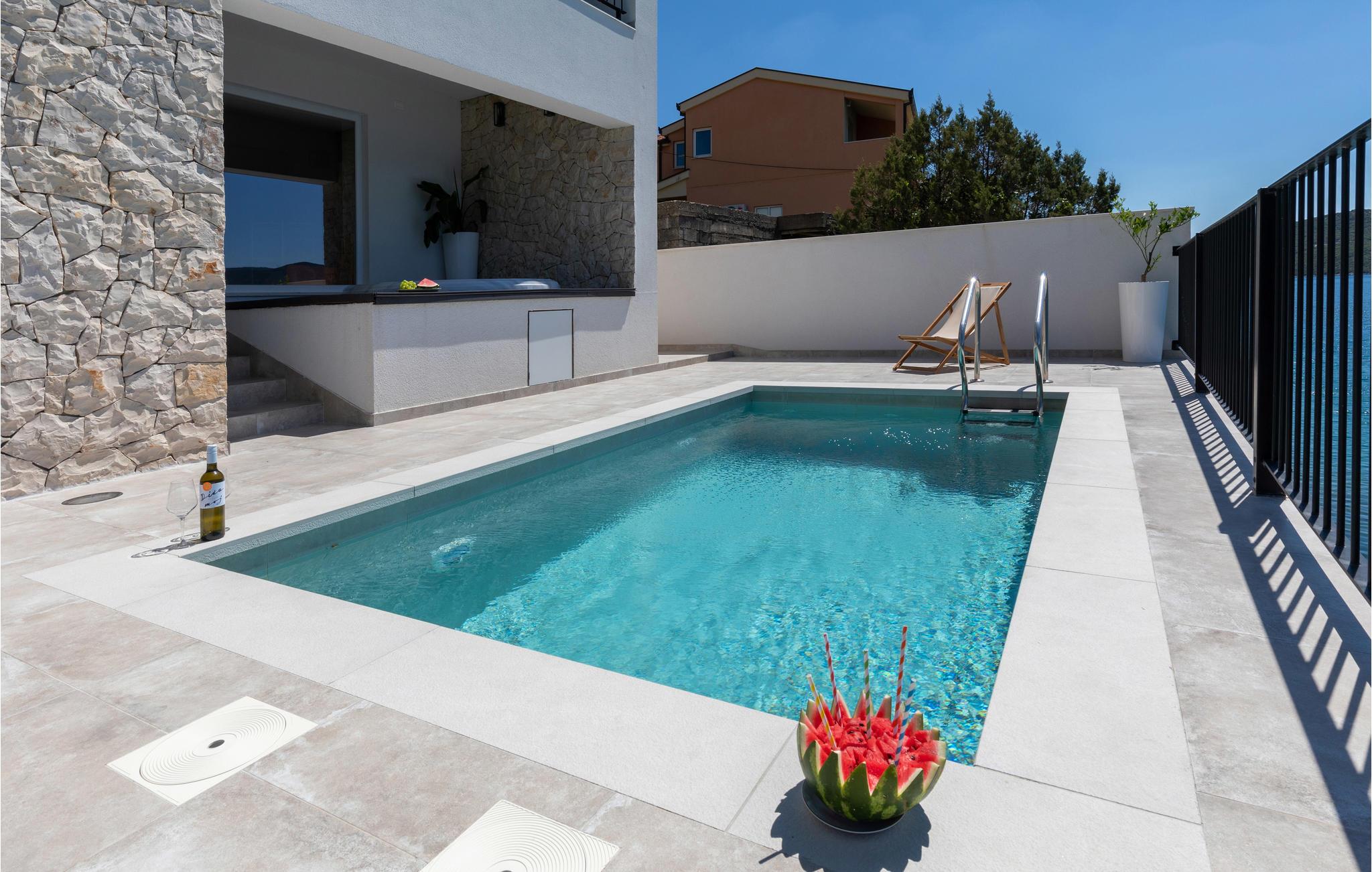 Der er en smuk terrasse med swimmingpool og et overdækket område med spa samt et loungeområde lige ved havet med et udendørs køkken. Her vil I sandsynligvis tilbringe det meste af tiden. Der er også en sauna, så der er intet, der kan forhindre jer i at nyde en wellness-oplevelse i en fantastisk atmosfære.